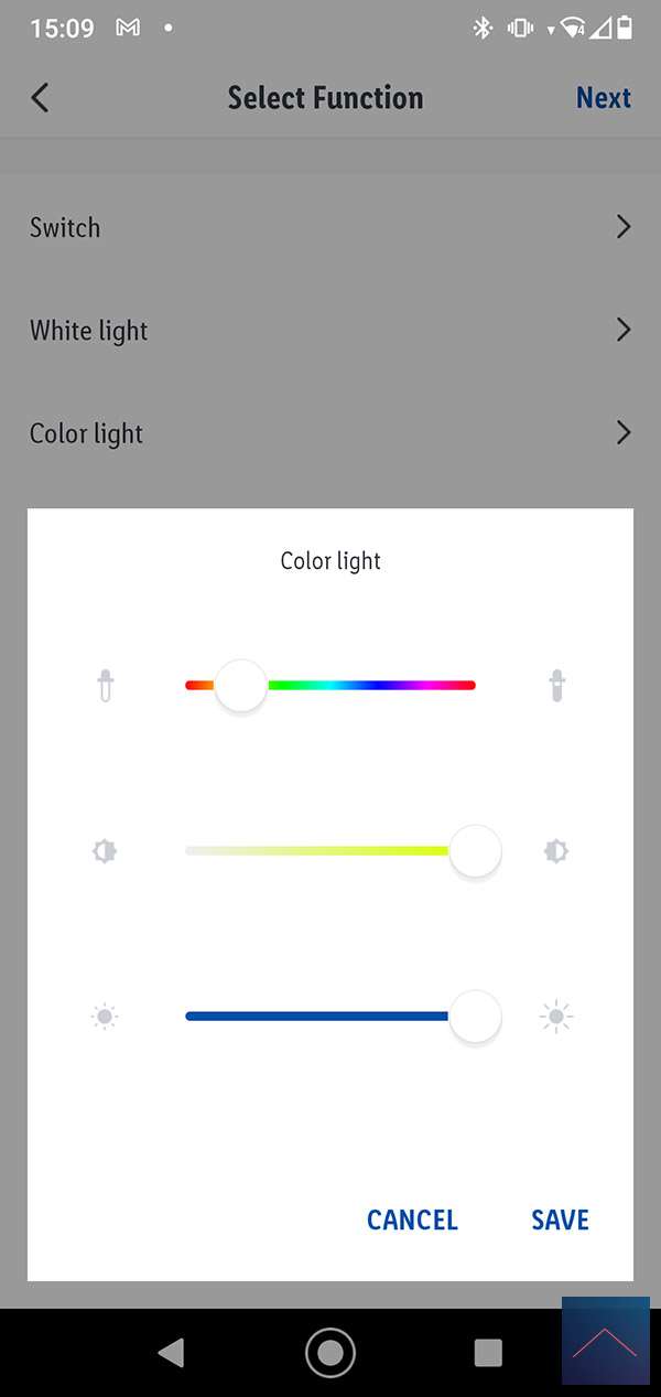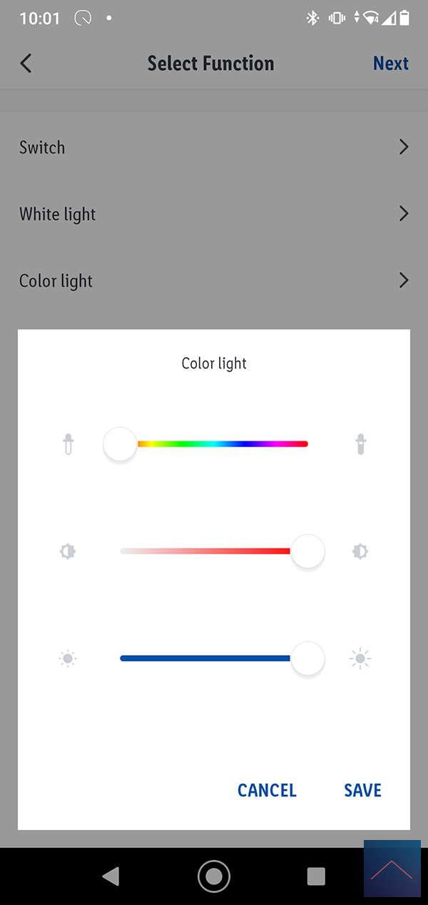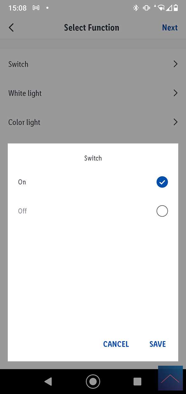 Nu komt de vraag wat de scene moet gaan doen. We willen dat de lamp aan gaat dus we selecteren "Run the device" en selecteren de lamp, de kleur en slaan het geheel op.