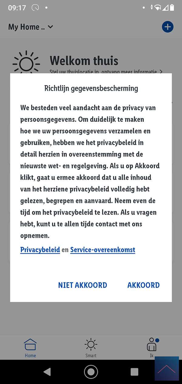 Nu downloaden we de APP en installeren deze. Er is een versie voor Android en iOS. Deze APP komt mij trouwens zeer bekend voor want het lijkt wel een 1 op 1 kopie van de Tuya APP. Na wat navraag geeft Lidl aan deze APP zelf gemaakt te hebben.