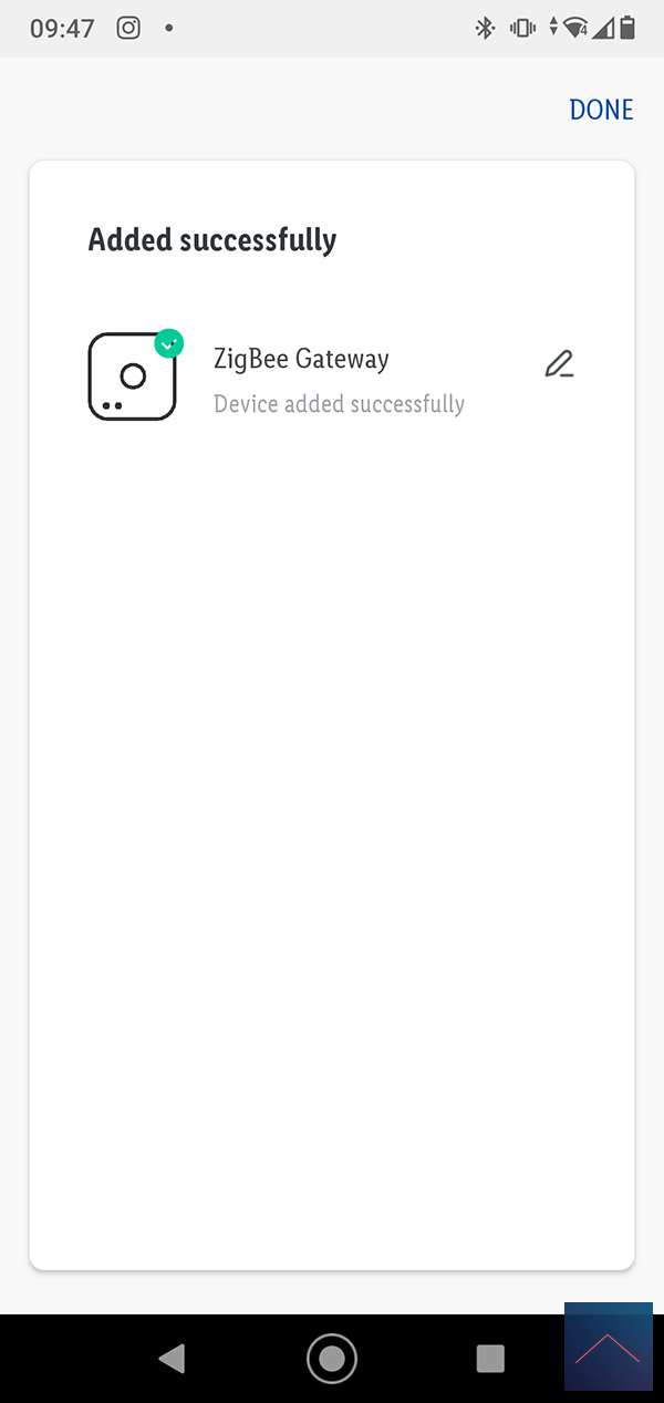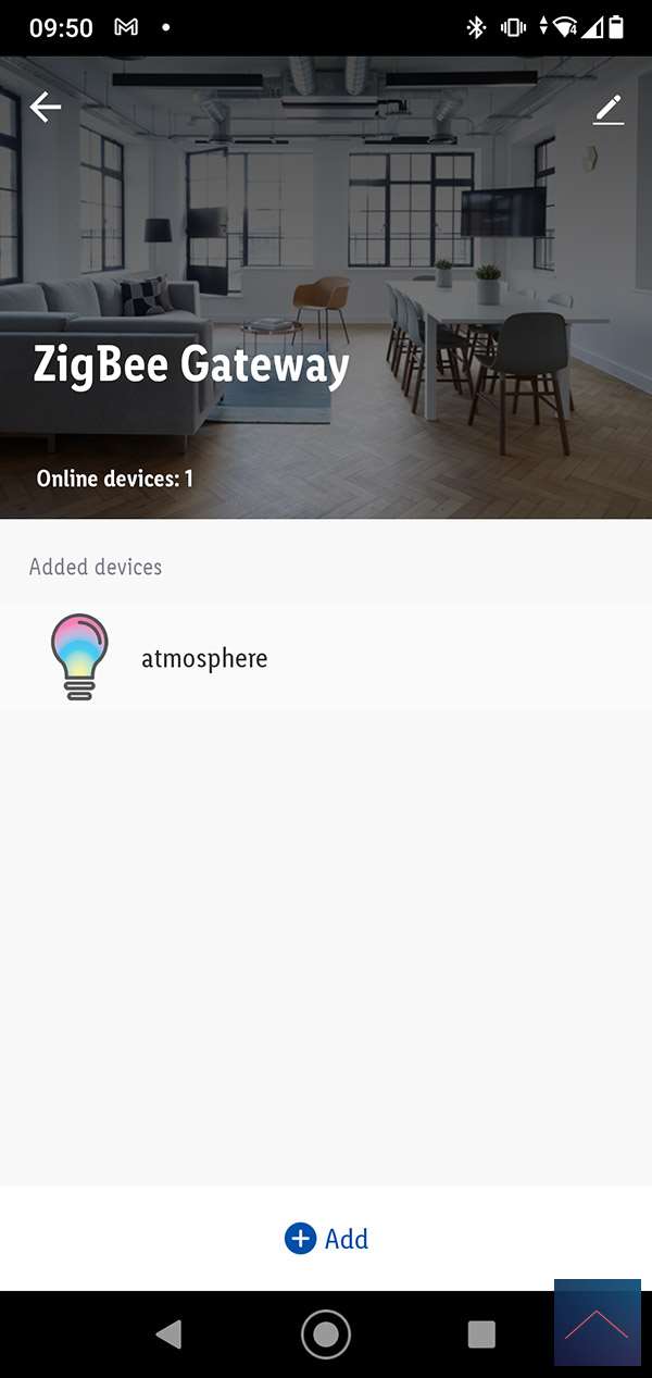 Nu we de gateway hebben kunnen we de lampen gaan toevoegen. We drukken op de "add" knop en er komt een melding dat de LED moet knipperen om hem toe te voegen. We voorzien de lamp van stroom en inderdaad hij gaat knipperen. We drukken nu op "volgende" en de lamp wordt direct gevonden en hij knippert nog 1 keer.