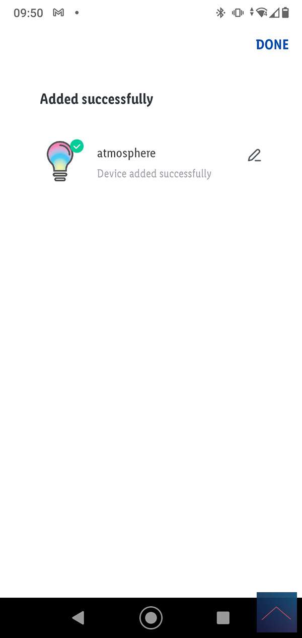 Na even wachten zie ik dat de lamp succesvol gekoppeld is.