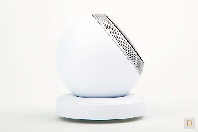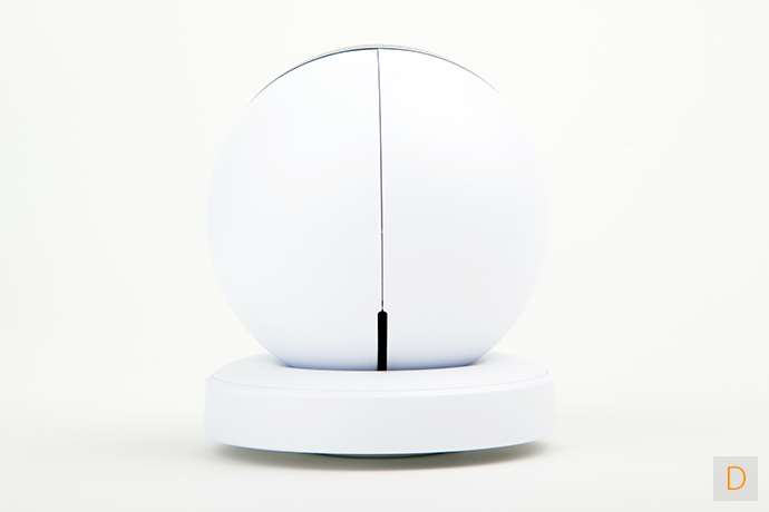 Wat deze camera onderscheidt van de concurrentie is het formaat. Hij is echt klein met zijn 67 mm x 65 mm x 75 mm ((L x W x H). Hij is grotendeels uitgevoerd in mat wit kunststof. Hierdoor valt hij bijna niet op in je interieur (althans in mijn huis ;-)).