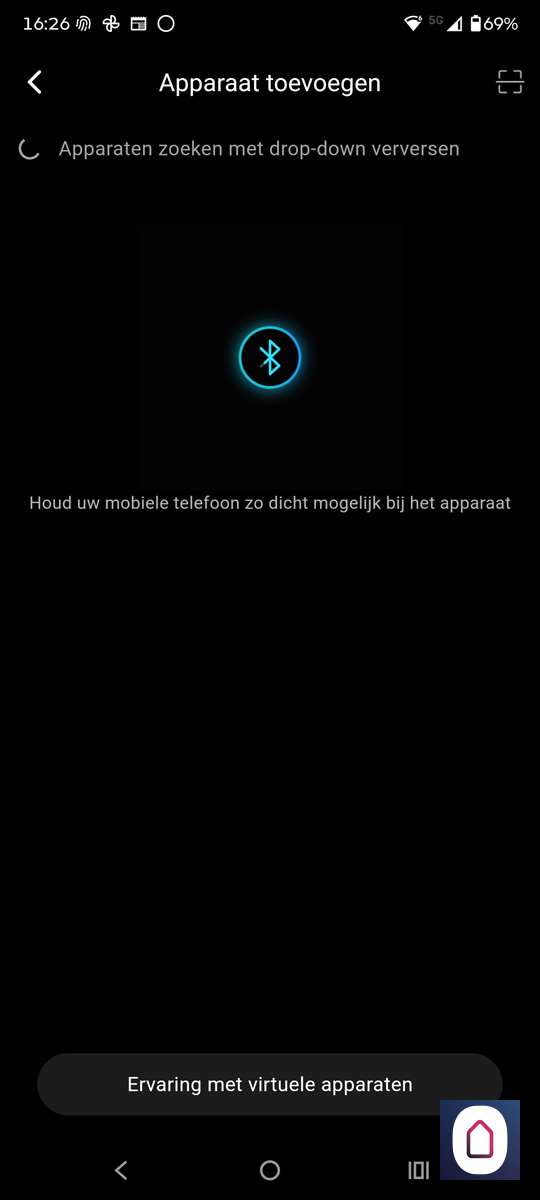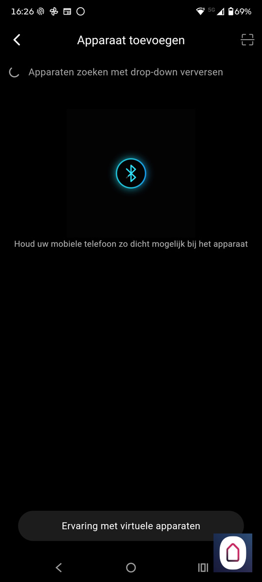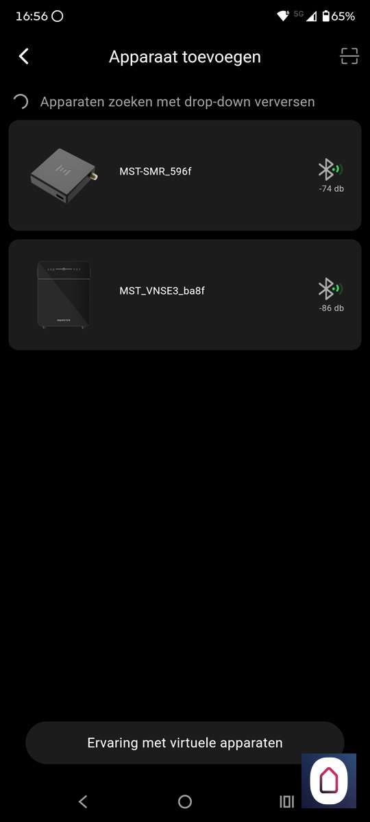 Na het inloggen kun je de batterij toevoegen in de app. Hiervoor moet je in de buurt van het apparaat staan, omdat de eerste koppeling via Bluetooth verloopt.