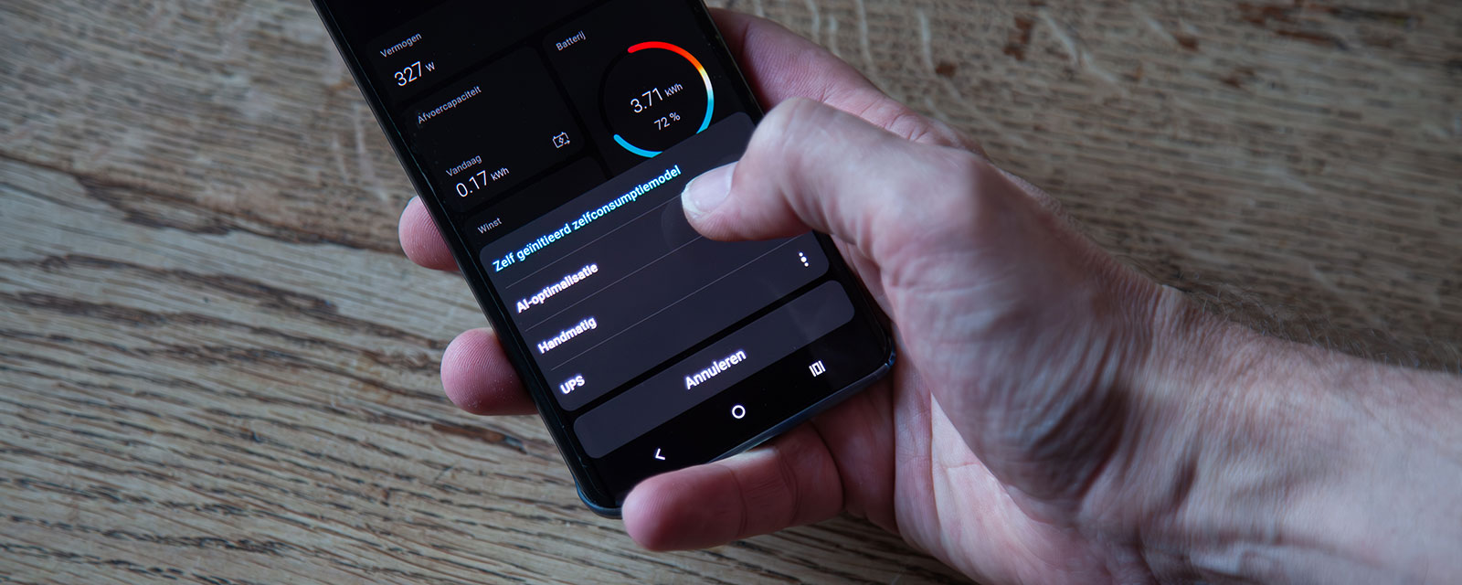 De keuze die je hier maakt heeft direct invloed op het gedrag van de batterij. In onze test hebben we vooral AI optimalisatie en zelfconsumptie gebruikt.
