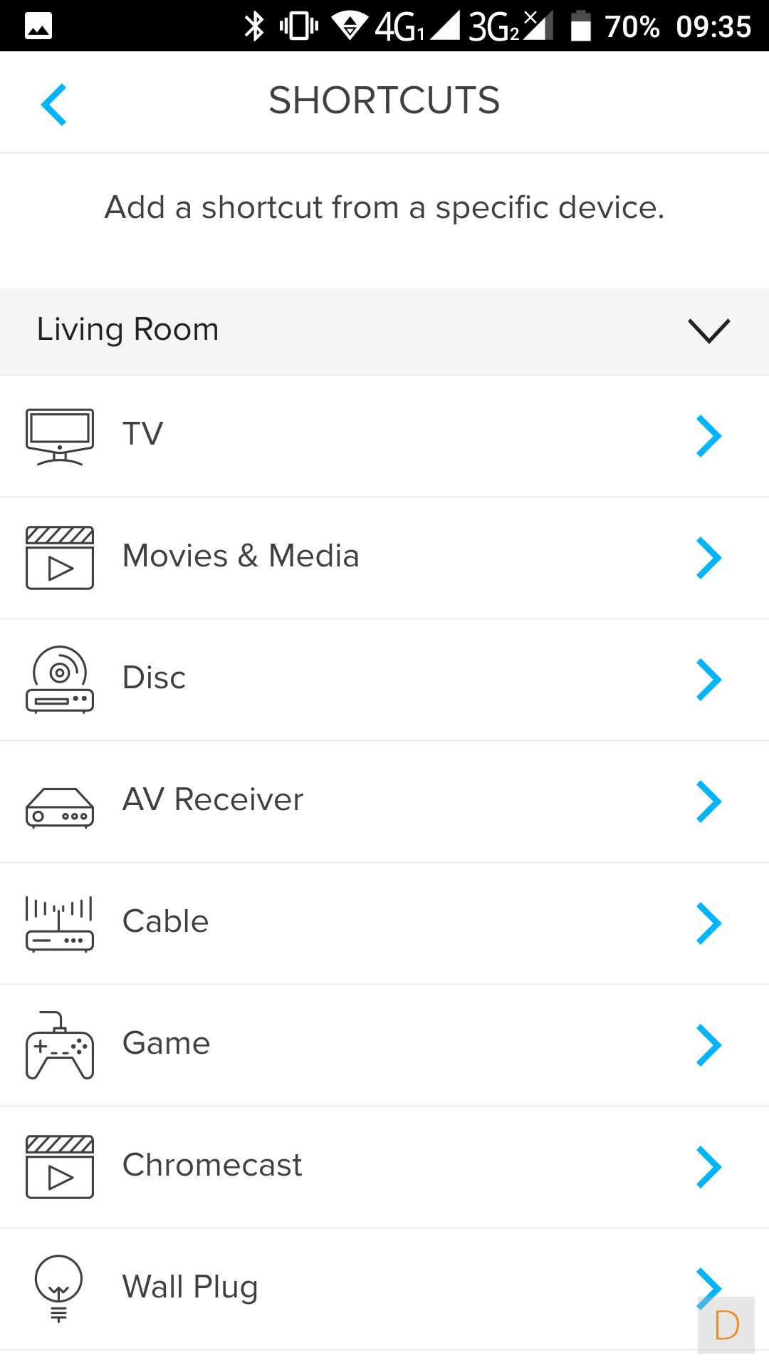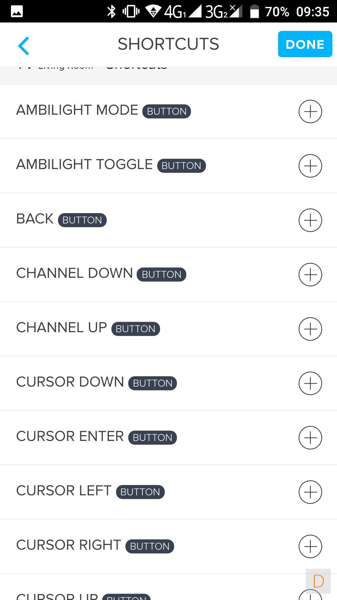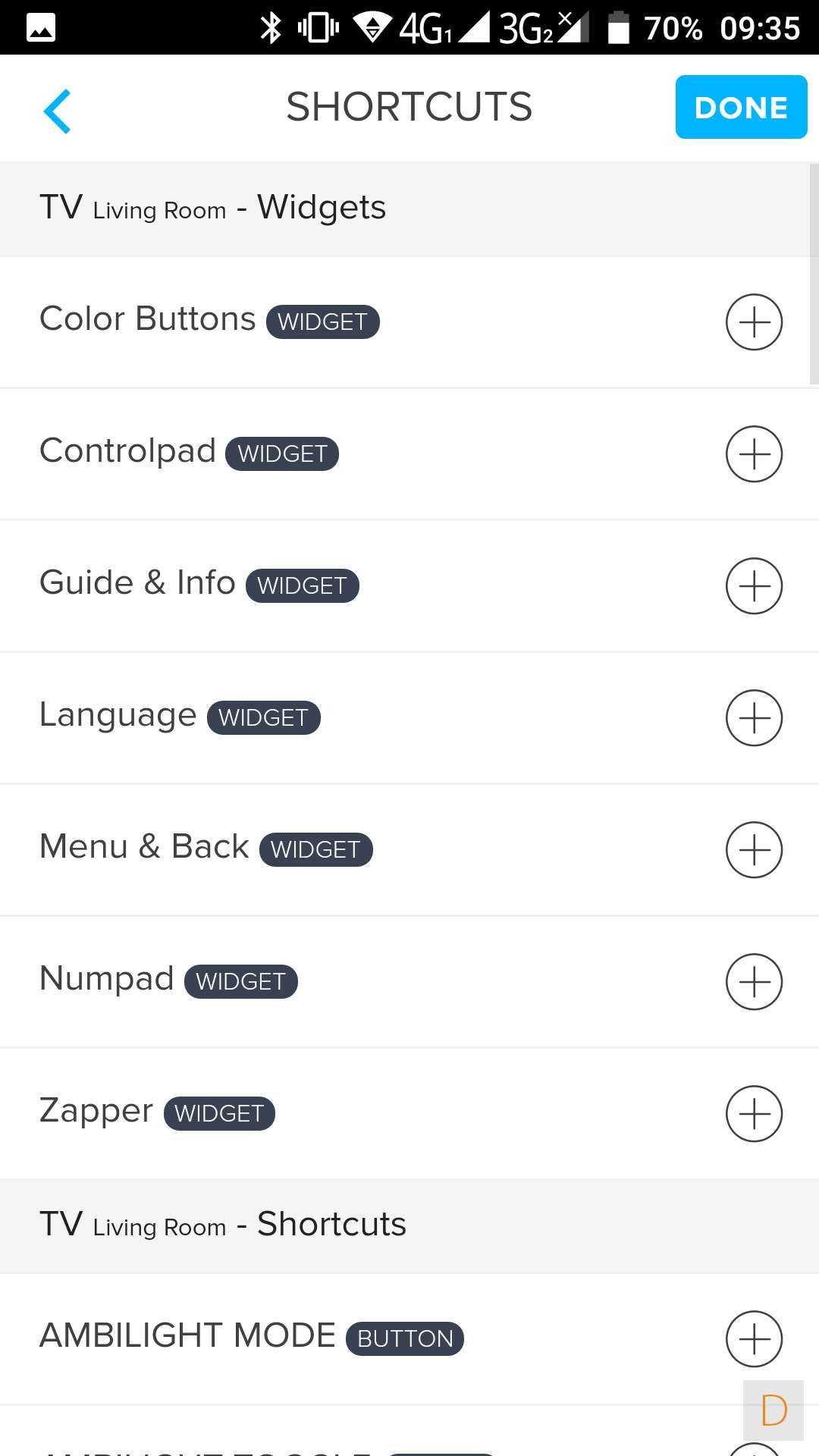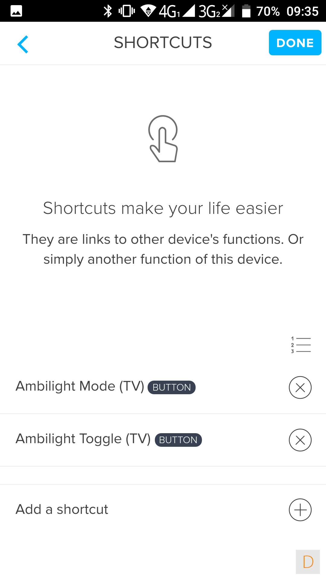 Naast de standaard schermen kun je zelf ook een scherm samenstellen door middel van shortcuts. Het is helaas niet mogelijk om de namen van de knoppen te wijzigen. Dit zou wel handig zijn om bv HDMI 1 te hernoemen naar bv Gamen.