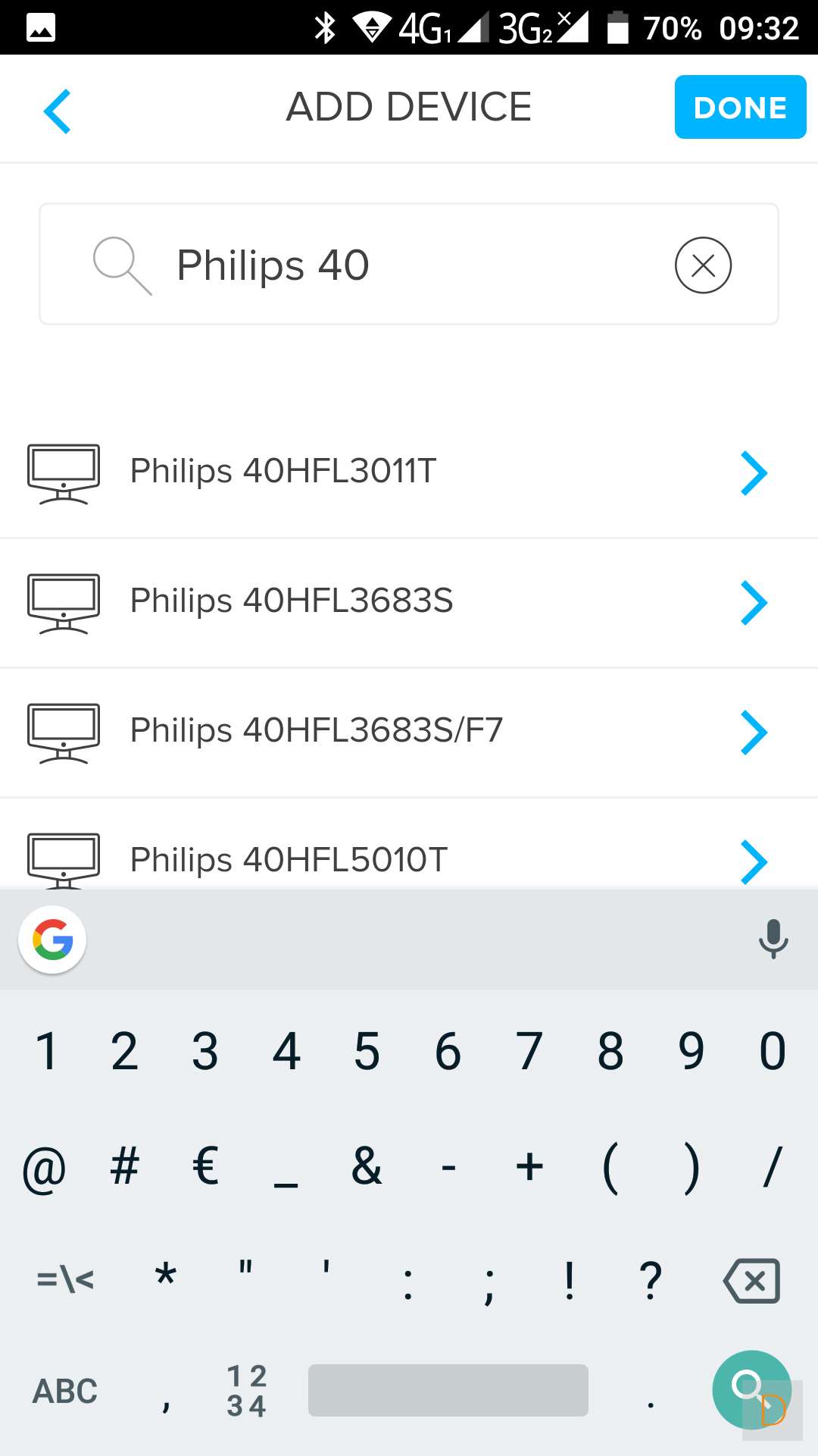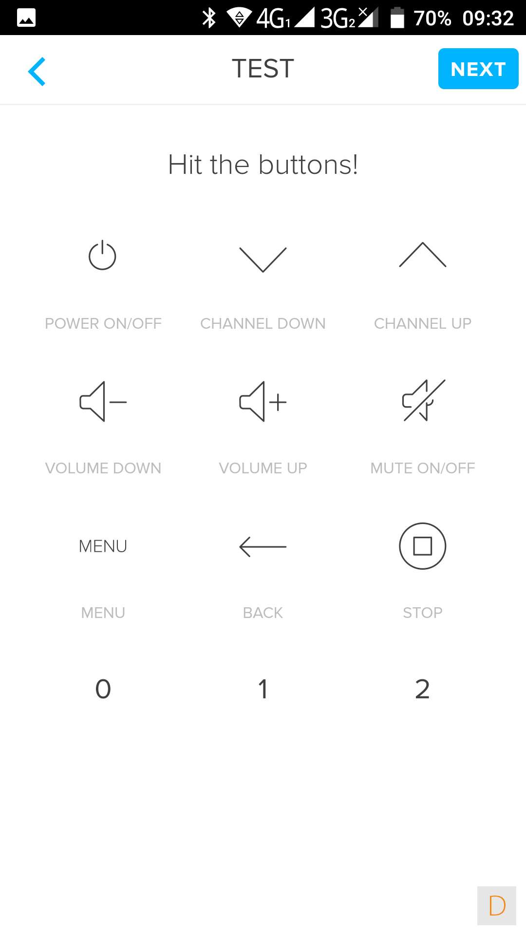 We beginnen met het installeren van mijn Philips TV welke via IR werkt. De installatie kun je starten door naar setting te gaan en op het plusje te klikken. Vervolgens zoek je het type nummer van je TV op. Mijn TV stond netjes in het rijtje. Hierna komen de verschillende knoppen te voorschijn en kun je deze direct testen.