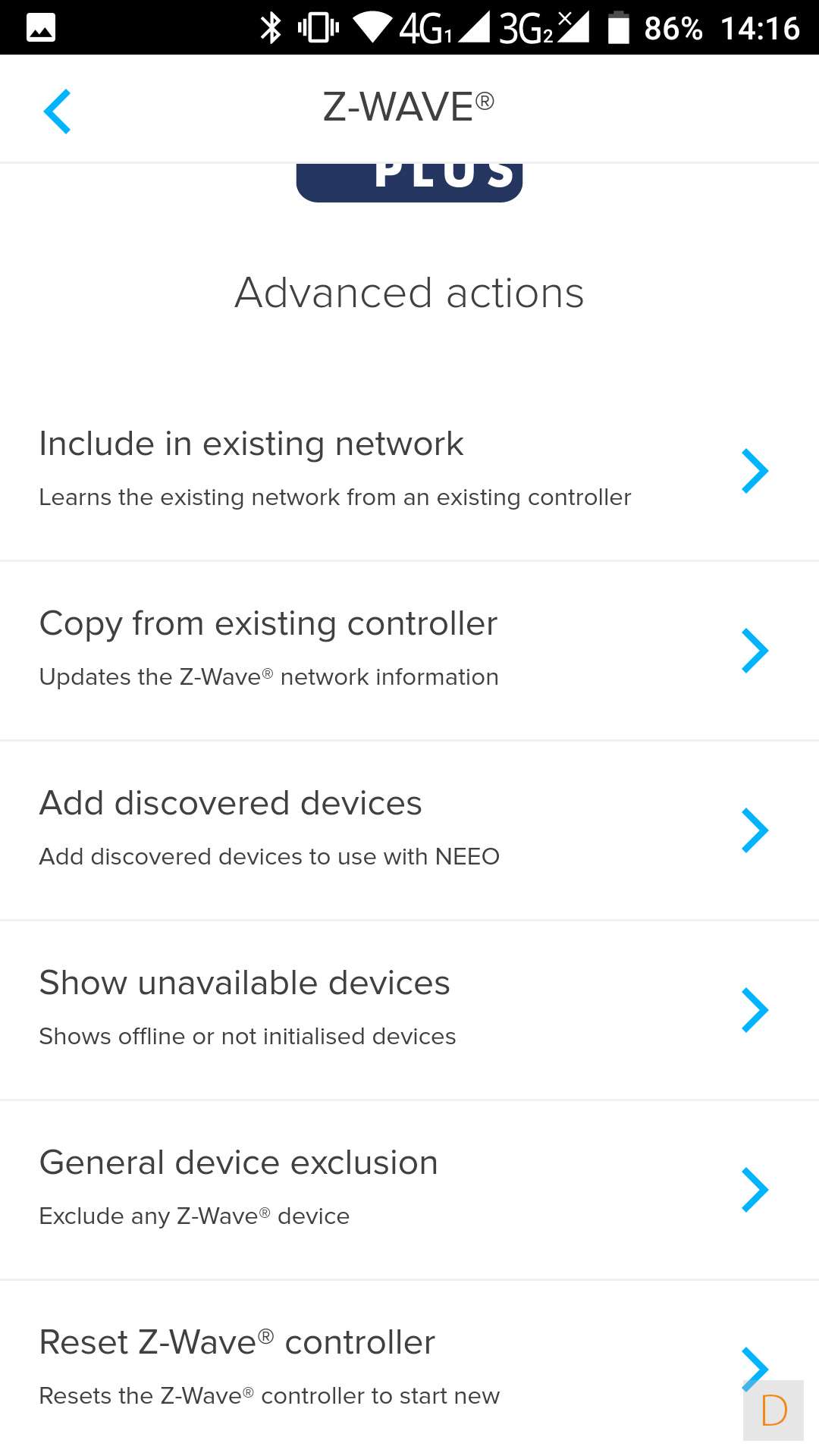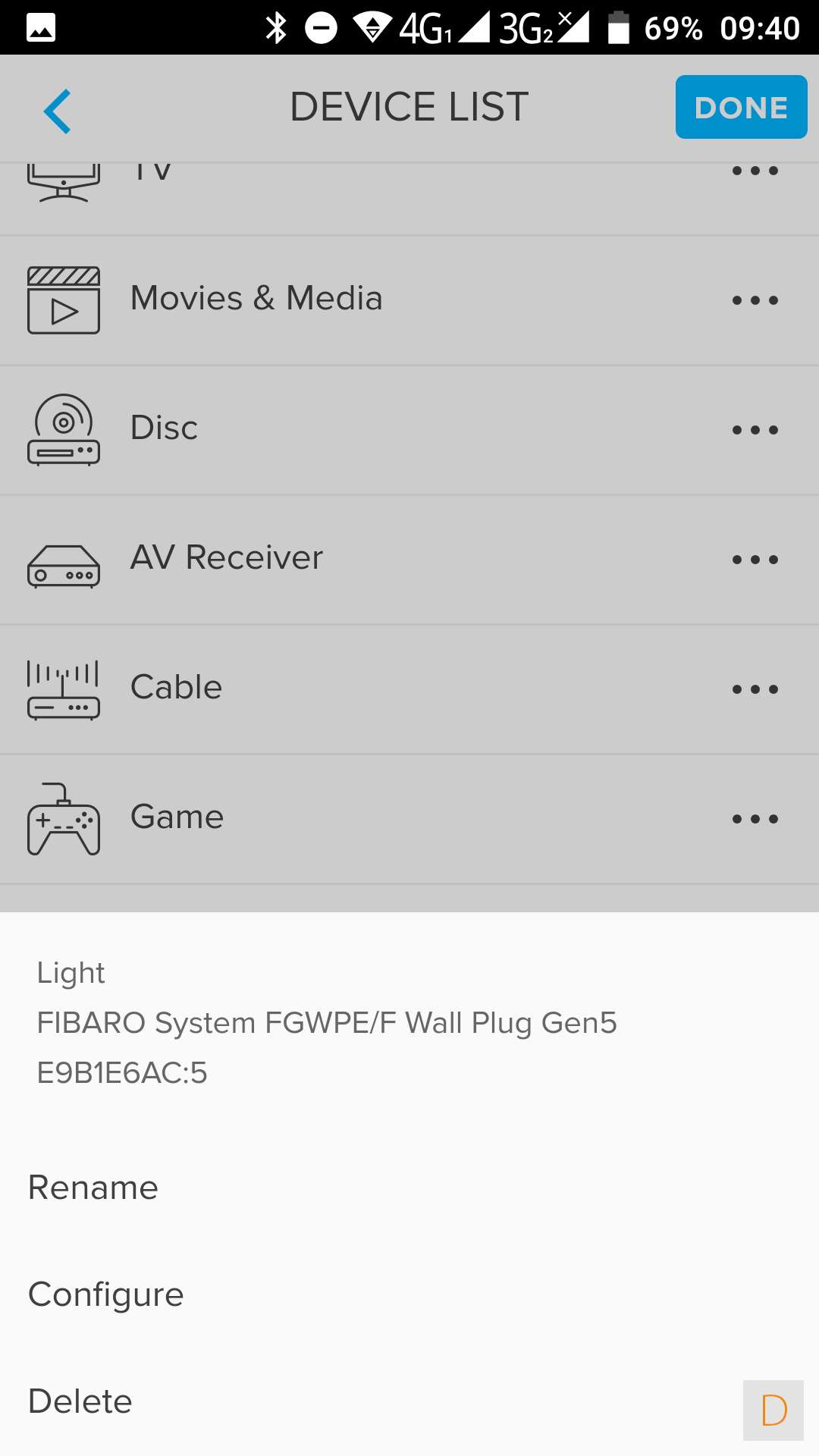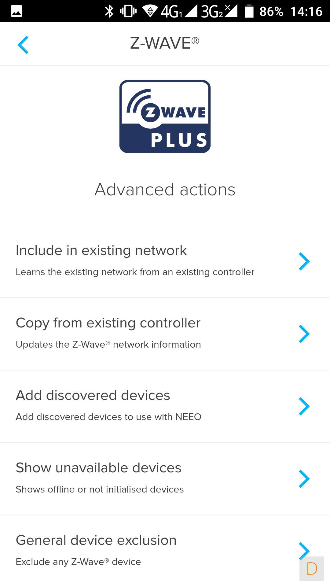 Zoals al gemeld werkt de NEEO ook met de draadloze communicatie standaard: Z-Wave Plus. Door apparaten toe te voegen zoals bv een lichtschakelaar kun je ook een lamp aan/uitzetten via de afstandsbediening. Ik heb als test een Fibaro Wall Plug (Z-Wave Plus) toegevoegd, deze zou zonder problemen moet werken. Het toevoegen gaat het zelfde als het toevoegen van bv je TV. Je gaat naar settings en hierna naar het device gedeelte. Vervolgens druk je op het plusje. Hierna is het een kwestie van Fibaro in het zoekbalkje te typen en de Wall Plug op te zoeken. Hierna moet je de tussenstekker in leer modus zetten, dit kun je doen door 3x snel op de aan/uit schakelaar te drukken. Hij werd netjes gevonden en kan hem bedienen via de afstandbediening. Helaas zie ik het stroomverbruik niet. Ik kan wel het stroomverbruik gebruiken in een Recipe. Later hier meer over.