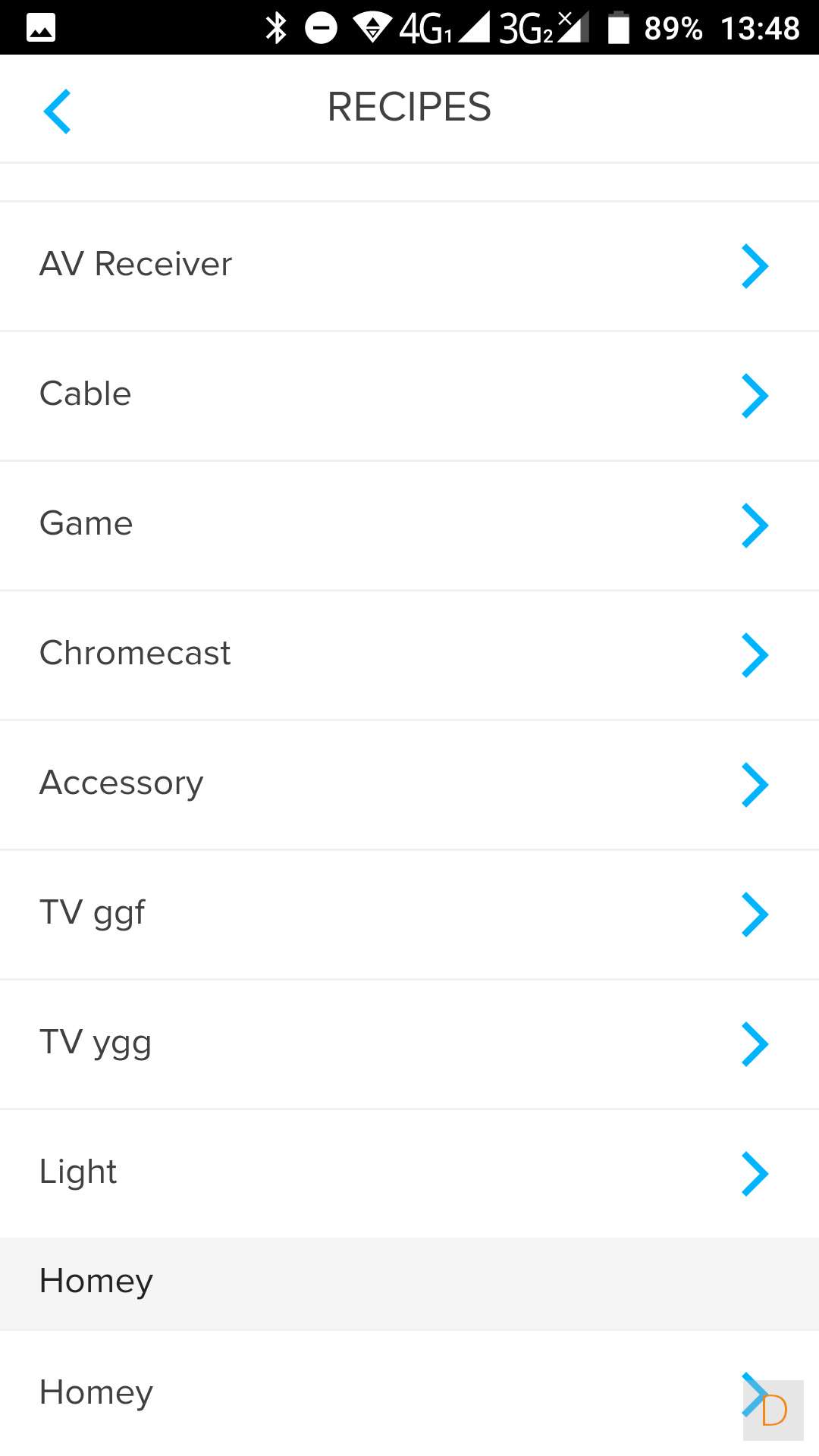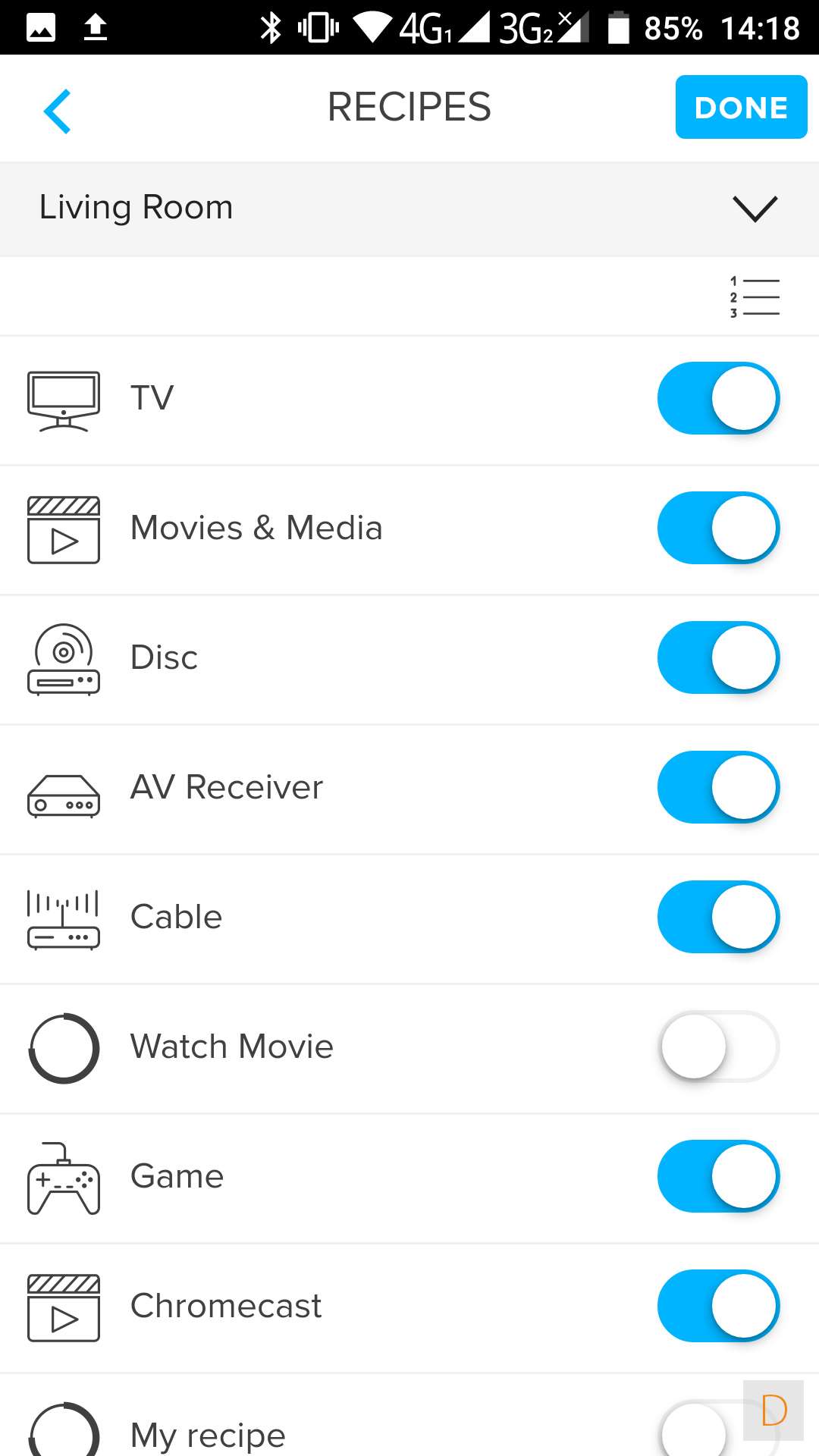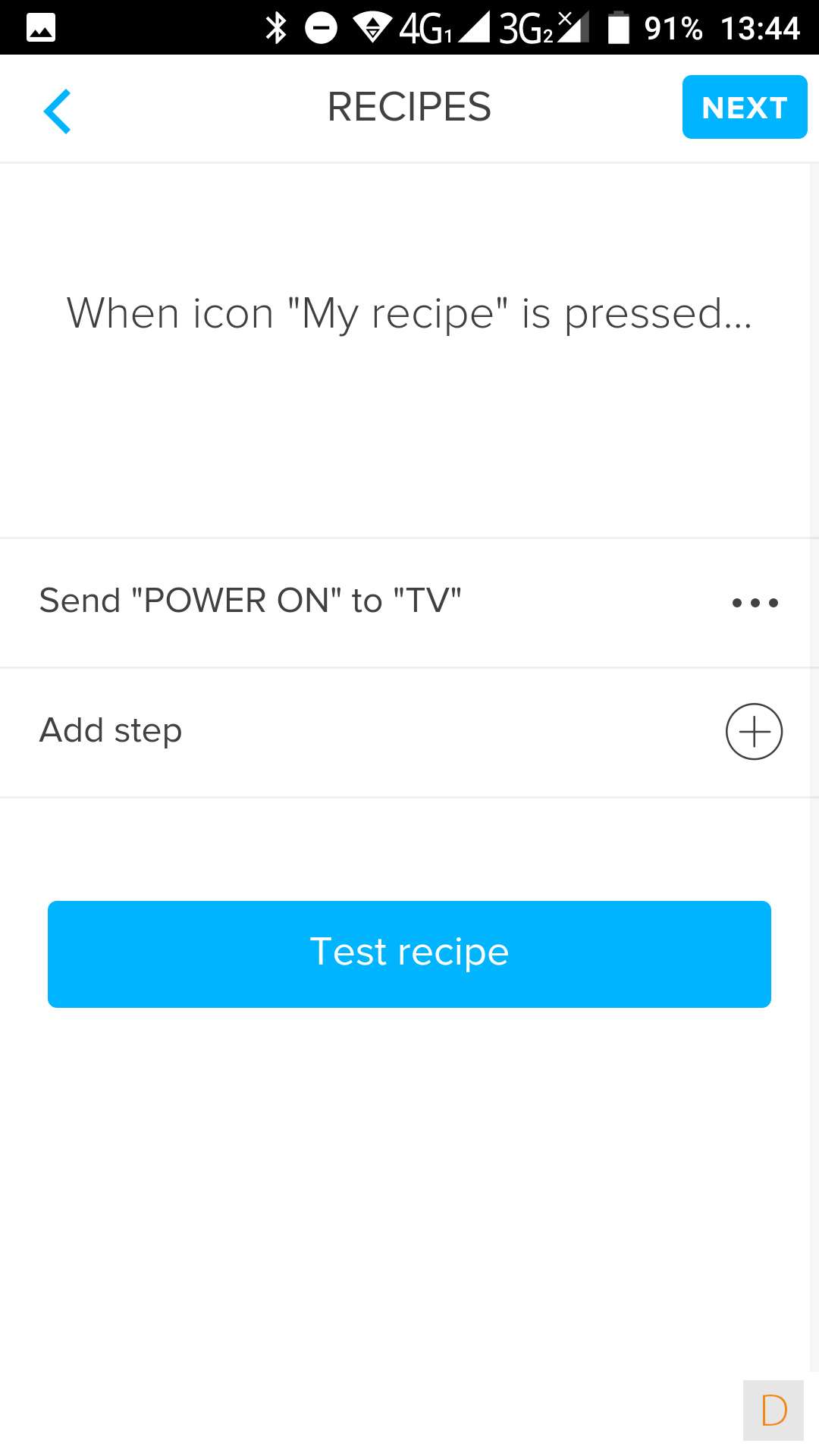 Het sterke van deze afstandbediening is dat meerdere apparaten te gelijk kunt aansturen. Om dit te regelen heeft NEEO "recipes" bedacht. Je kunt hier meerdere regels maken en bepalen wat erop het scherm van de NEEO getoond wordt.