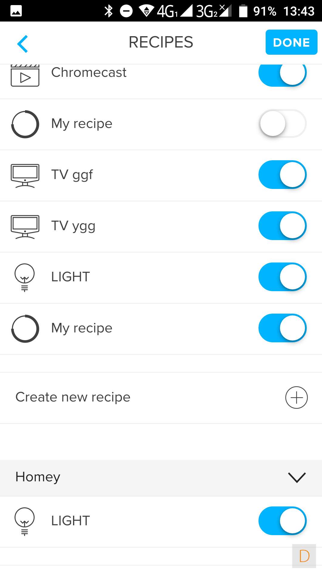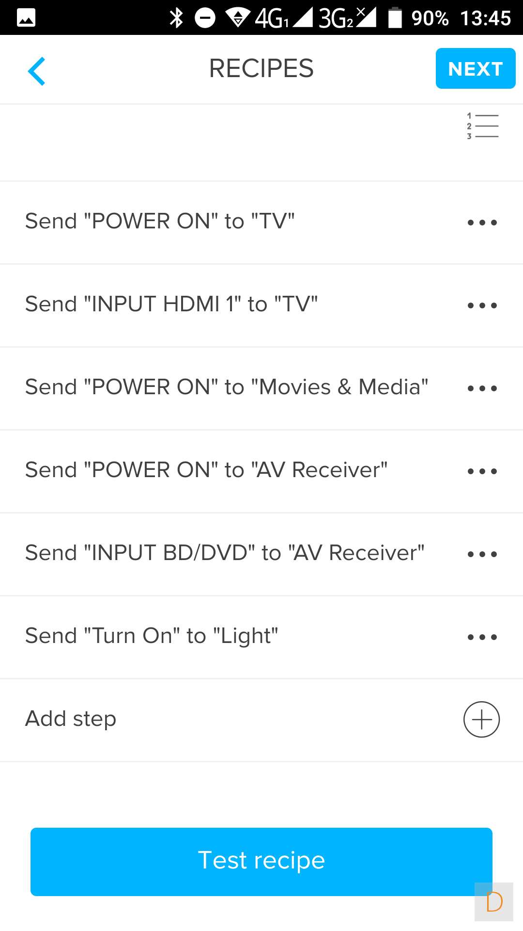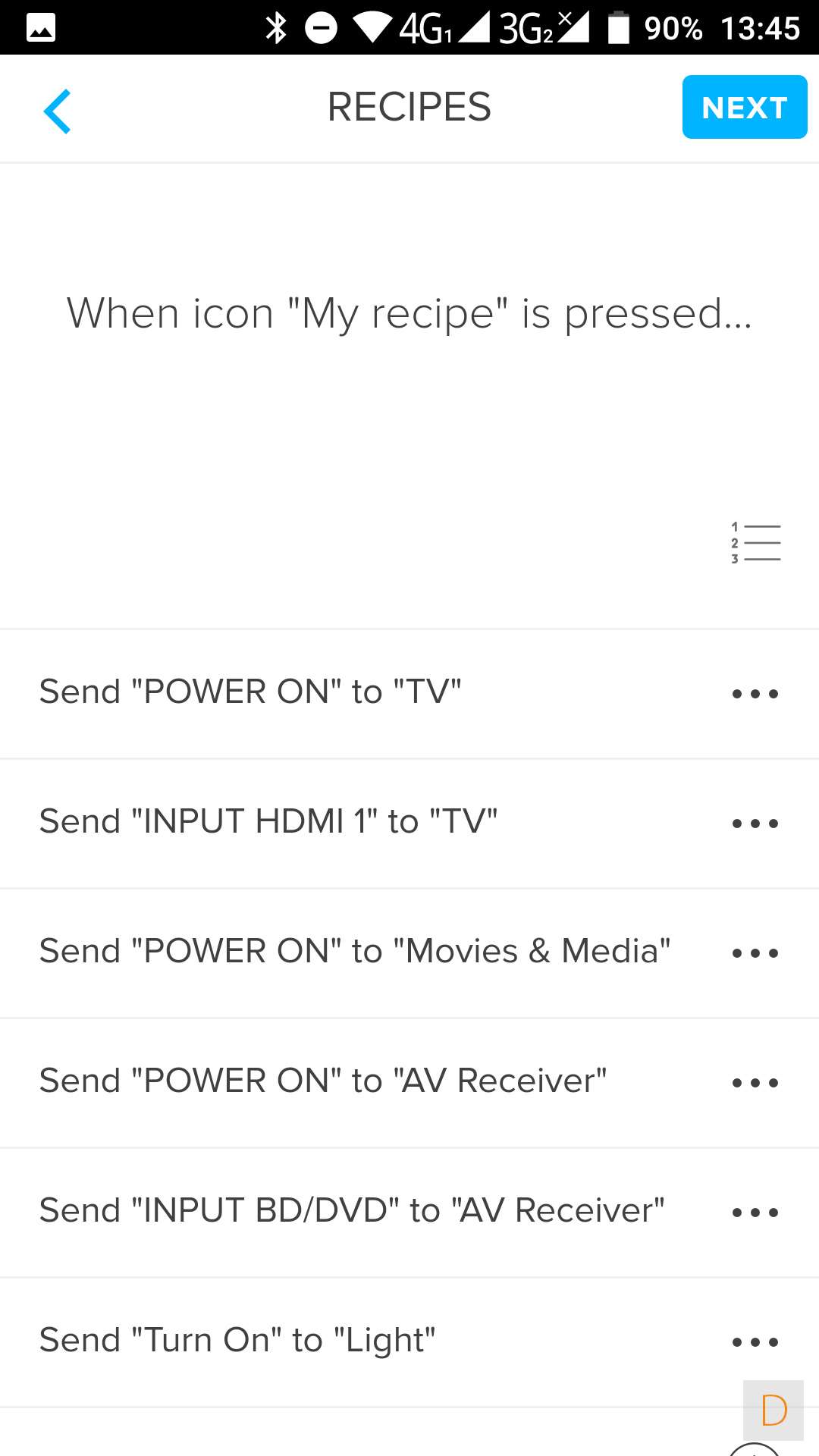 Als eerst wil ik een recipe maken waarbij ik 1 knop in druk om flim te gaan kijken. Hierbij wil ik dat het volgende gebeurd: