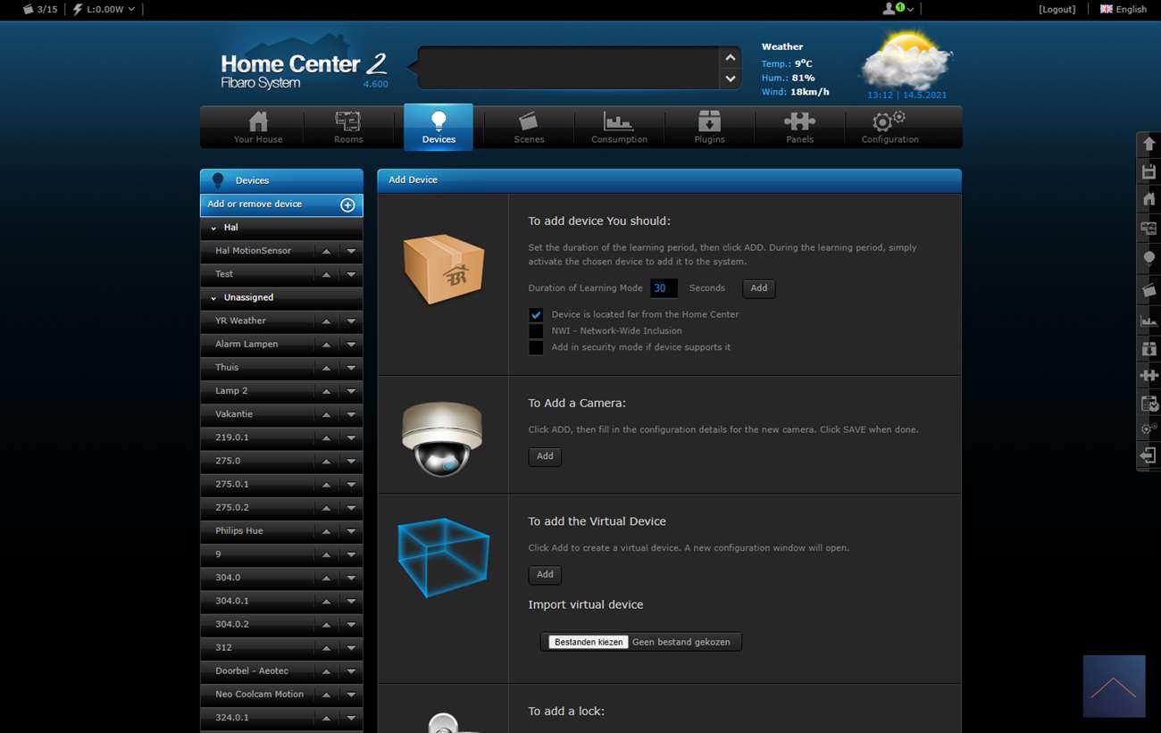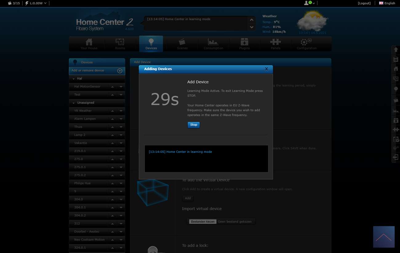 Nu we 2 controllers gehad hebben gaan we door naar de HC2. Deze controller heeft ook een Z-Wave chip ingebouwd dus zou compatible moeten zijn met deze sensor. We gaan hem uiteraard toevoegen om te kijken of dit het geval is.