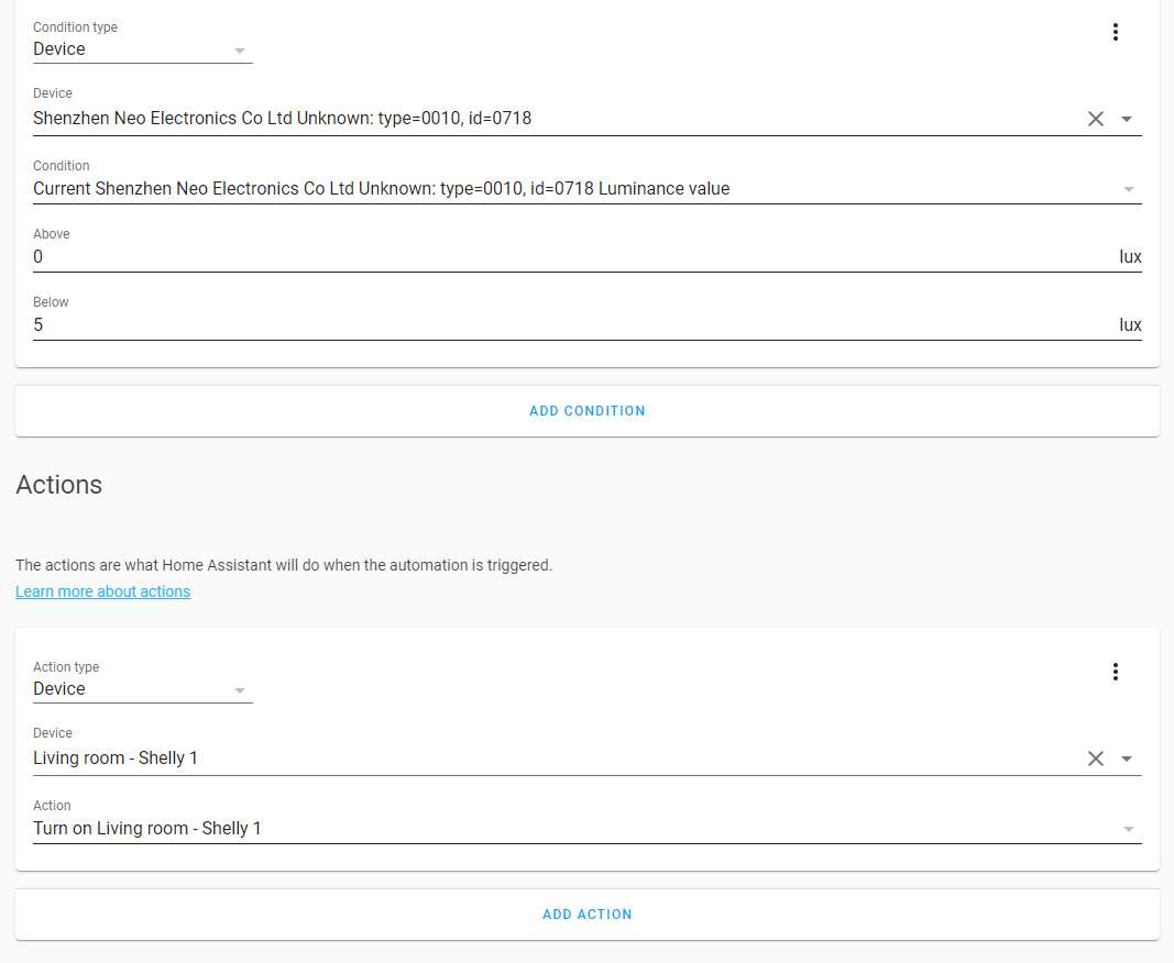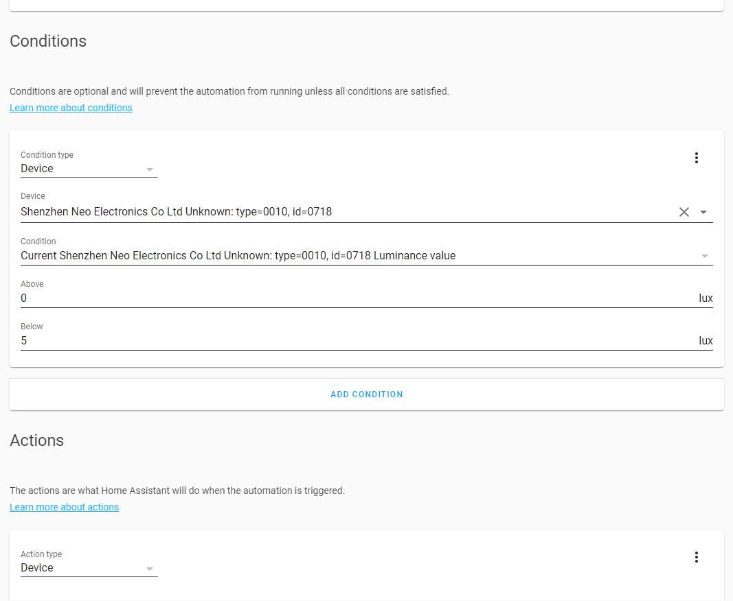 We maken een scene waarbij als er beweging wordt gedetecteerd en de lux waarde lager is dan 5 de lamp in de hal aangezet wordt.