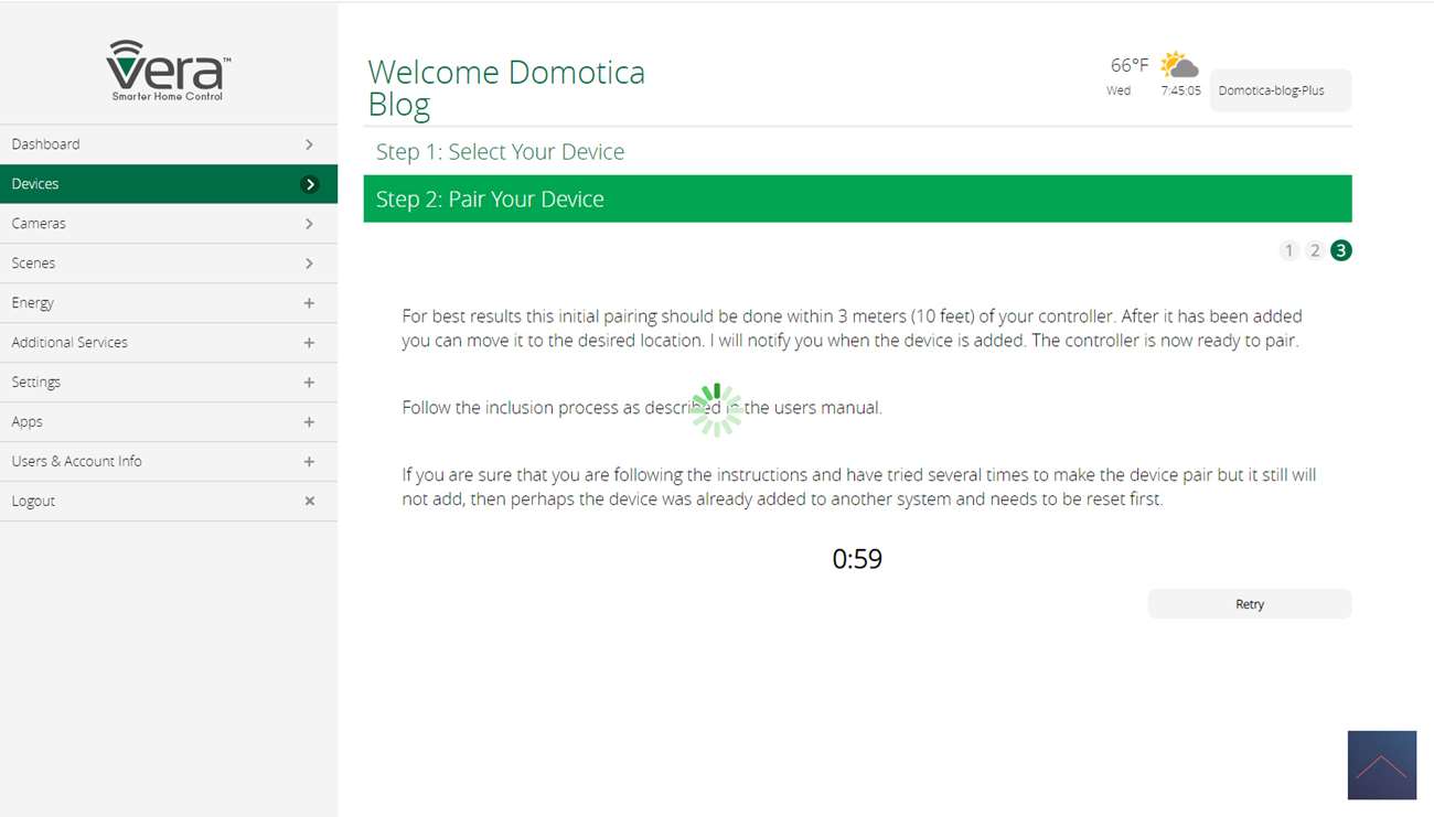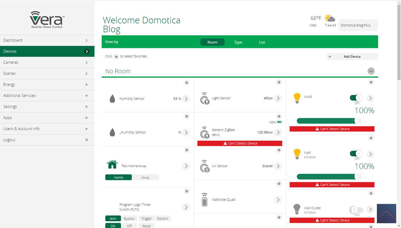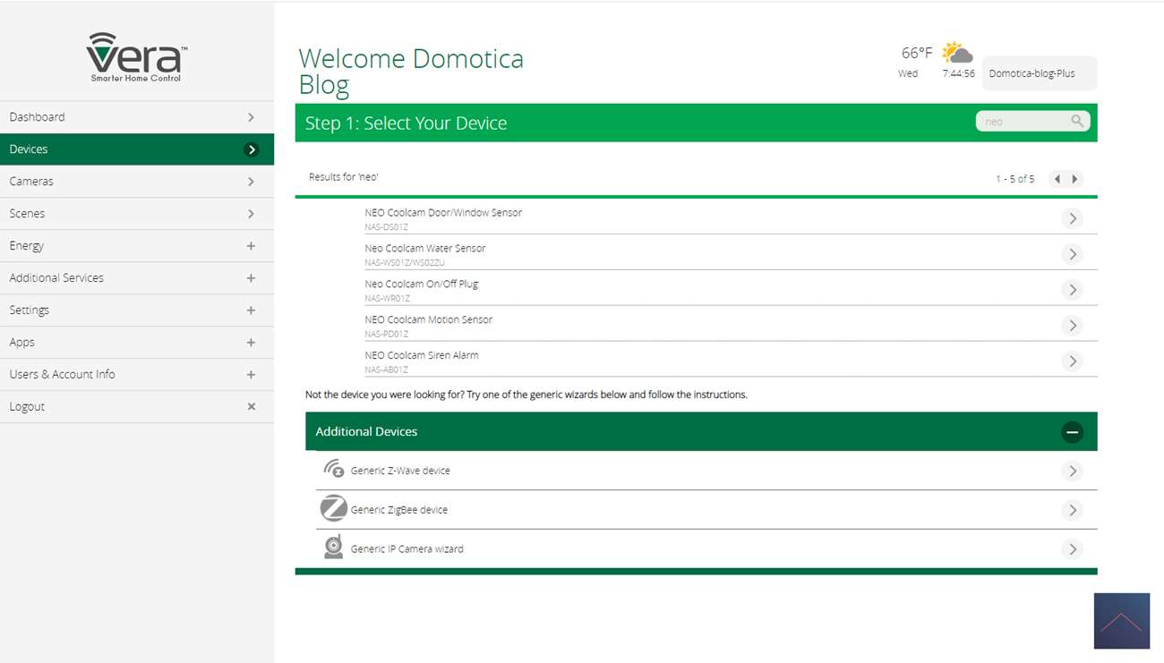Nu loggen we in op de Vera en gaan naar onze apparaten en klikken op "add device", nu zoeken we de motion sensor op. Helaas kan ik hem niet vinden dus gaan we hem proberen als generic sensor toe te voegen.