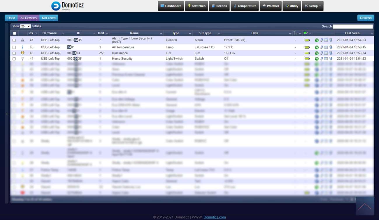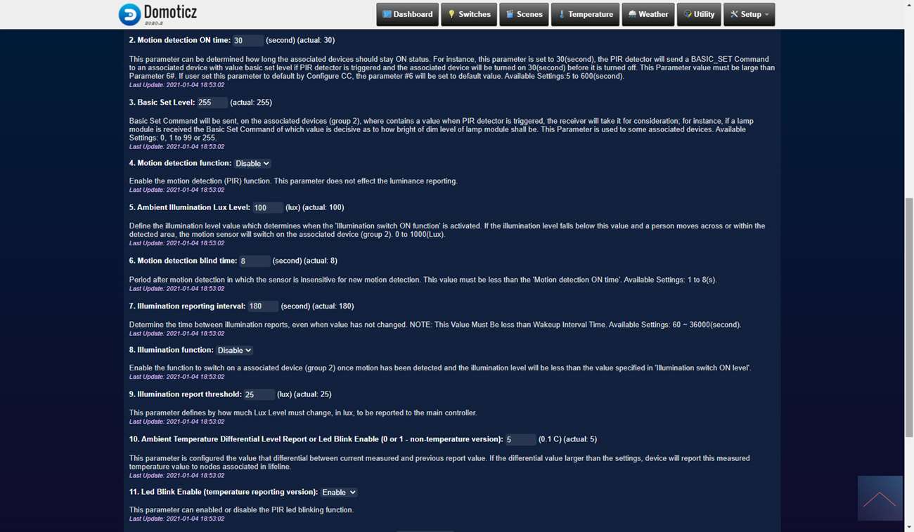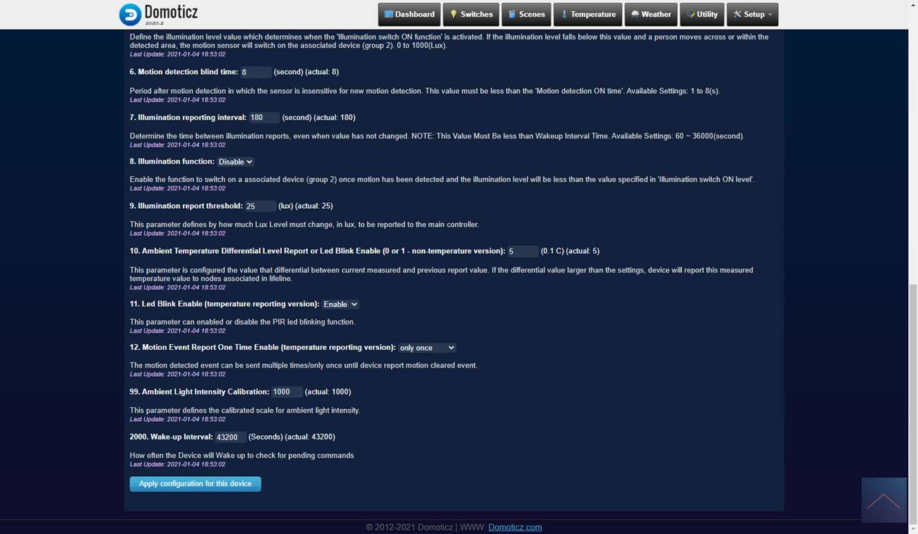 Ik krijg bij mijn apparaten een bewegings-, temperatuur en luxsensor en alle waardes komen goed binnen.