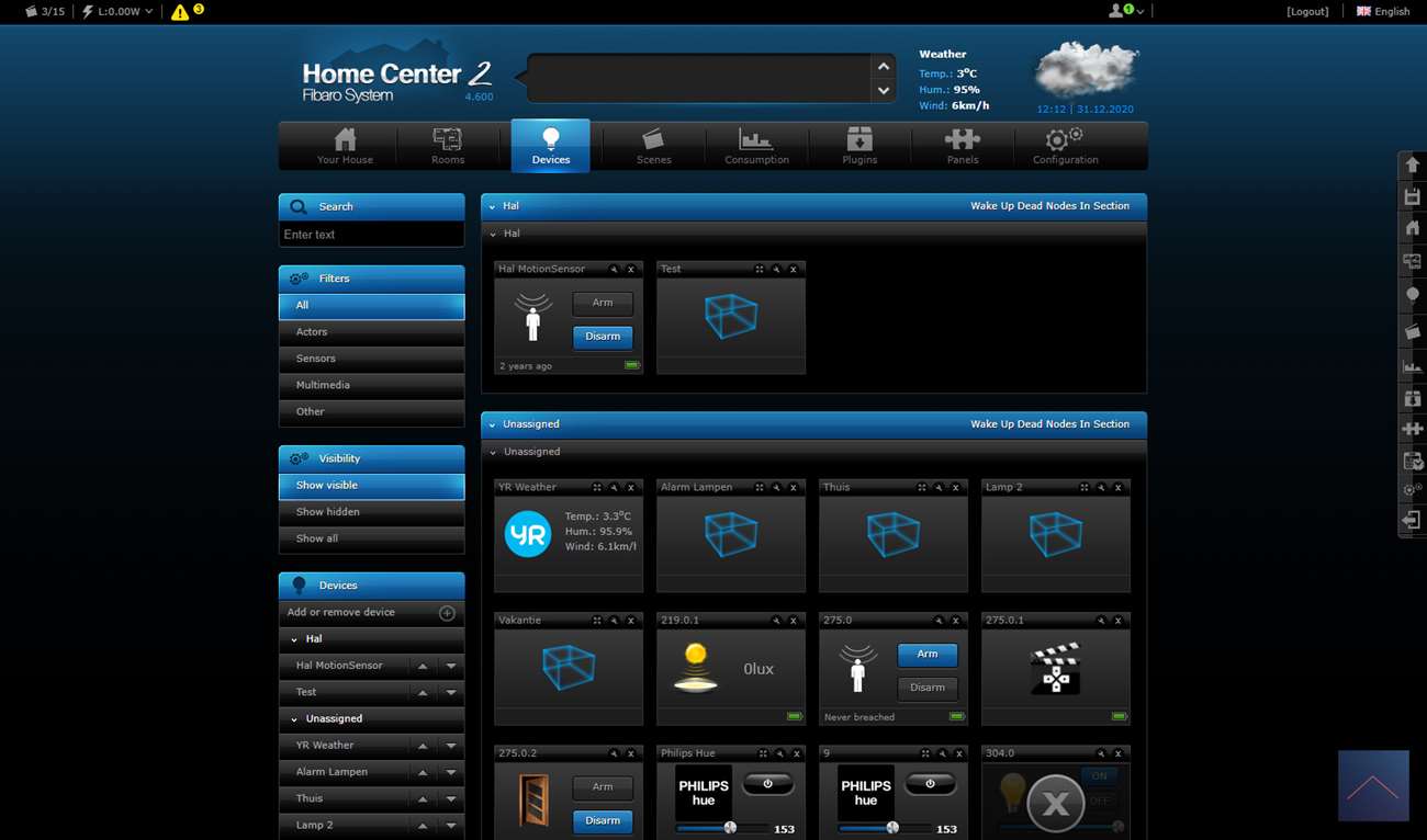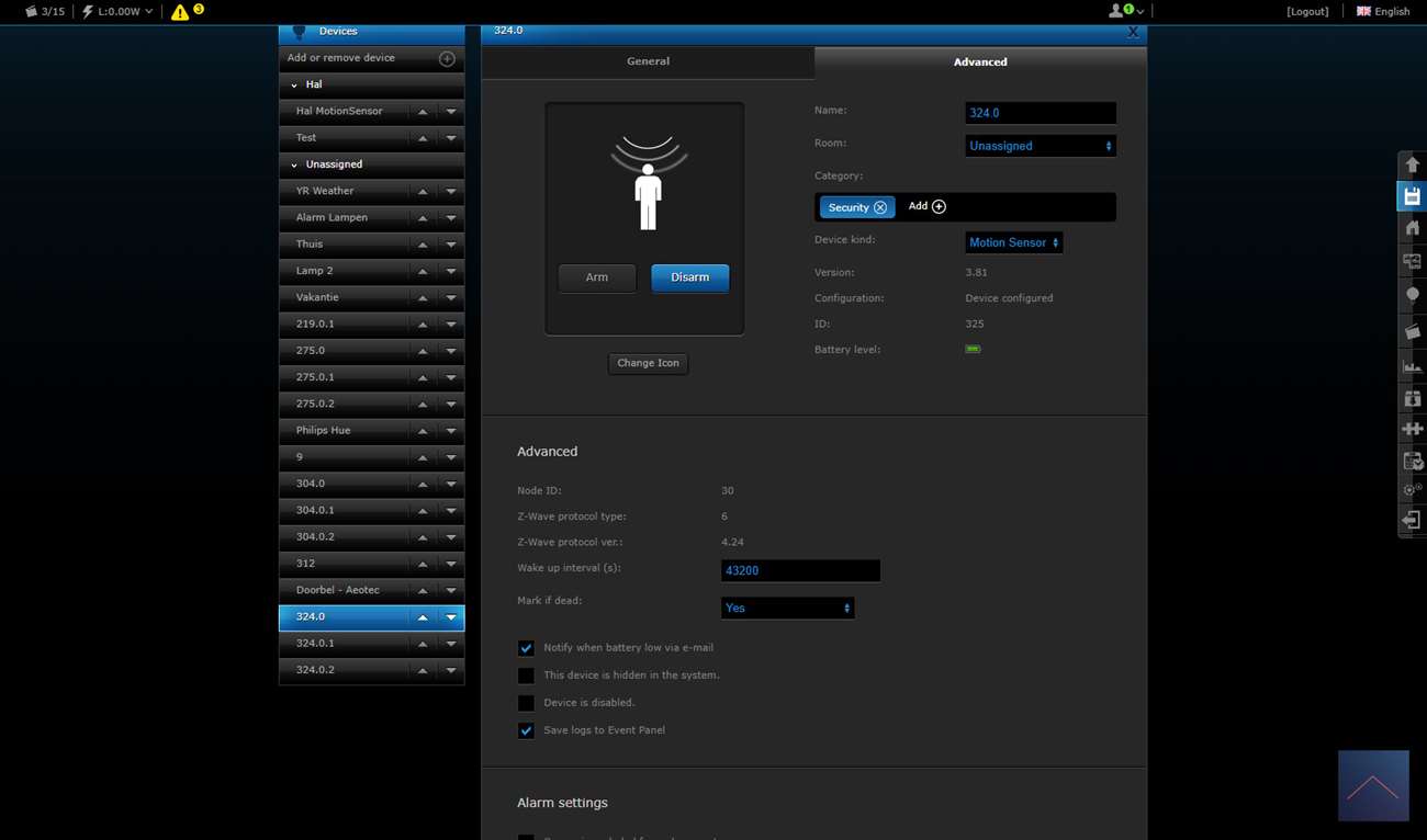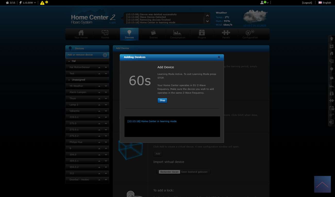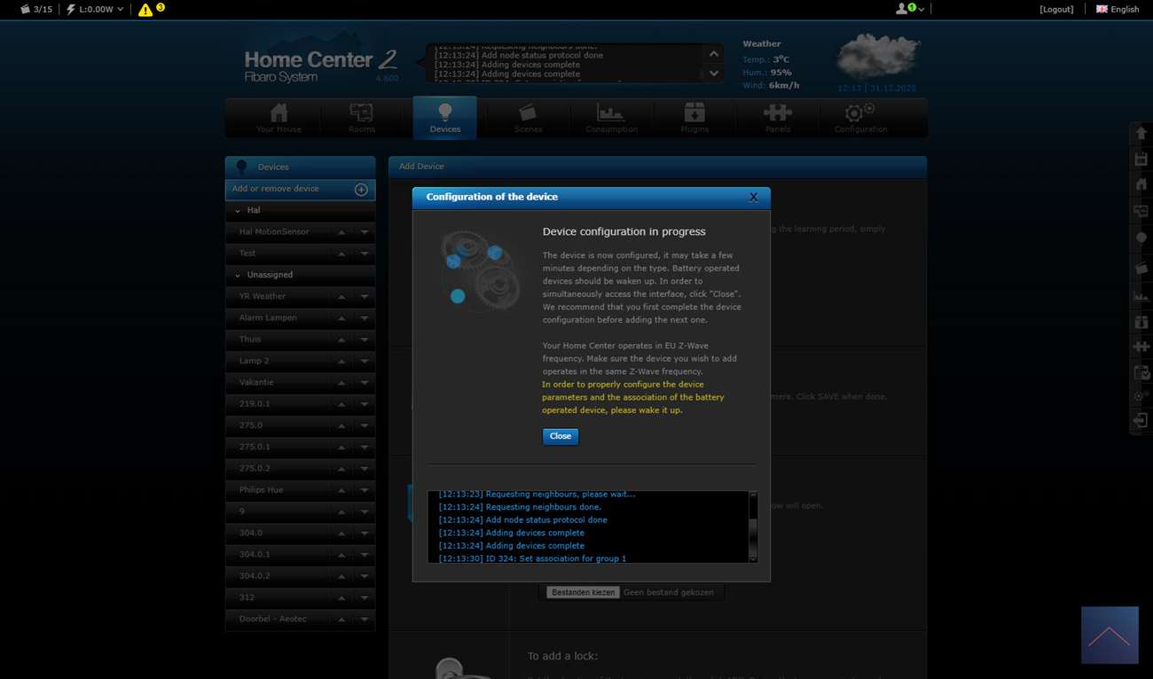 De volgende controller is de HC2 van Fibaro. Het toevoegen gaat weer door de controller in de "toevoegen" stand te zetten en de motion sensor weer van stroom te voorzien. Dit kun je doen door in te loggen en naar je apparaten te gaan en vervolgens te klikken op "add and remove device". Vink vervolgens "add node secure" aan en druk op "add".