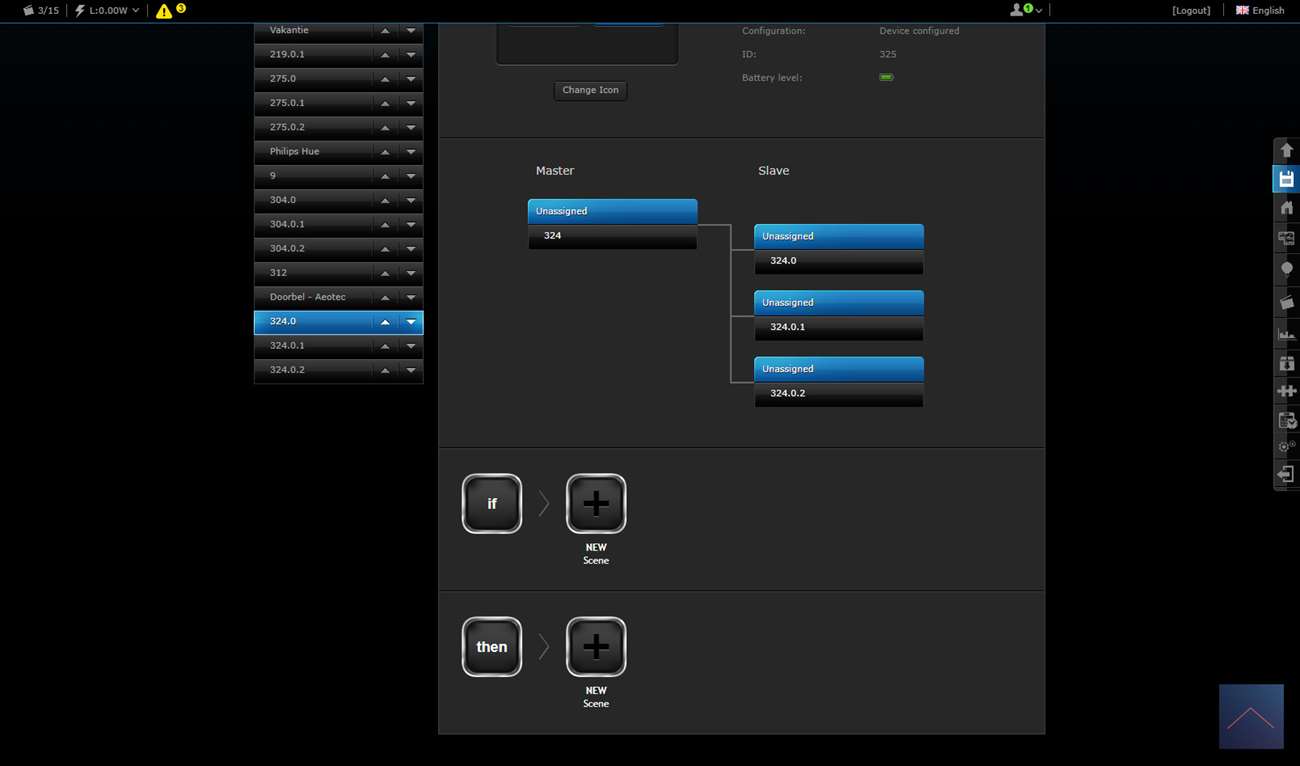 We maken als scene dat als er beweging is, en de lux-waarde is lager dan 5, dat dan de lamp aangezet mag worden.