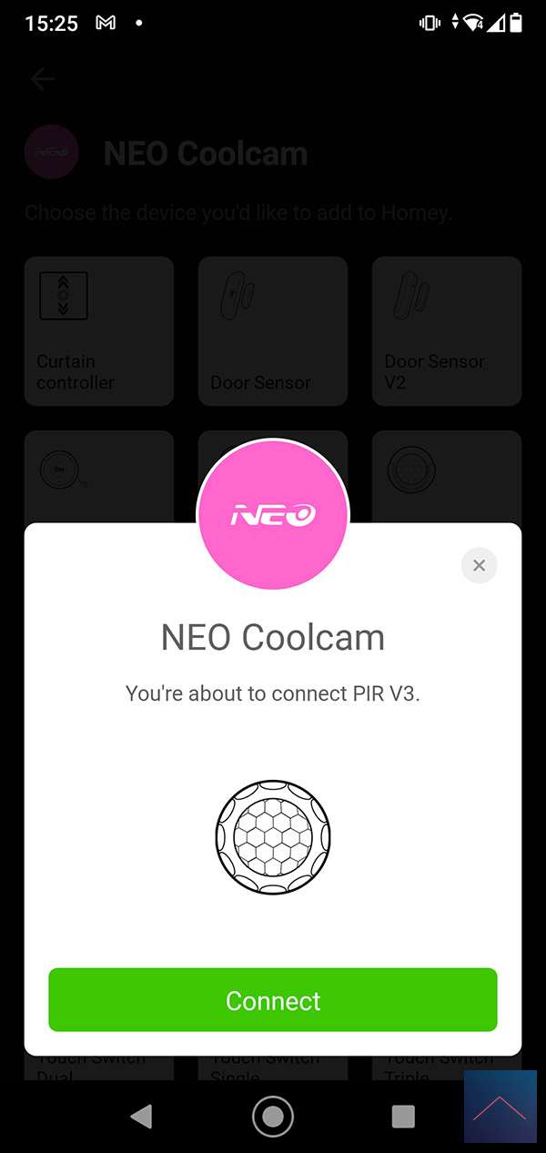 We gaan deze bewegingsmelder als eerste installeren op de Homey door de APP op te starten. Je gaat vervolgens naar de apparaten en klikt op de (+). Hierna moet je Neo CoolCam APP installeren, als je dit nog niet gedaan hebt. Vervolgens zoeken we de motion sensor op, hierbij even opletten dat je de v3 pakt. De controller zal nu in de leerstand gezet worden. Daarna is het een kwestie van de motion sensor open te draaien en het beveiligingslipje bij de batterij te verwijderen. Nu drukken we 3x op het knopje aan de binnenkant. De LED zal 5x rood knipperen en ik zie in de Homey ook dat hij gereset wordt. Nu kunnen we hem echt toevoegen door nogmaals 3x op het knopje te drukken.
