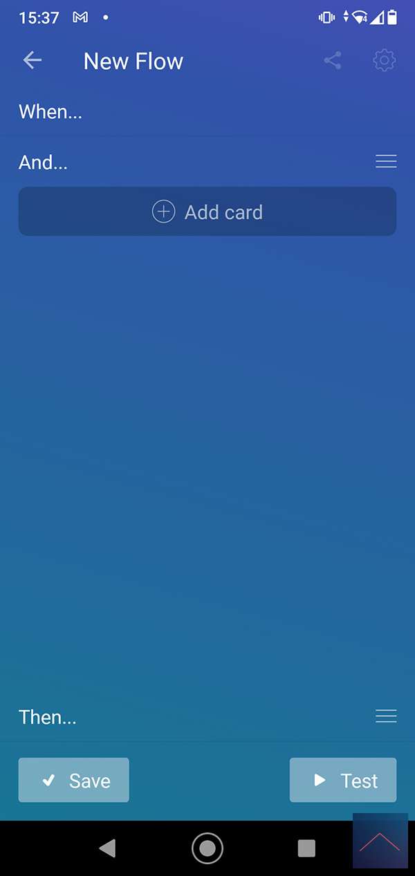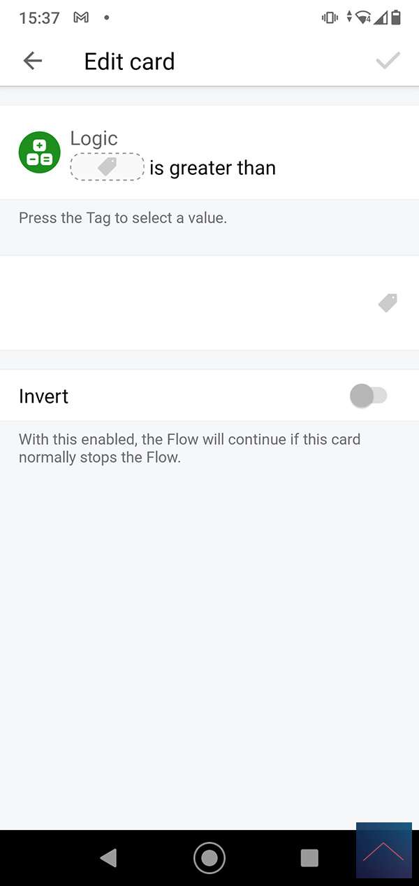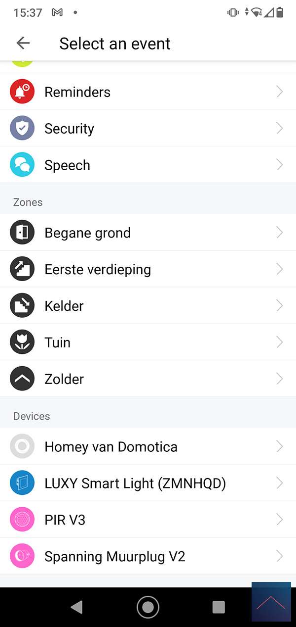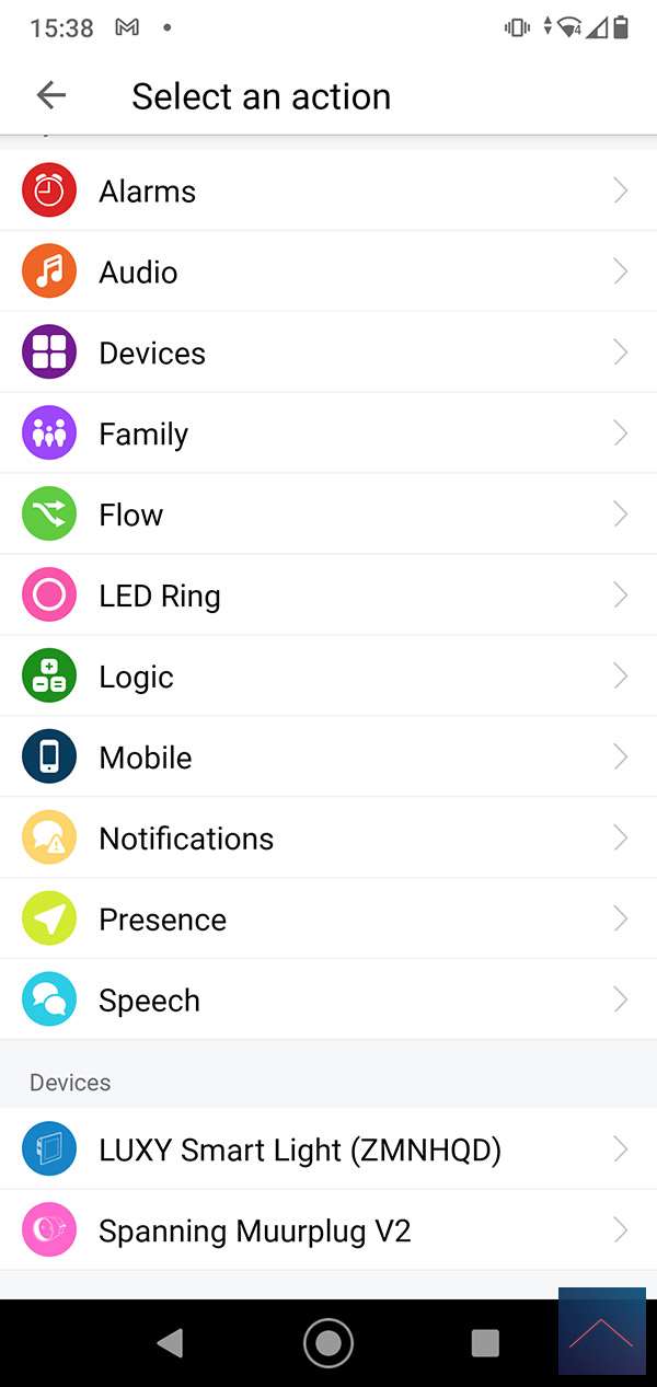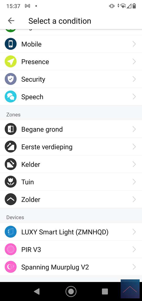We maken een flow waarbij we de ingebouwde luxsensor gaan gebruiken. We zorgen dat als er beweging is en de lux-waarde lager is dan 5, dat dan een lamp wordt aangezet.