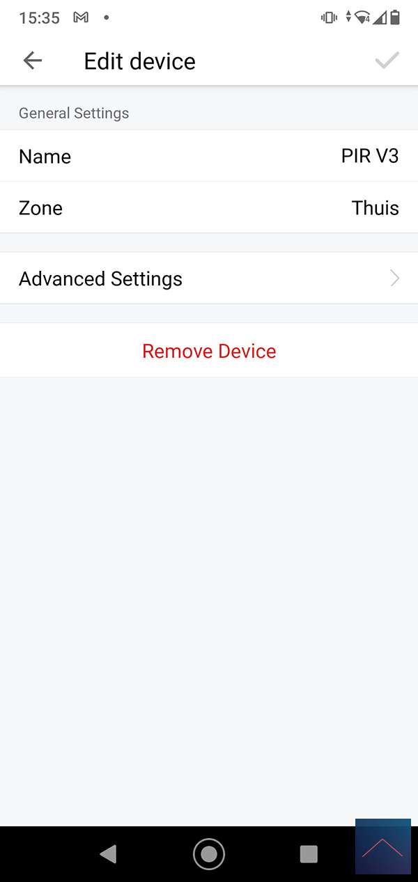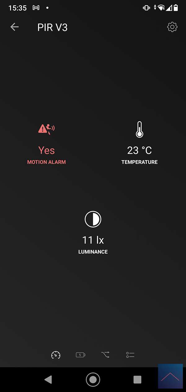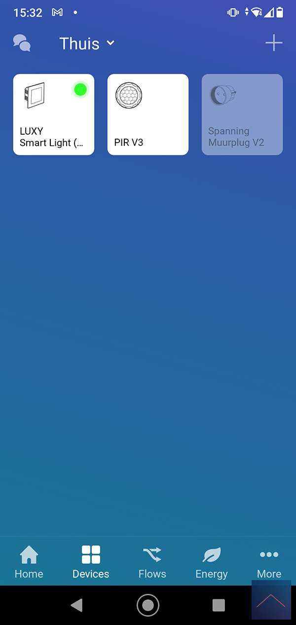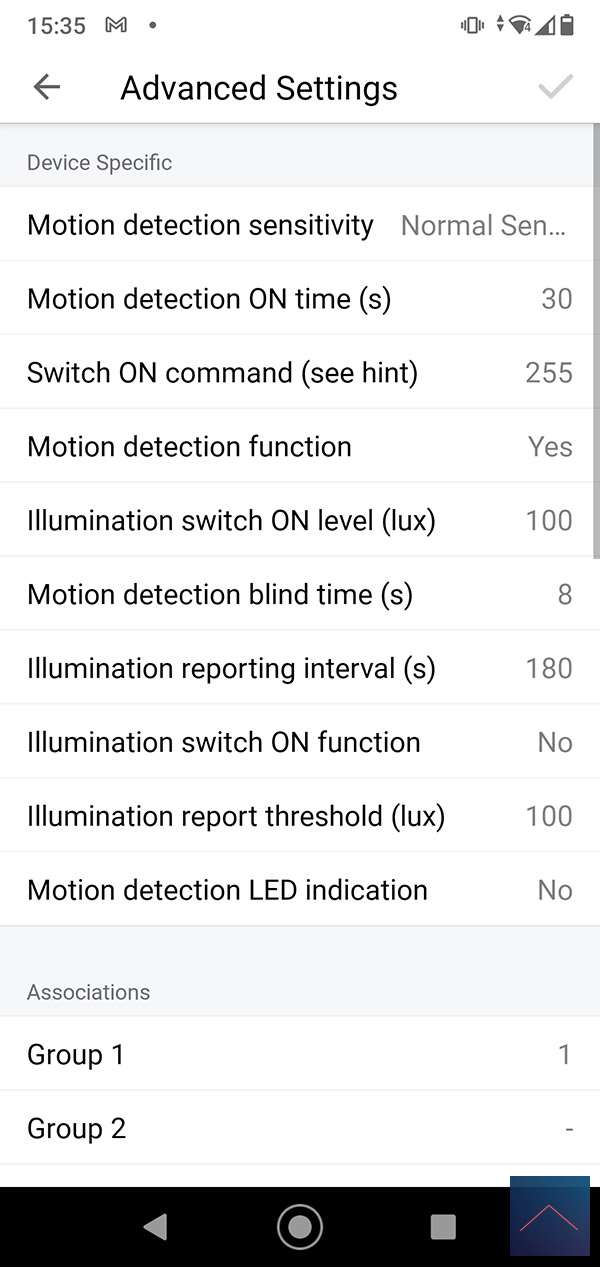Hierna werd hij gevonden en geïnstalleerd. Je krijgt een beweging-, temperatuur- en lichtsensor te zien op het apparatenscherm. Via de configuratie zijn de parameters te beheren. Dit scheelt weer zoeken in de handleiding. Helemaal compleet dus.