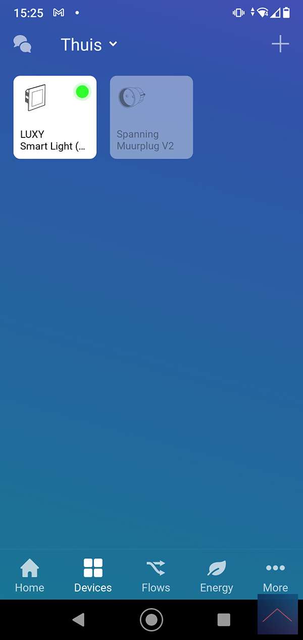 We krijgen, naast de bewegingssensor, ook een temperatuur- en luxsensor. Bij beweging zal de LED rood oplichten en we zien natuurlijk dat de sensor in de Homey op beweging word gezet.