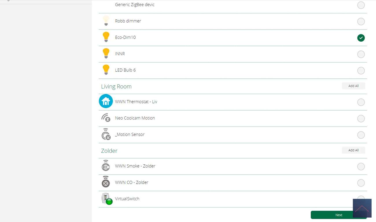 De LED zal 5 keer kort oplichten om aan te geven dat het toevoegen is gelukt. Ik zie bij de "devices" een bewegingssensor, luxmeter en lichtmeter. De configuratie moet je zelf doen (zie verder op in dit artikel).