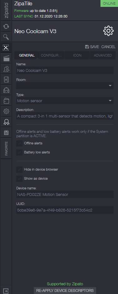 Installatie via de Zipato (ZipaTile/ZipaBox):