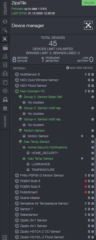 De sensor toevoegen aan de ZipaTile gaat door in te loggen en naar apparatenbeheer te gaan. Vervolgens op de toevoegen knop te klikken en de sensor te voorzien van stroom door het lipje bij de batterij te verwijderen. Hierna moet je 3x op de toevoegen knop drukken aan de binnenkant van de sensor drukken om hem eerst te verwijderen. Hierna nogmaals 3x op de toevoegen knop klikken om hem weer toe te kunnen voegen. De LED zal 5x rood oplichten om aan te geven dat het gelukt is.
