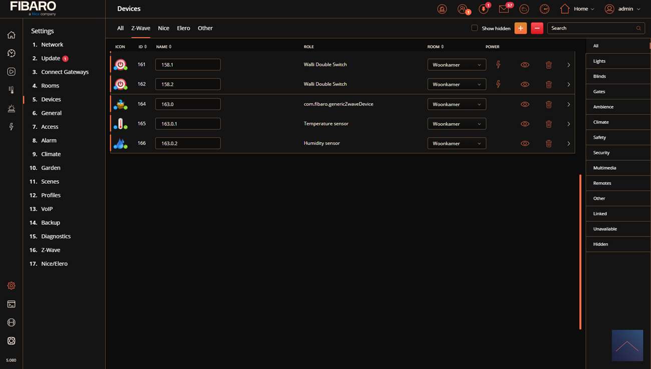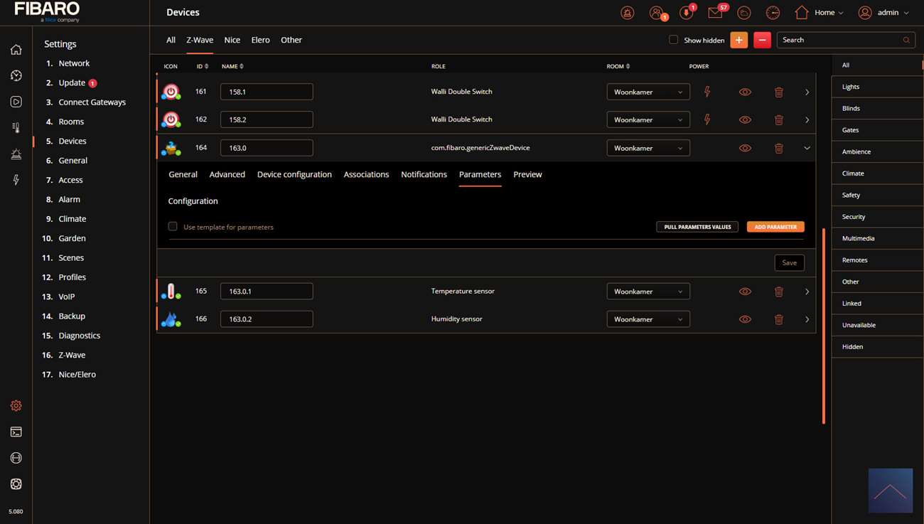 Ik krijg een temperatuur- en een luchtvochtigheidssensor. Het valt me op dat de temperatuursensor een waarde doorgeeft van -4,4 graden. Nou zou koud is het echt niet hier binnen. Deze lijkt dus niet de juiste waarde aan te geven. Je kunt dit eventueel corrigeren door dit in te voeren in de parameters. Verder op in dit artikel vind je hoe.