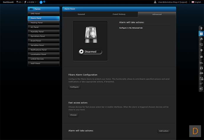 Vervolgens ga je naar je alarm paneel en, indien je dit niet al gedaan had, maak je deze aan via de wizard.