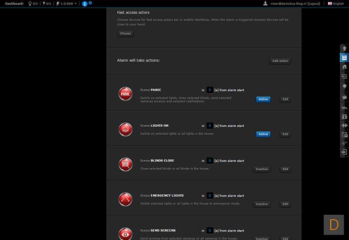 Nadat je de wizard hebt voltooid moet je nog de sirene toevoegen. Dit kun je doen door bij het panic gedeelte de sirene te selecteren.