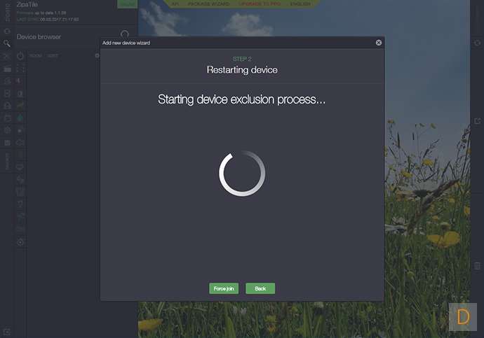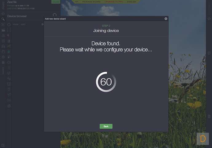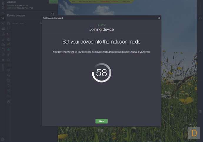 Het toevoegen verliep niet helemaal zonder problemen. Ik kreeg het scherm, dat het toevoegen was gelukt, niet in beeld. Maar als ik bij de "device manager" keek staat hij er netjes tussen. Dit probleem heb ik bij Zipato neergelegd en zij werken aan een oplossing.