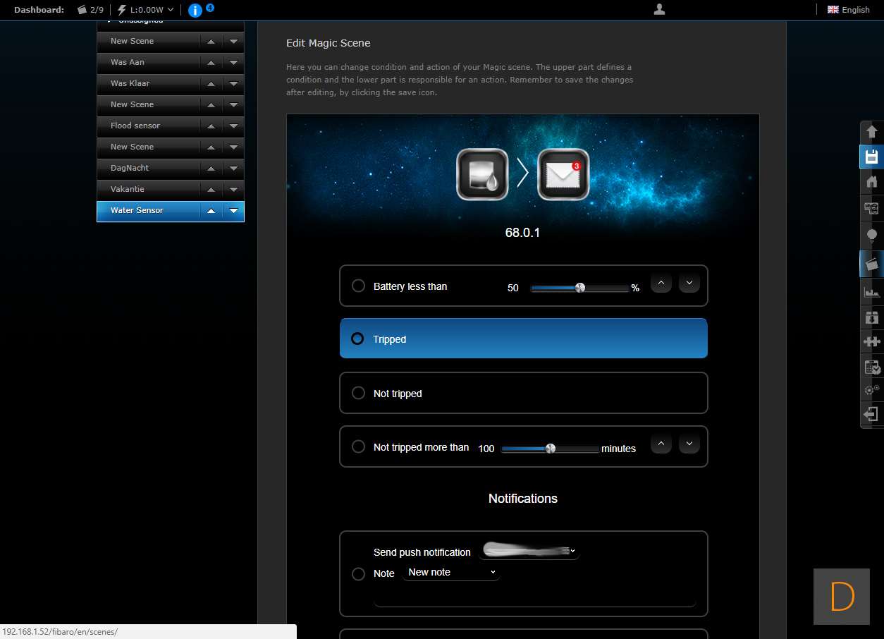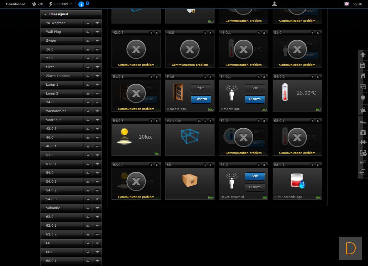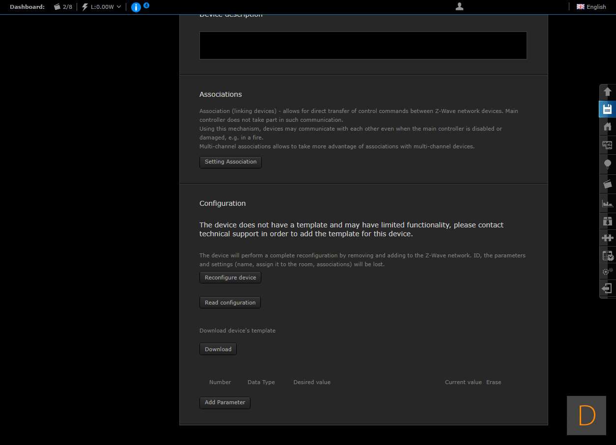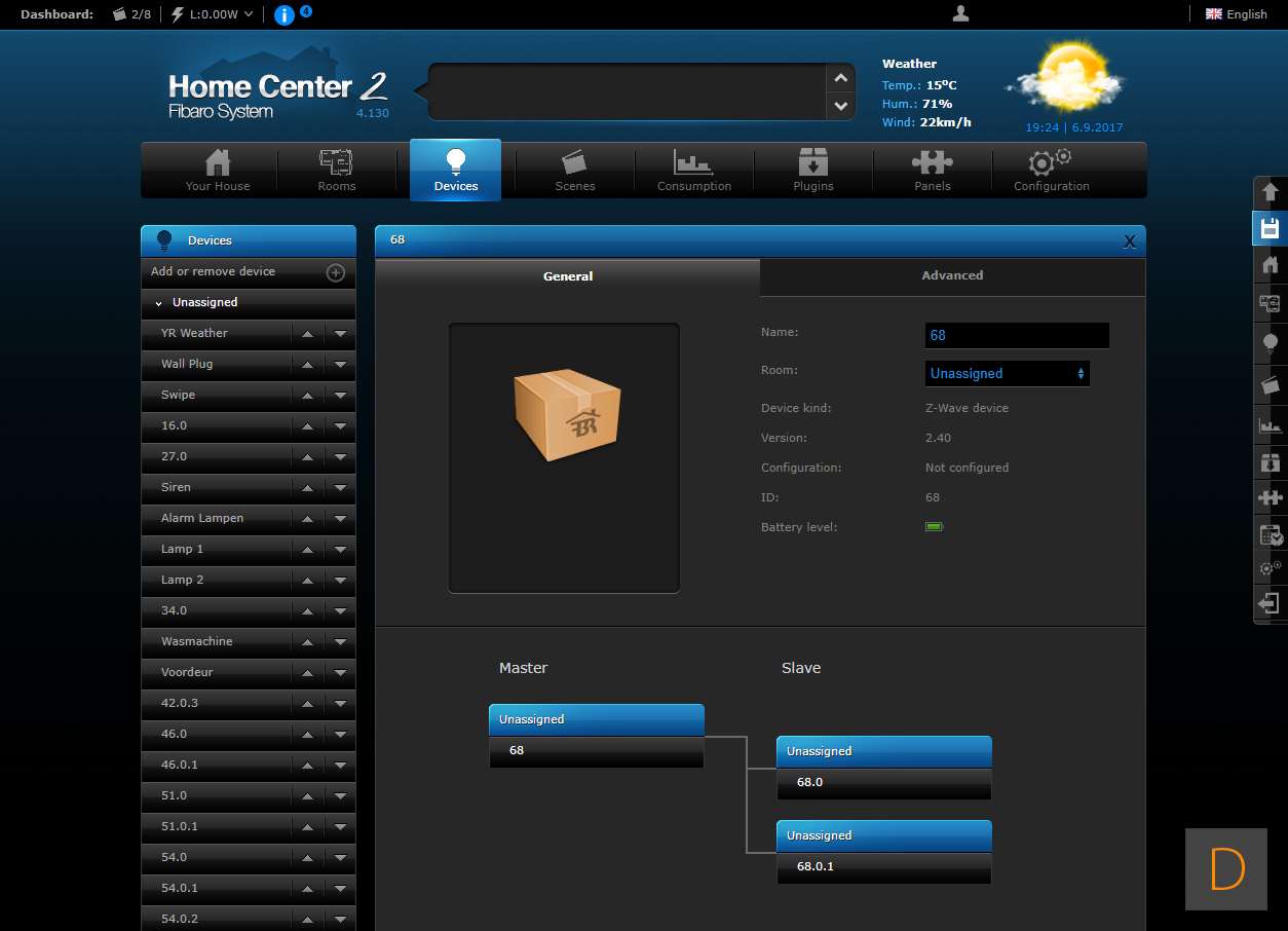 Het installeren van deze water sensor gaat door in te loggen op je HC2 en naar het apparaten gedeelte te gaan. Vervolgens klik je op "add or remove device" waarna je op "add" moet klikken om het toevoegen te starten. Hierna is het een kwestie van de sensor open te draaien en 3x op het toevoegen knopje te klikken. De sensor werd netjes gevonden en toegevoegd. Op het dashboard zie hoofd node, een node om hem scherp te zetten en of er water is gedetecteerd. Er is geen template beschikbaar maar alles lijkt prima te werken.