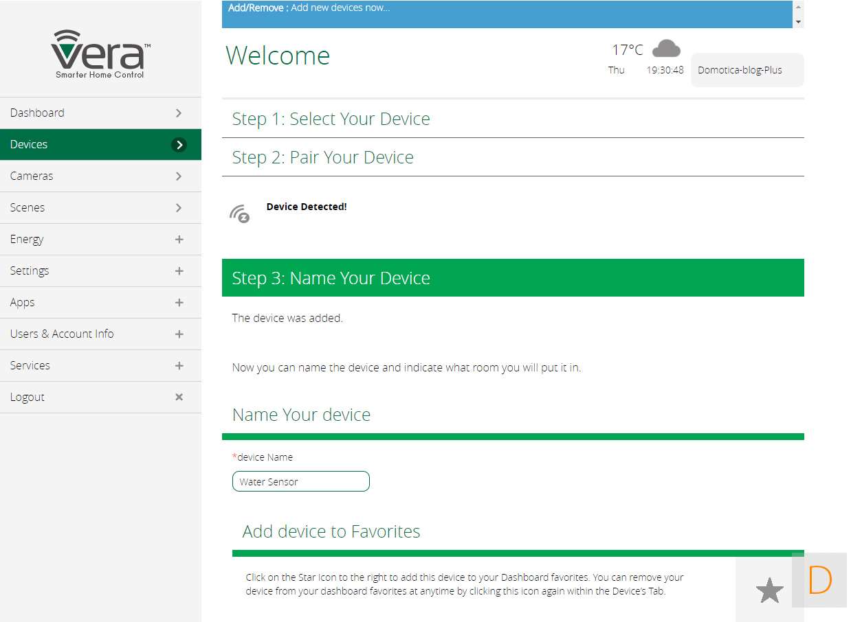 Het toevoegen aan de Vera Egde kan ik kort over zijn. De sensor staat niet in de lijst en word niet op de juiste manier gevonden als ik hem als algemene Z-Wave sensor toevoeg.