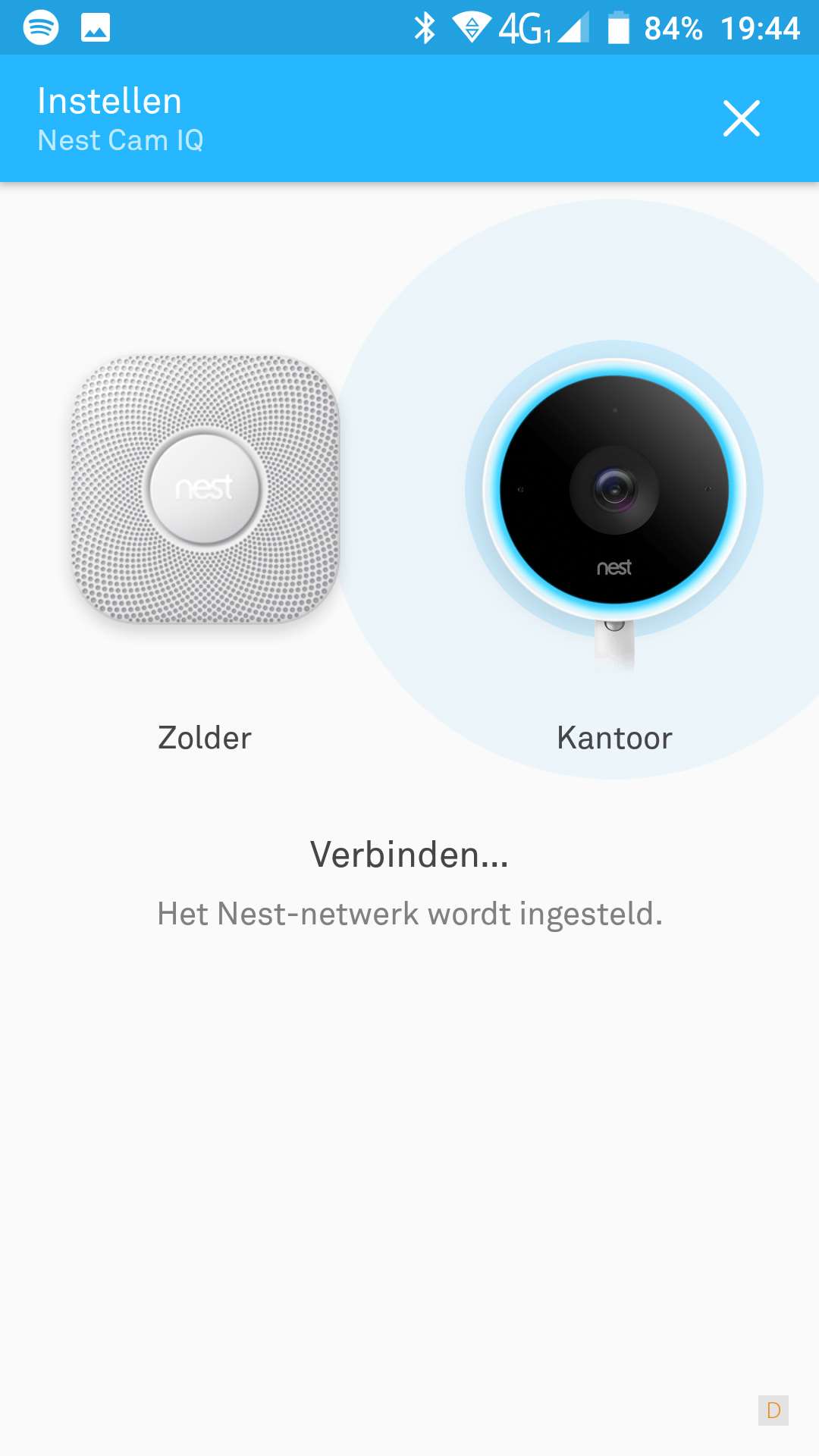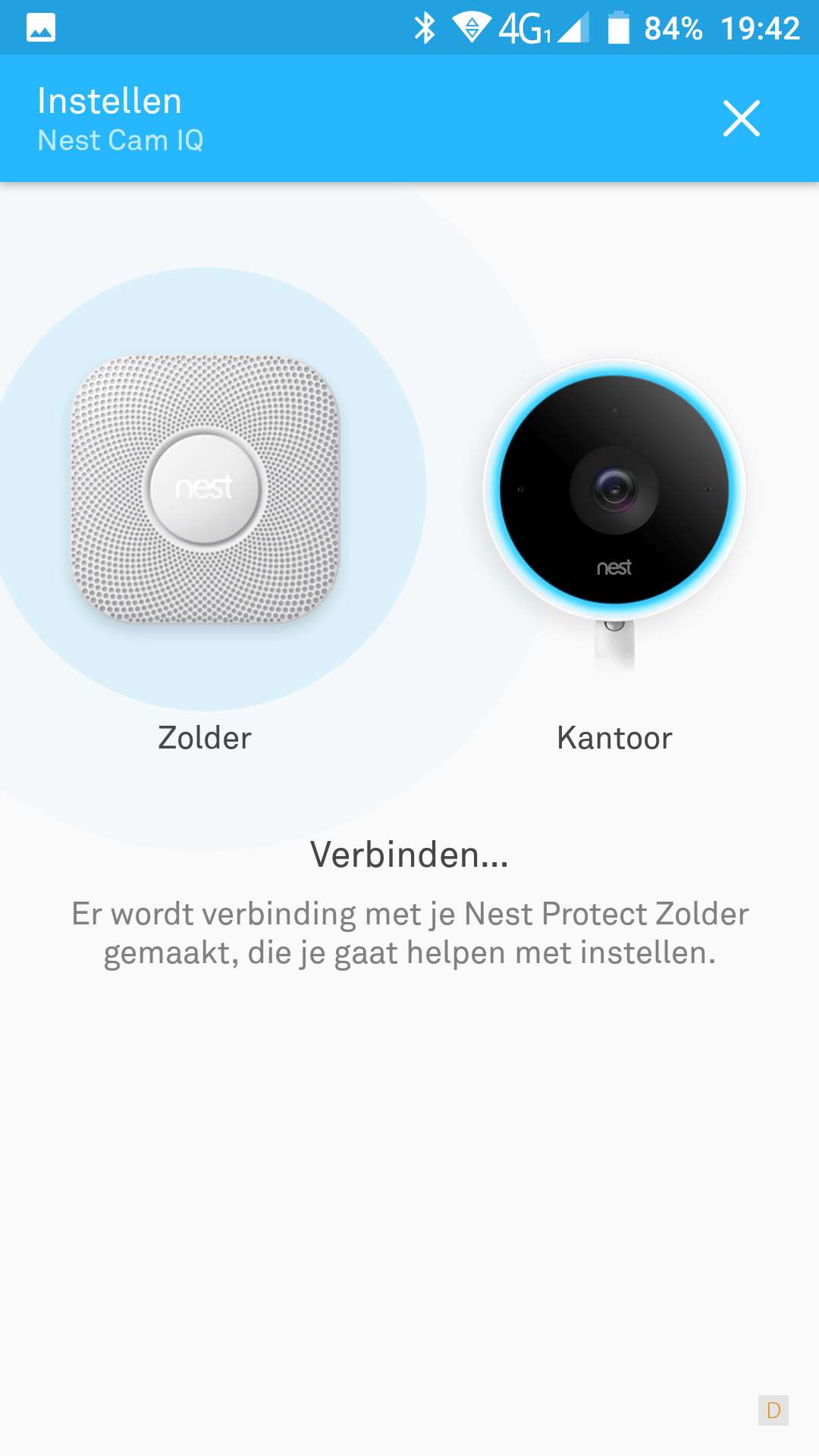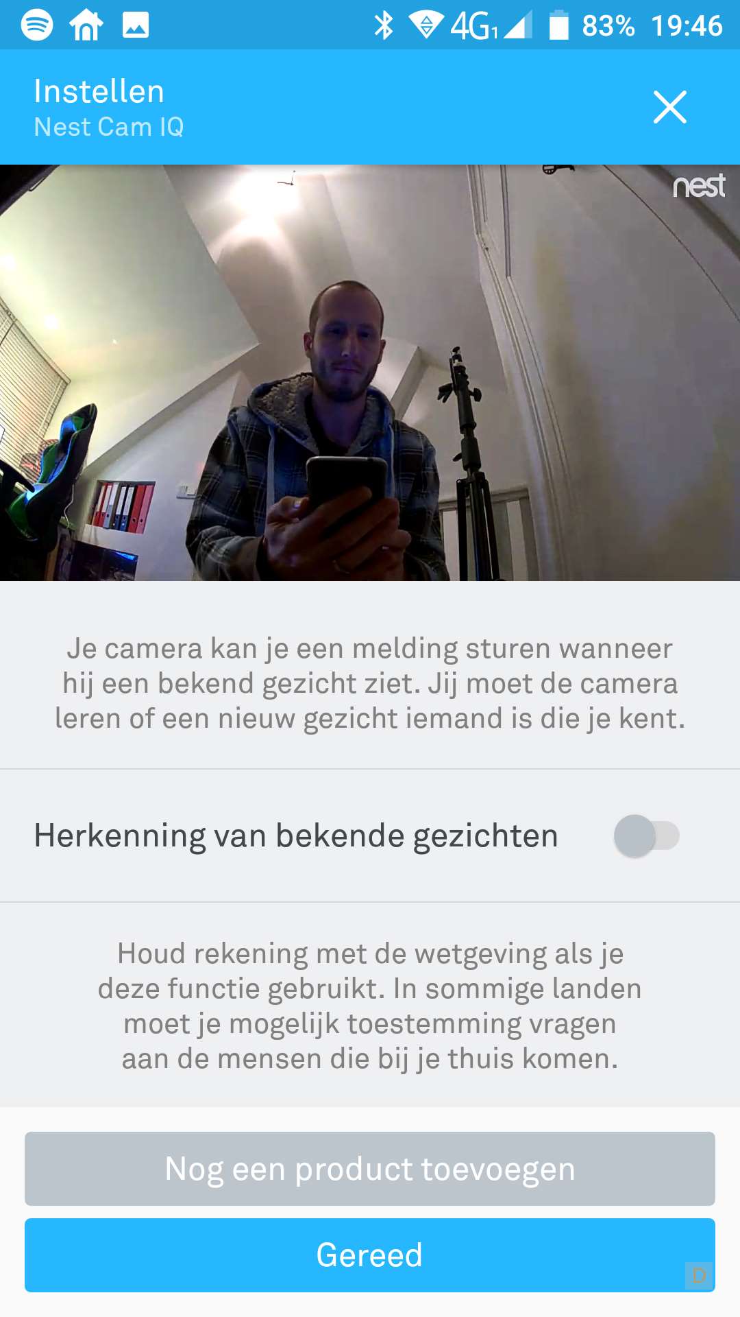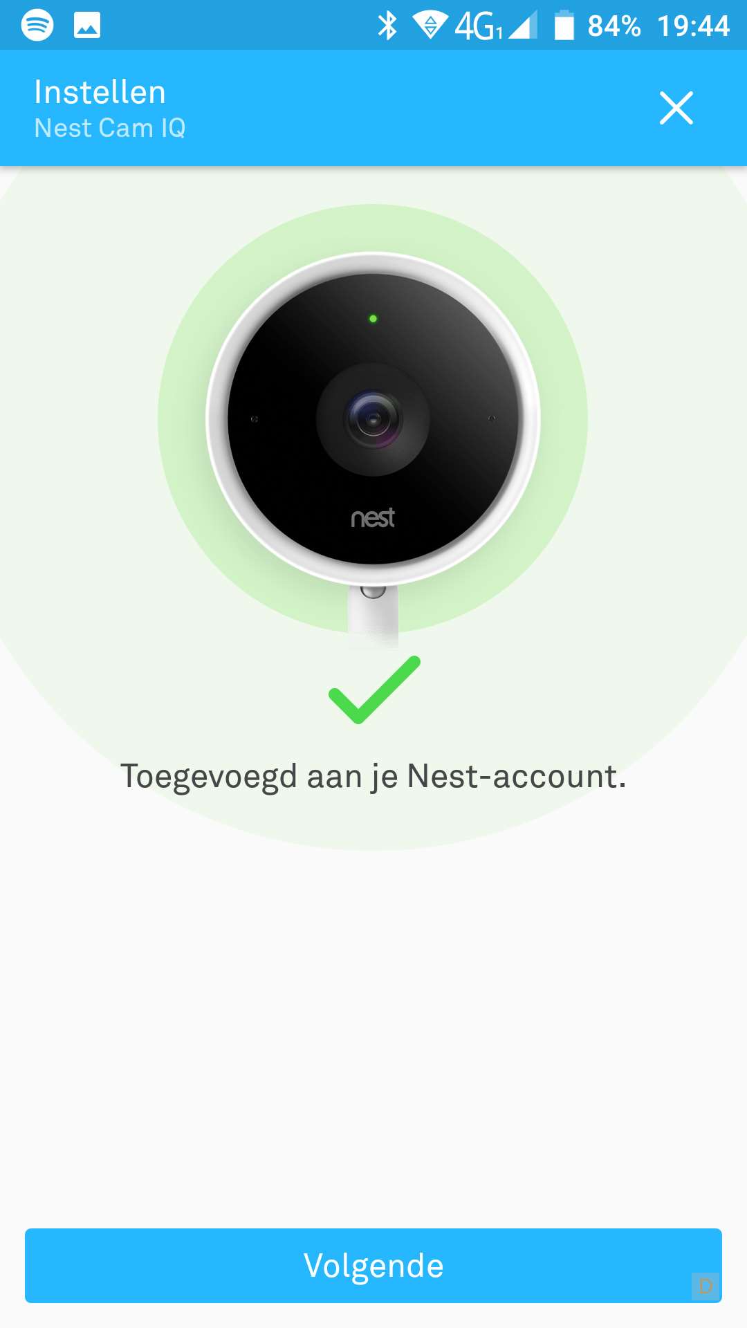 De installatie liep bij mij iets anders dan waarschijnlijk nog normaal zal gaan omdat ik ook een Nest Protect hebt. Hierdoor liep de installatie via deze rookmelder. Als de installatie gelukt is geeft de camera weer een gong en zal hij worden toegevoegd aan het start scherm.