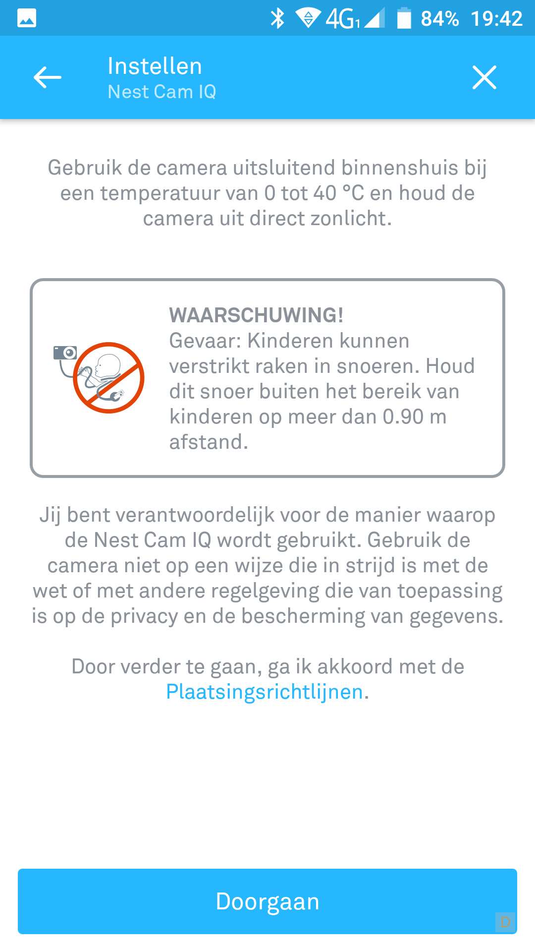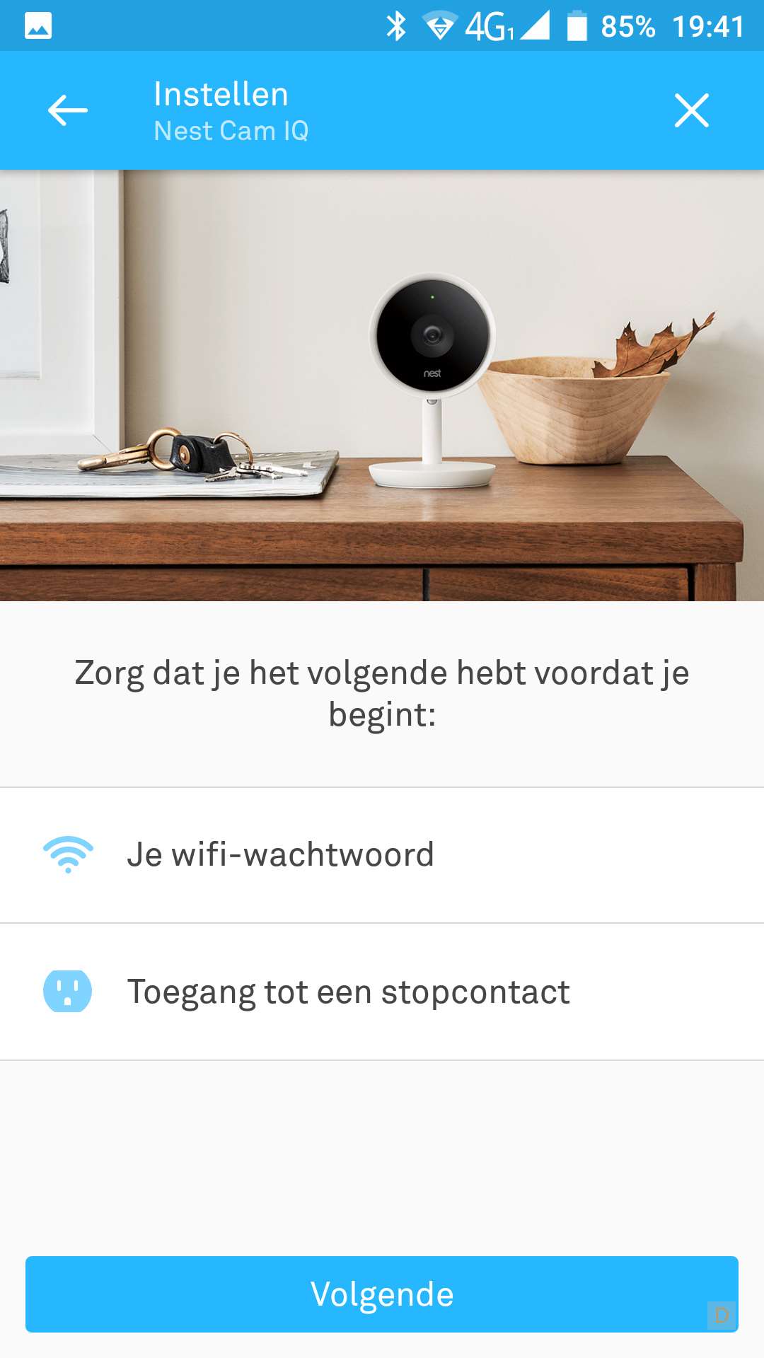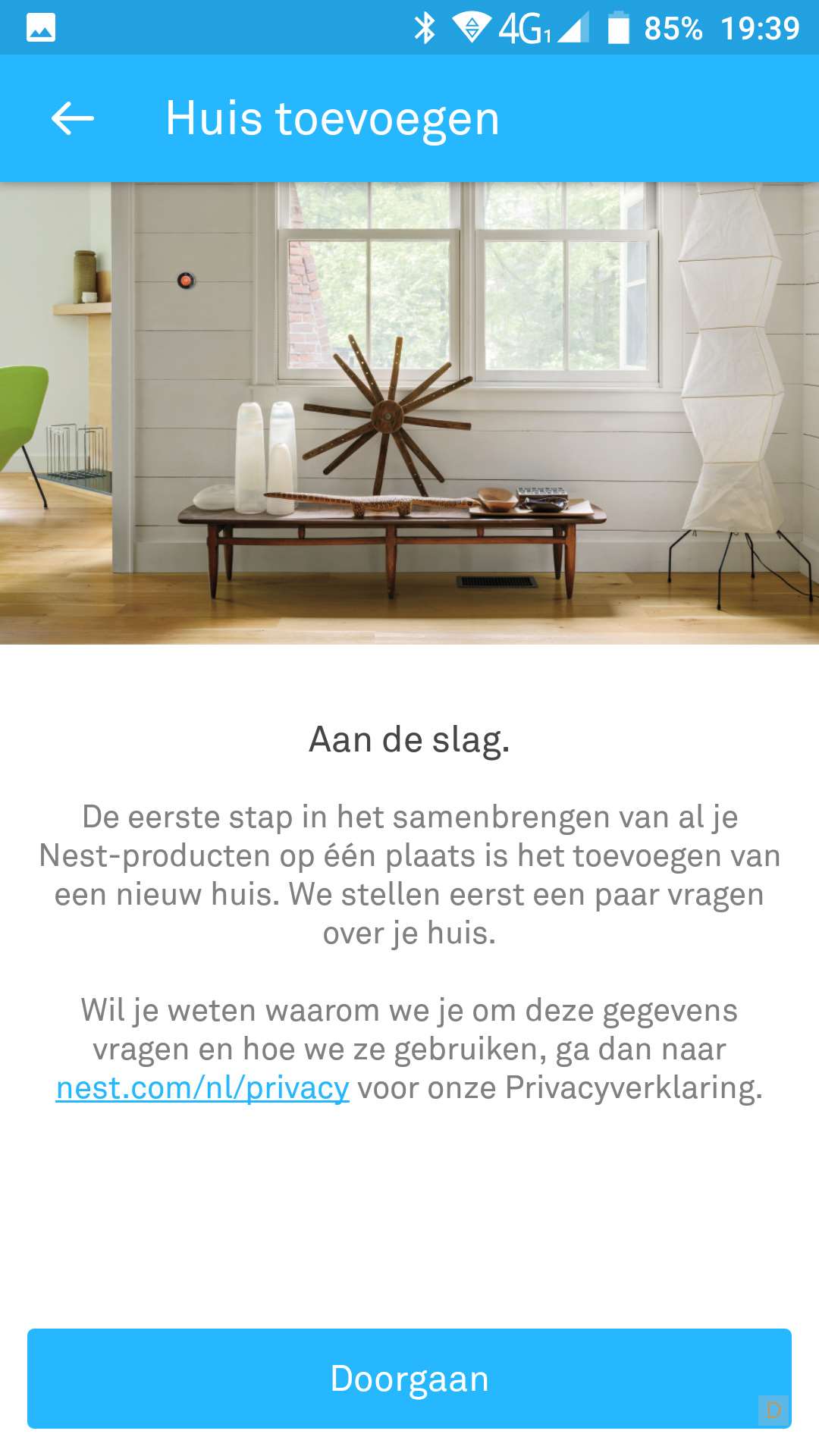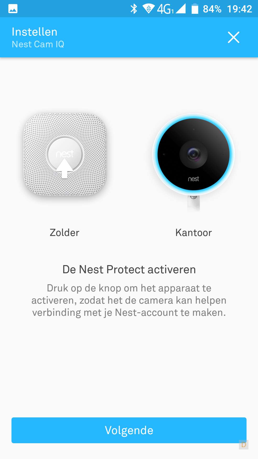 De installatie liep bij mij iets anders dan waarschijnlijk nog normaal zal gaan omdat ik ook een Nest Protect hebt. Hierdoor liep de installatie via deze rookmelder. Als de installatie gelukt is geeft de camera weer een gong en zal hij worden toegevoegd aan het start scherm.