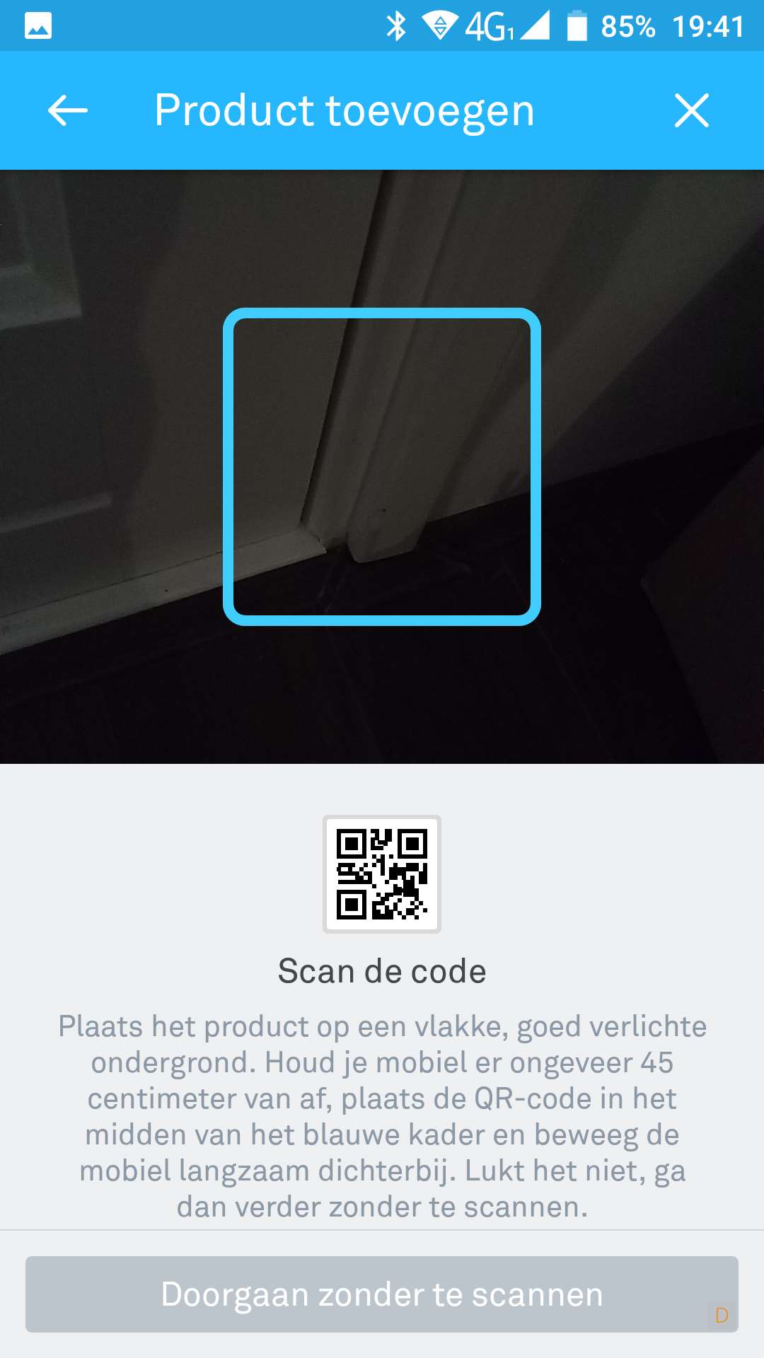 Na het aanmaken van een account moet je de camera toevoegen. Om het toevoegen te starten voorzie je de camera van stroom, als hij is opgestart zal de LED blauw oplichten en hij zal een gong geven.