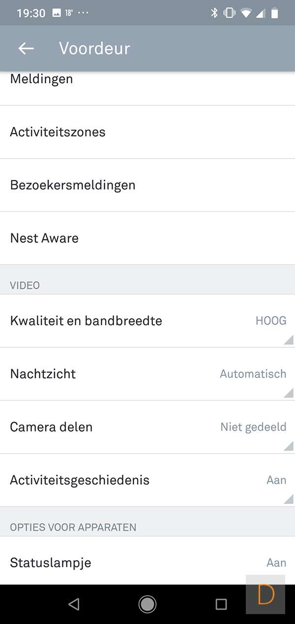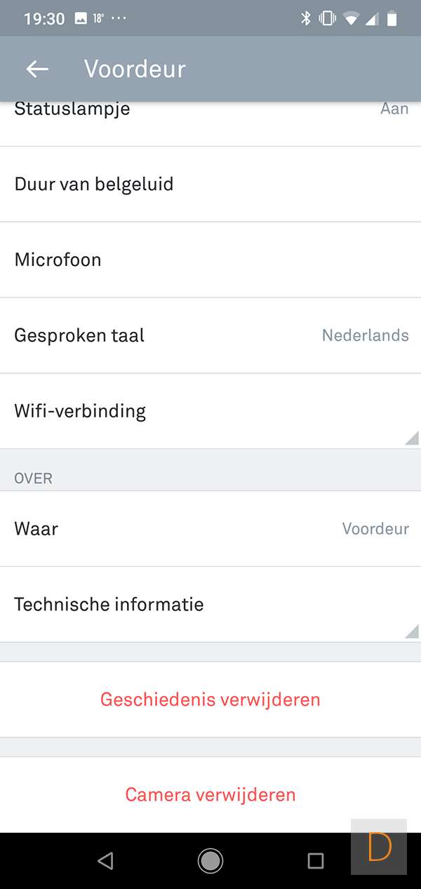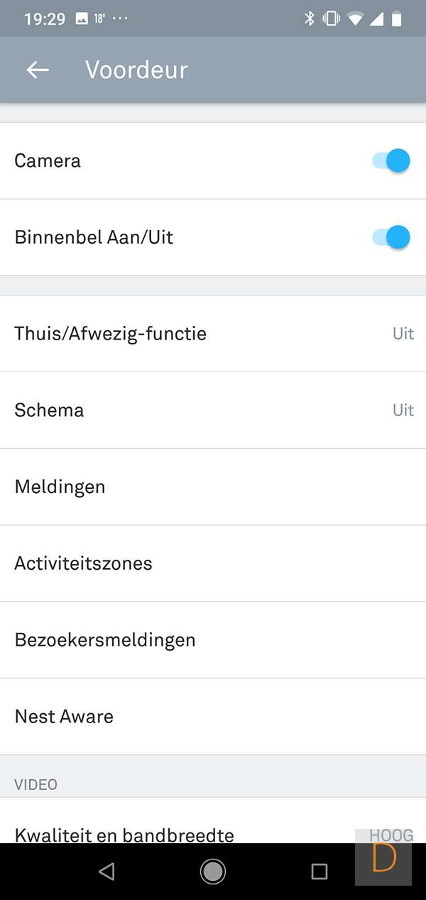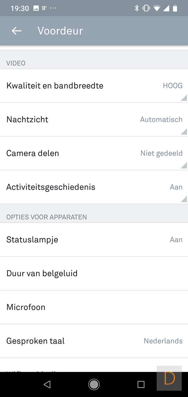 Bij de instellingen kun je onder andere de camera en gong aan- of uitzetten. Je kunt de bel ook automatisch en op een vast tijd uit/aan laten zetten.