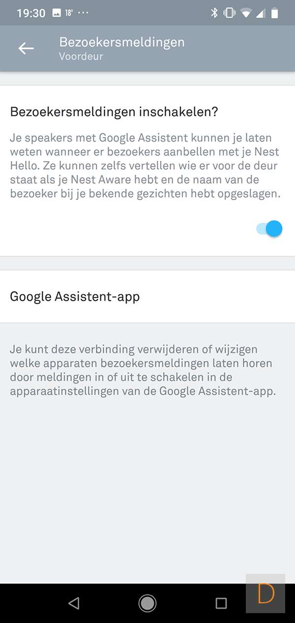 Momenteel is de API van Nest nog niet bijgewerkt om ook verzoeken van de deurbel te kunnen afvangen. Wij gaan er vanuit dat Nest deze functionaliteit gaat toevoegen. Je kunt wel evenementen afvangen van de video. Je kunt dus triggeren bij geluid en video. Andere optie zou kunnen zijn om IFTTT gebruiken. Hierbij kun je ook alleen maar triggeren op motion en geluid.