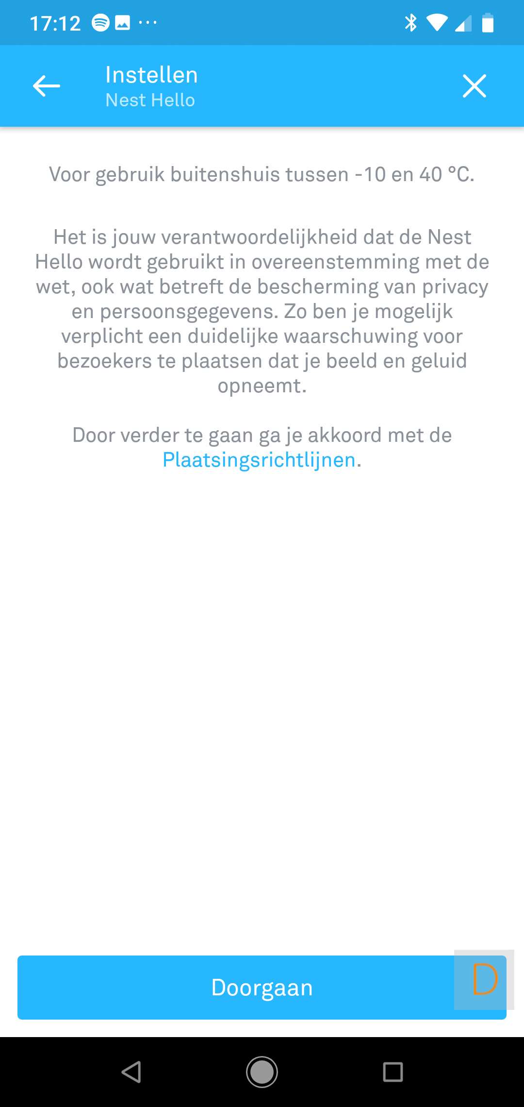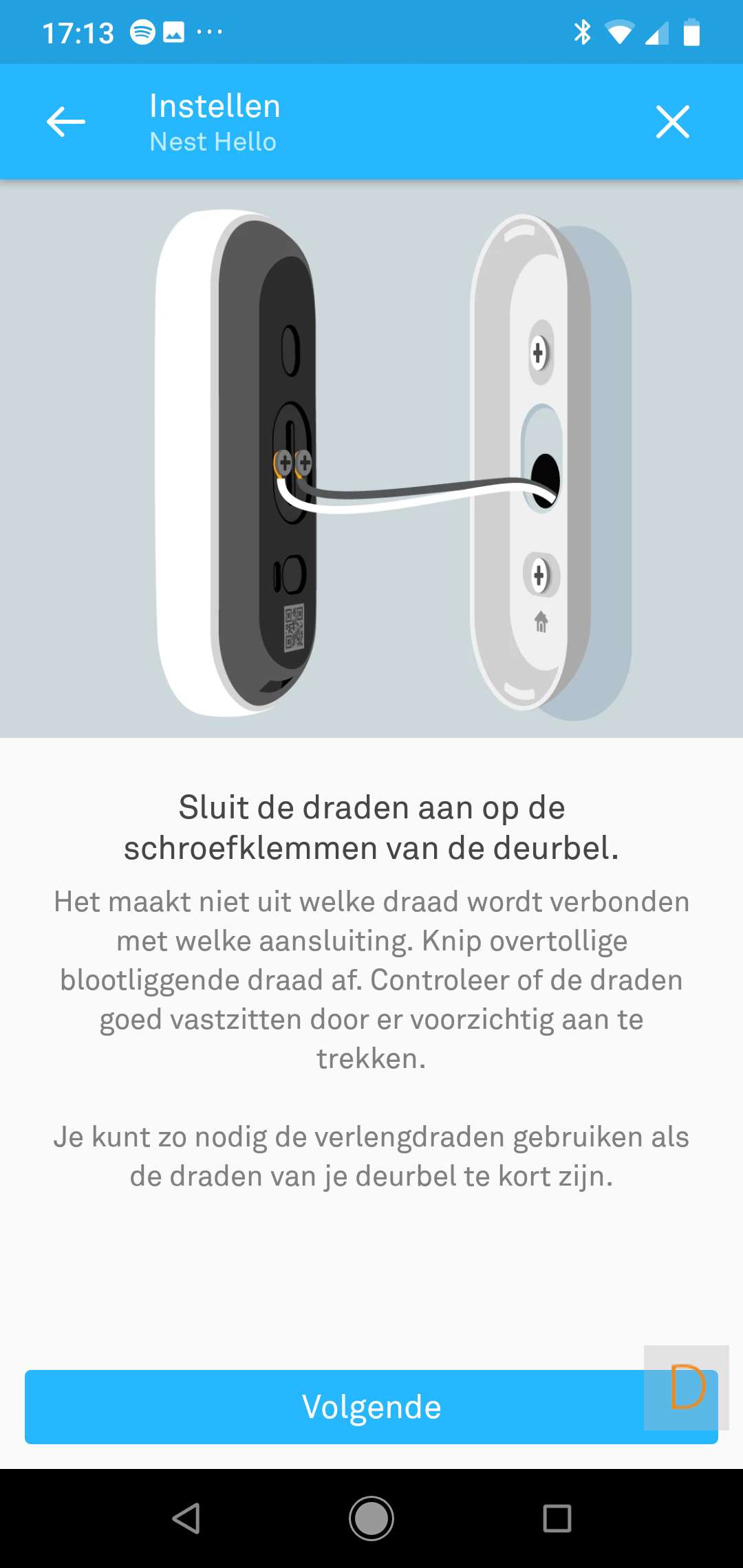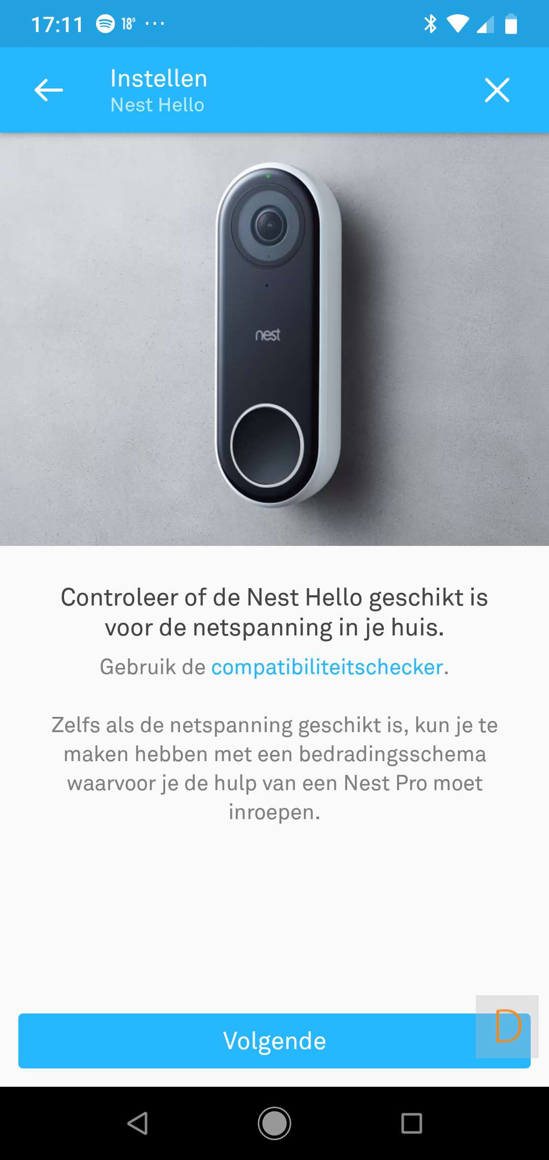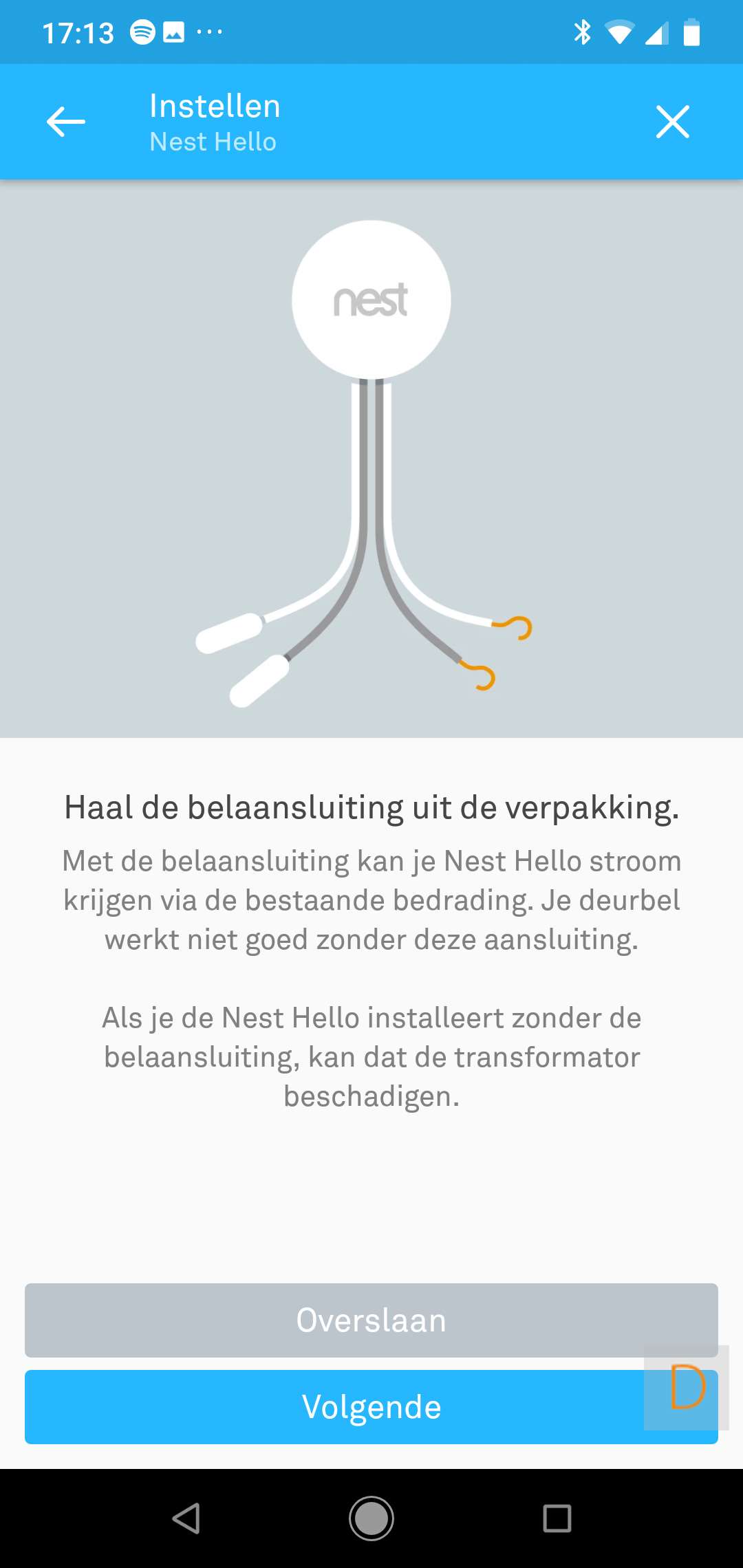 Belangrijk om te melden is dat je beltrafo en bel geschikt moeten zijn. Zo was bij mij het geval dat zowel de gong als de trafo 12V waren. De nest heeft minimaal 16V (liever 24V) nodig. Bij moest dus de gong en trafo vervangen worden. Deze kosten komen er dus nog bij. Overigens heeft Nest een handige wizard op hun website om te kijken of je huidige situatie geschikt is. Deze kun je hier bekijken.