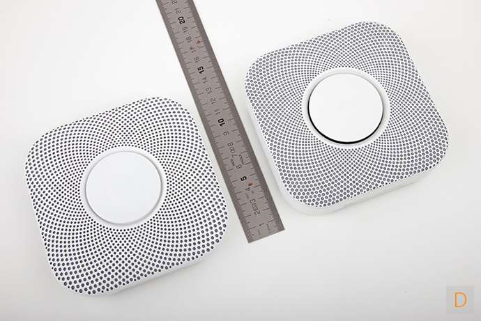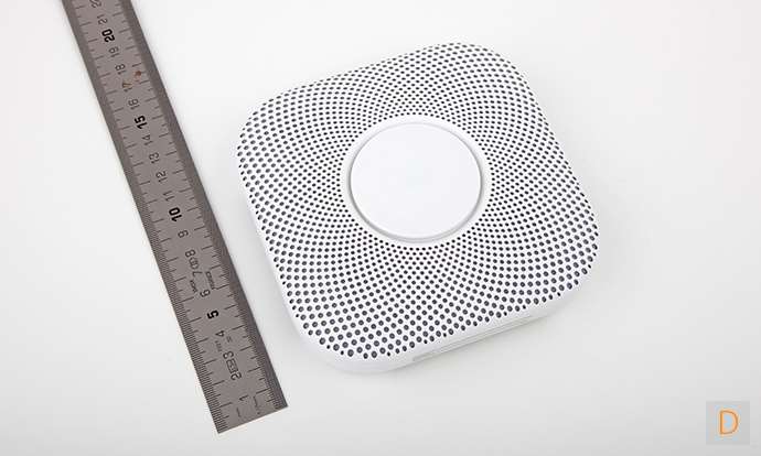 De Nest rookmelder is 13,4 cm (b x l) en 3,85 cm hoog. Wat weer een stukje kleiner is dan de oude Nest rookmelder.