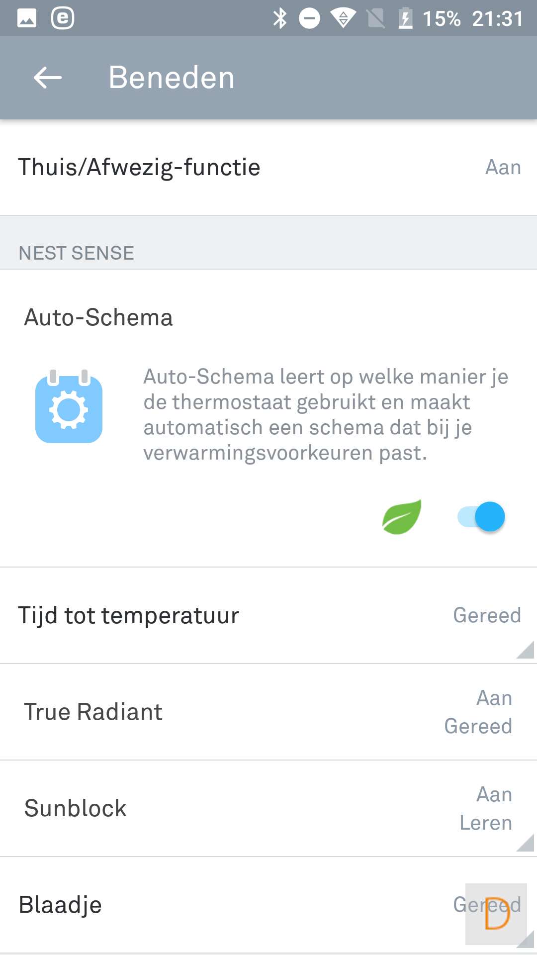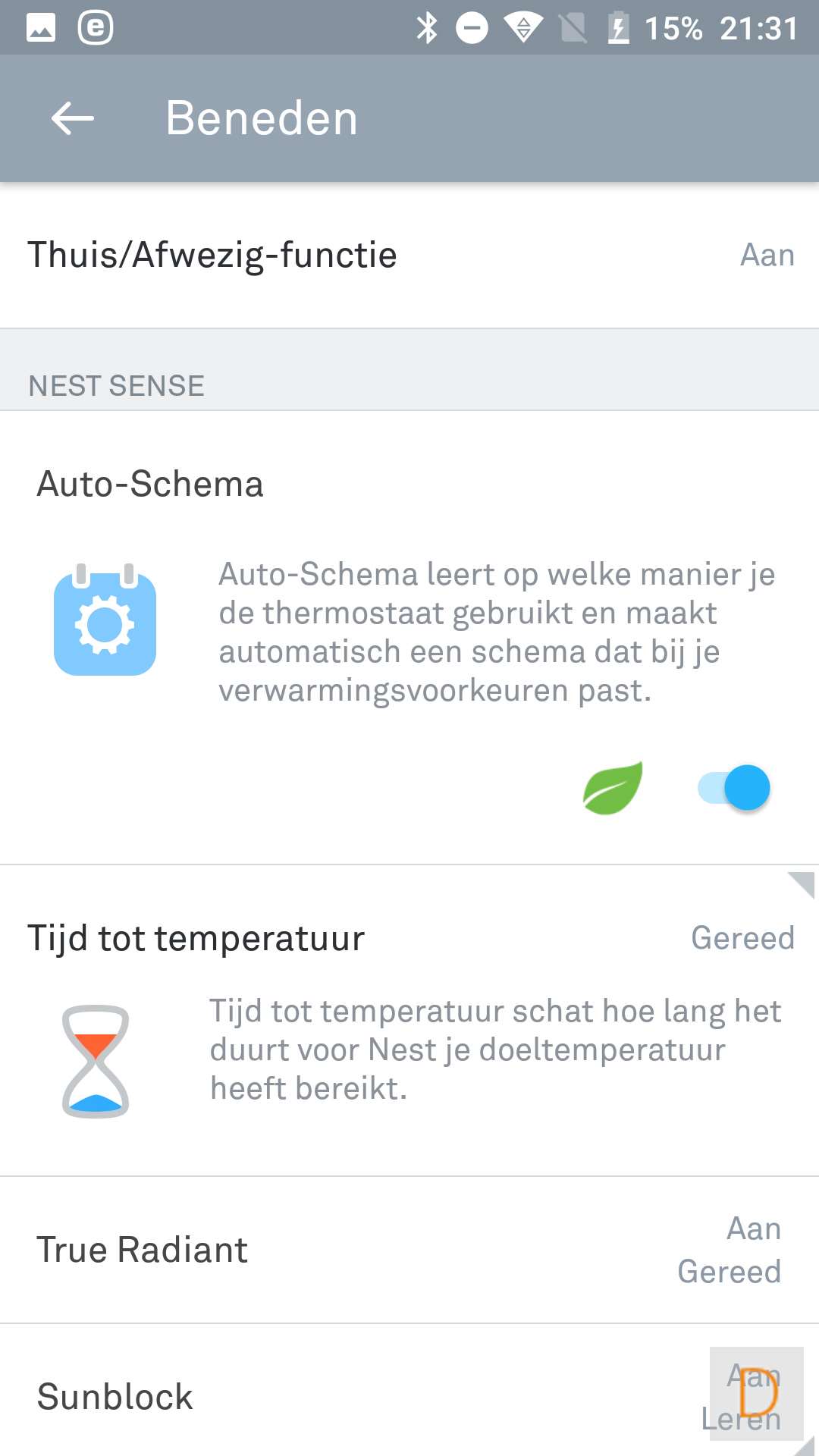 De APP van de Nest zit goed in elkaar zoals we wel gewend zijn van Nest. Je kunt er uiteraard je temperatuur mee instellen, het schema bepalen en alle instellingen wijzigen.