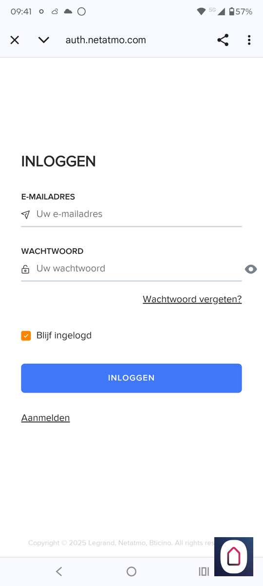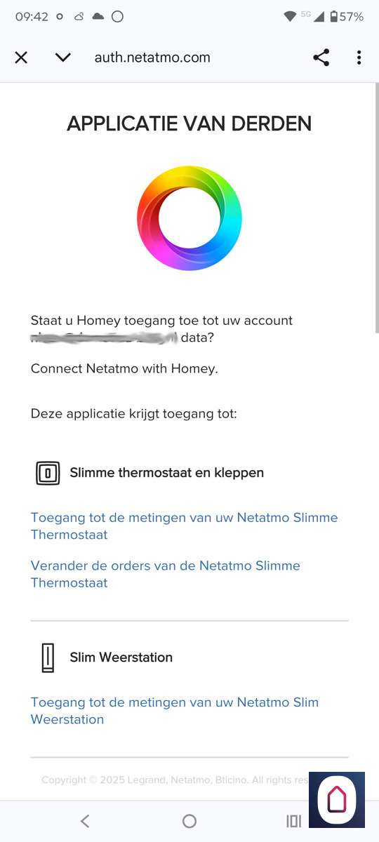 - Inloggen op het portaal van Netatmo en toestemming geven