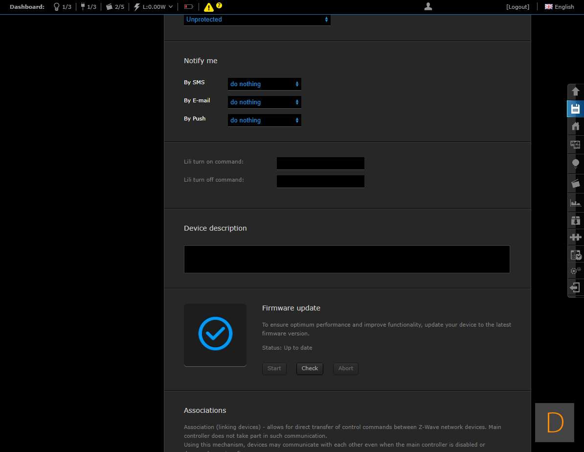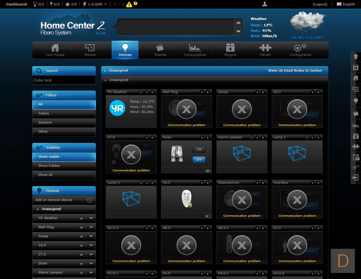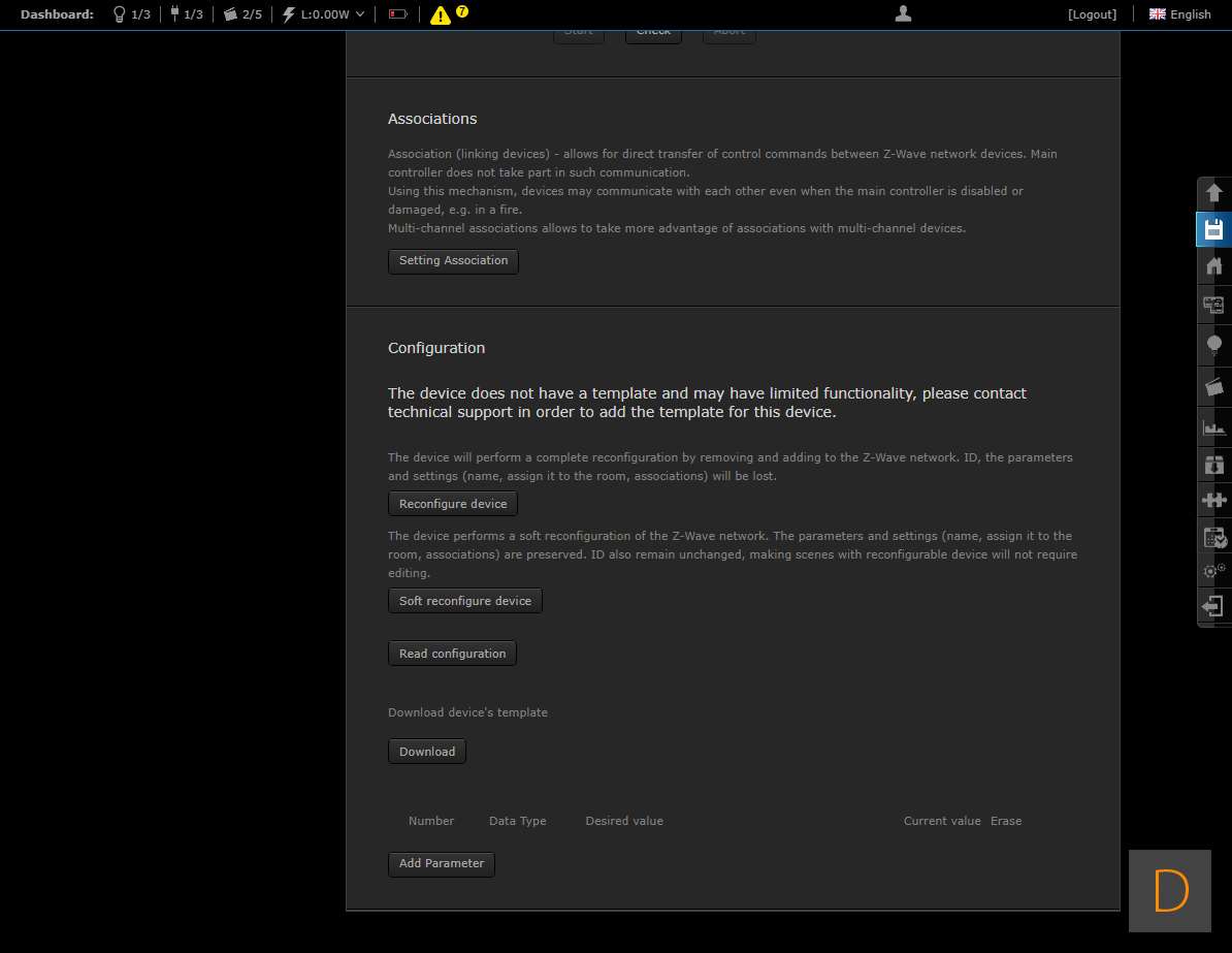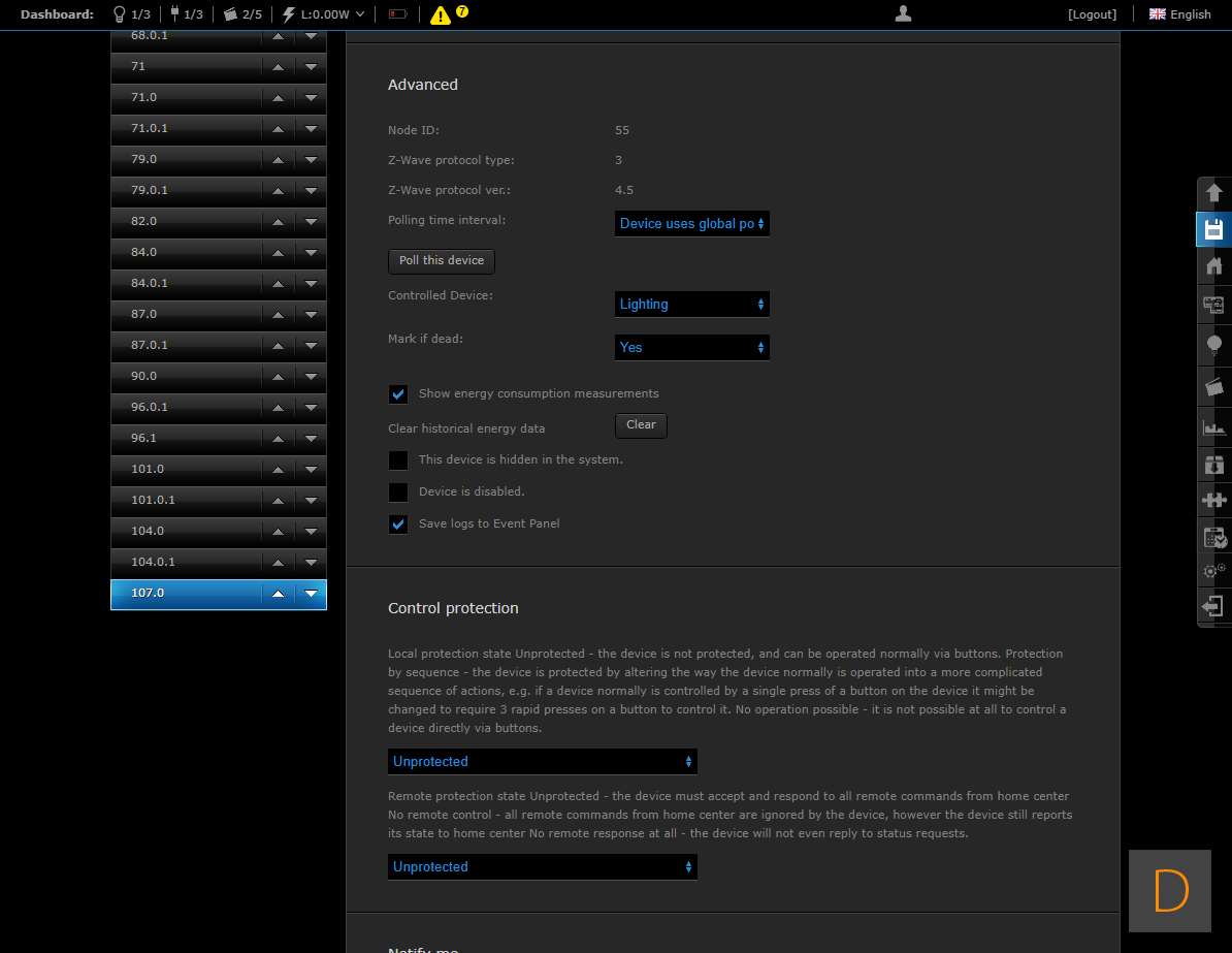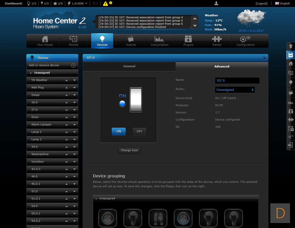Om het toevoegen van deze plug te starten log je in op je Home Center. Vervolgens ga je naar het device gedeelte en klik je op "add or remove device" en vervolgens op de "add" knop. Het aftellen zal beginnen. Hierna moet je de plug voorzien van stroom. Je kunt het toevoegen starten door 3 keer snel achter elkaar op het knopje aan de boven te drukken. Het knopje zal blauw oplichten om aan te geven dat het toevoegen is gestart. Zorg altijd dat je dicht bij de controller bent als je gaat toevoegen. Hij werd netjes gevonden en toegevoegd aan de HC2. Ik zie ook alle opties en configuratie mogelijkheden (aan en uit, totaal verbruik en huidig verbruik).