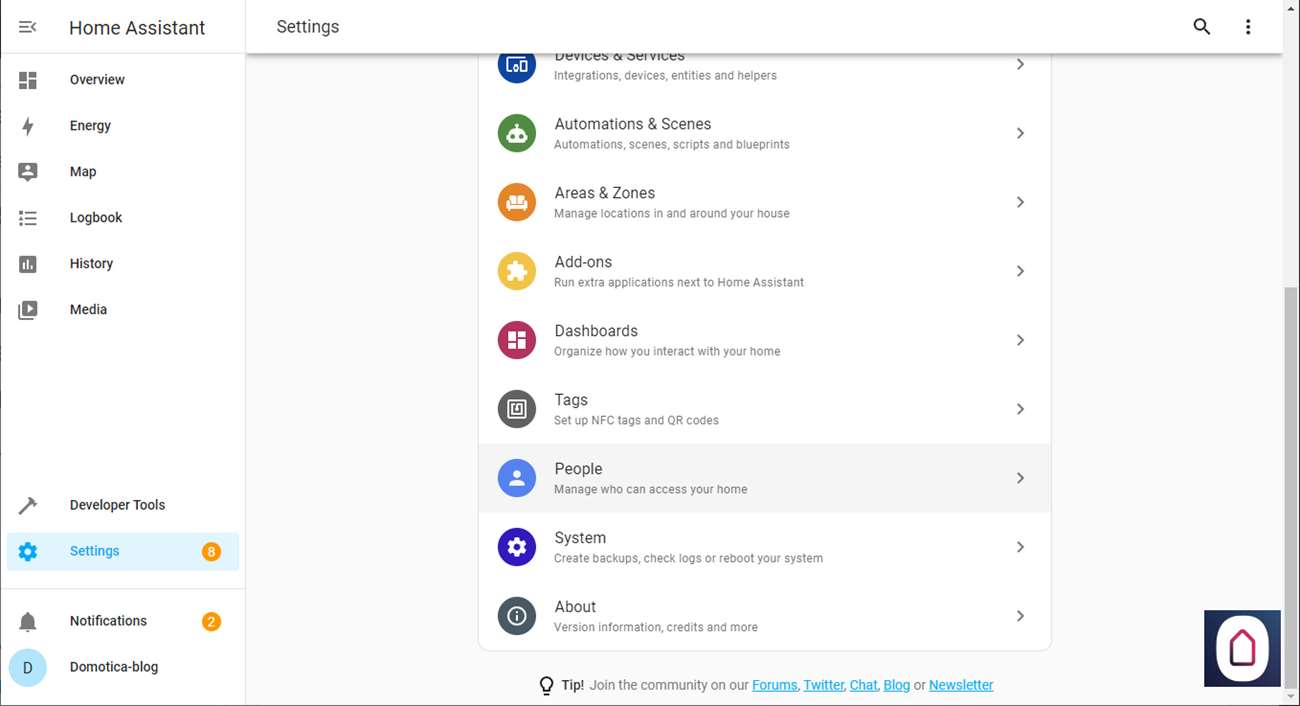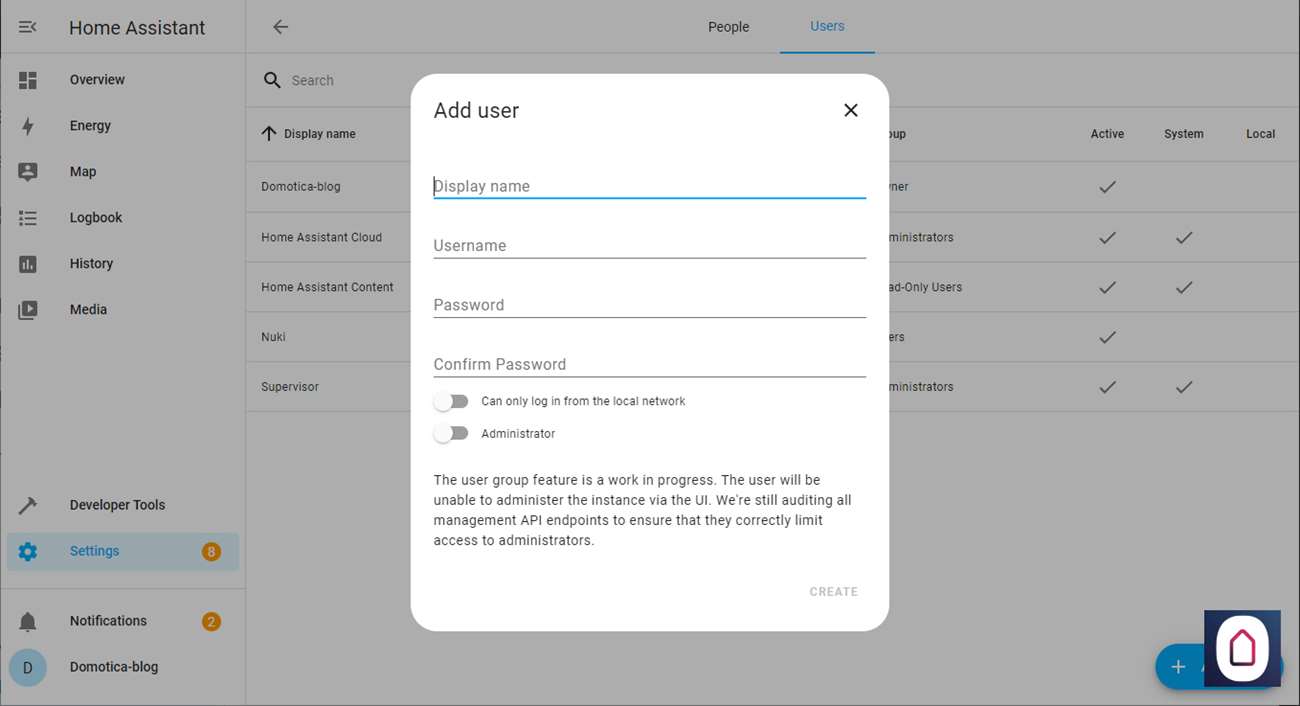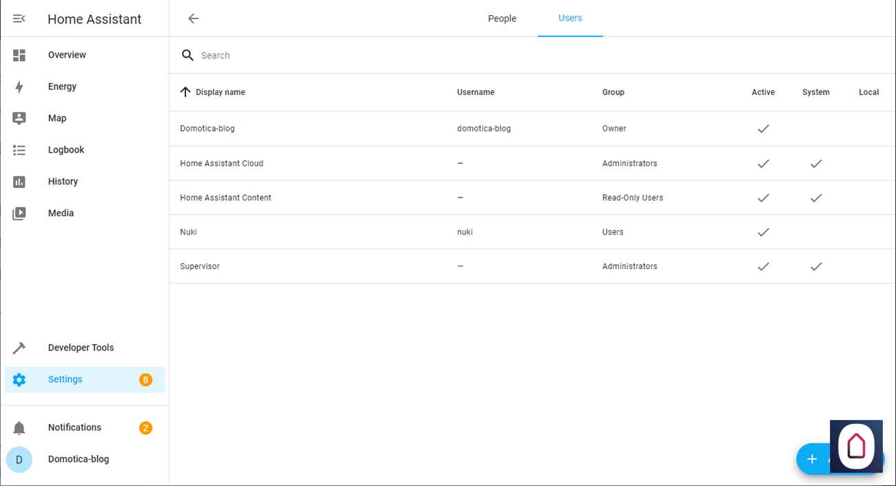 Nu moeten we nog even een gebruiker aanmaken via setting > people > users. Deze heb je namelijk nodig om in te loggen via de Nuki.