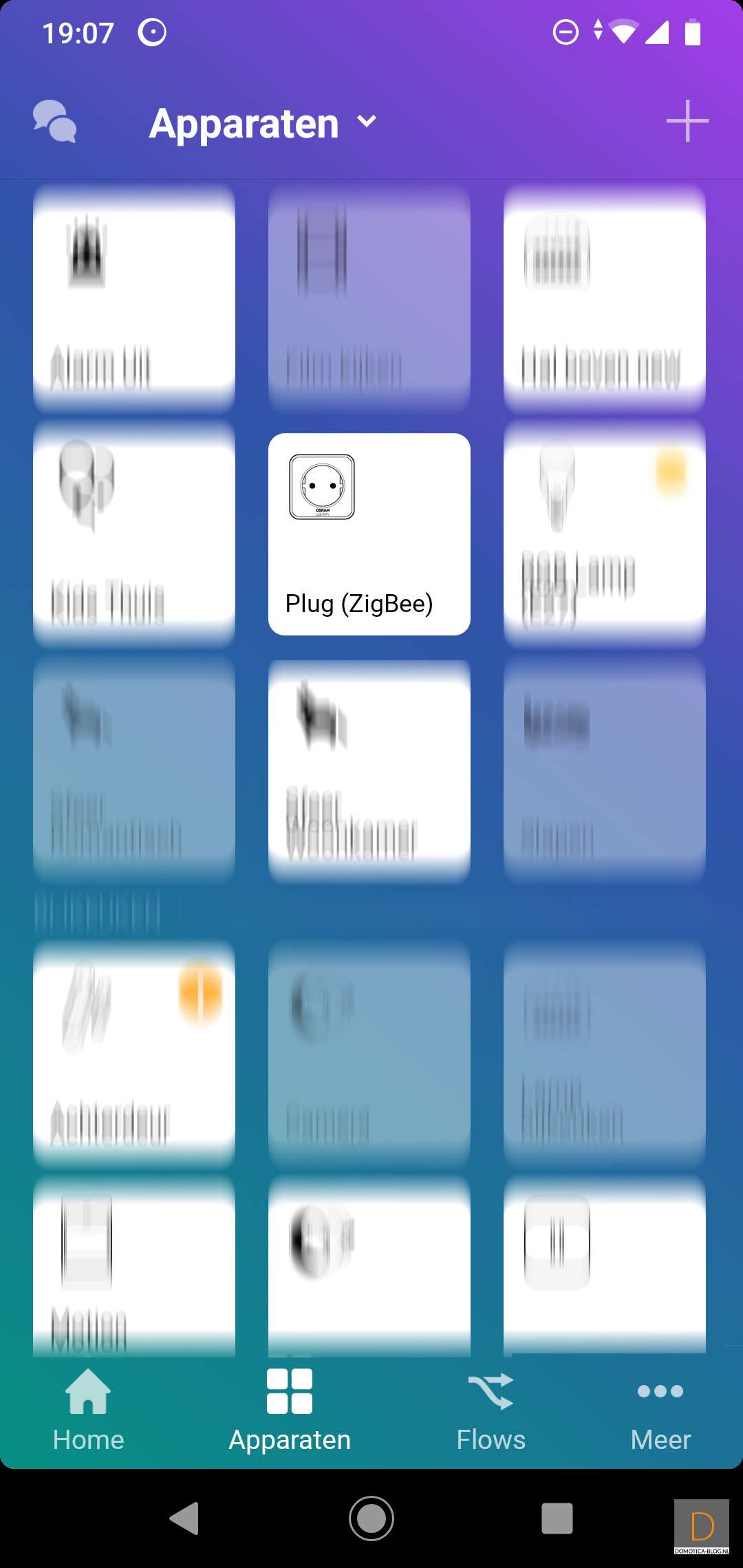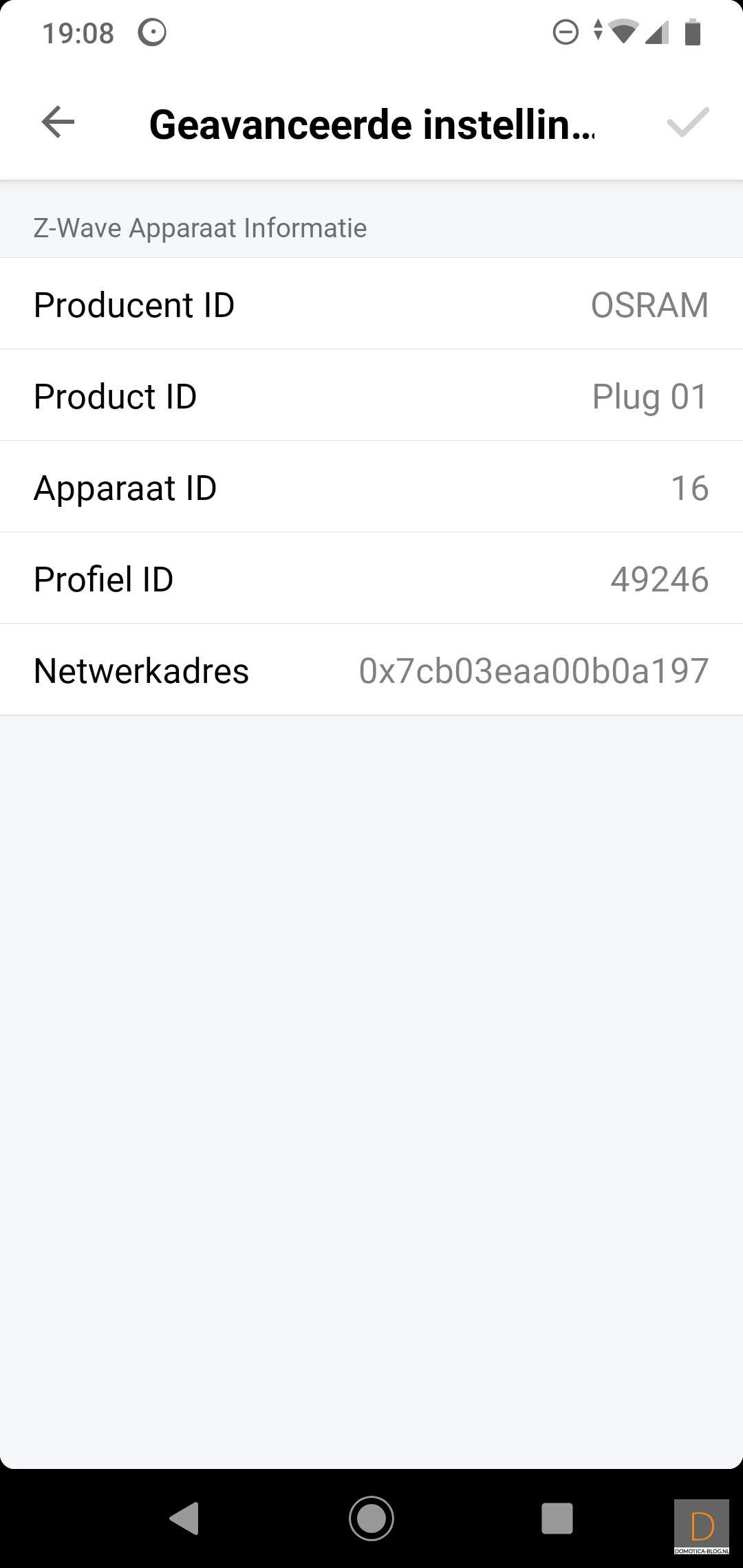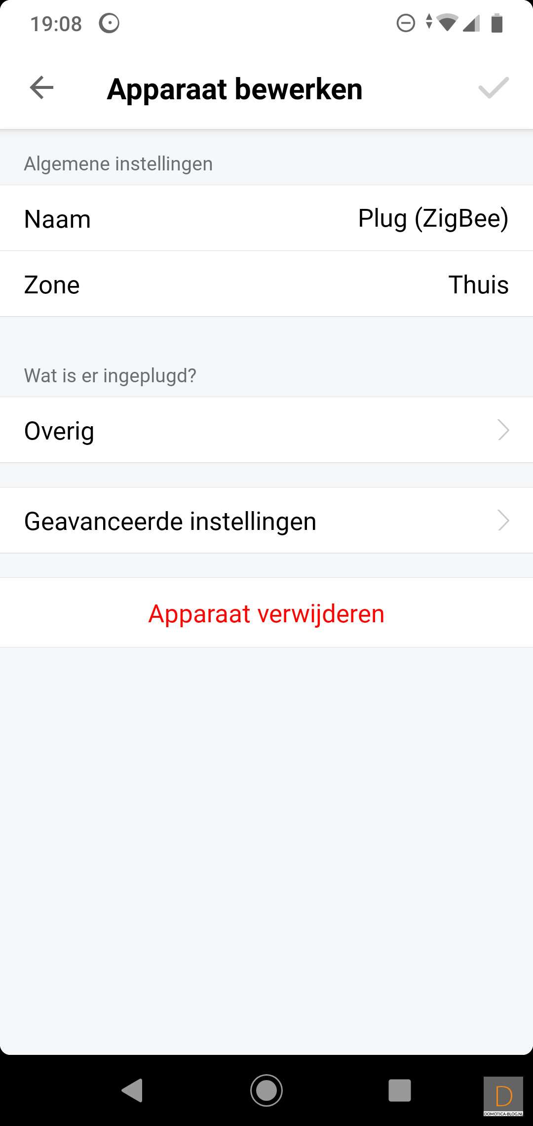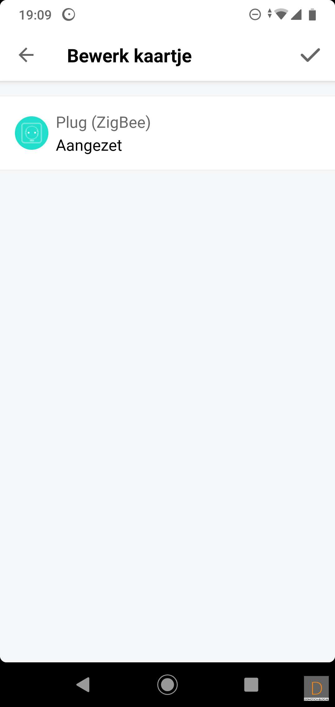Hier werd hij netjes toegevoegd en kan ik hem aan- en uitzetten via de APP. Als ik hem via het knopje aan de bovenkant aan/uitzet dan reageert de APP ook hierop. Alles lijkt dus te werken zoals het hoort.