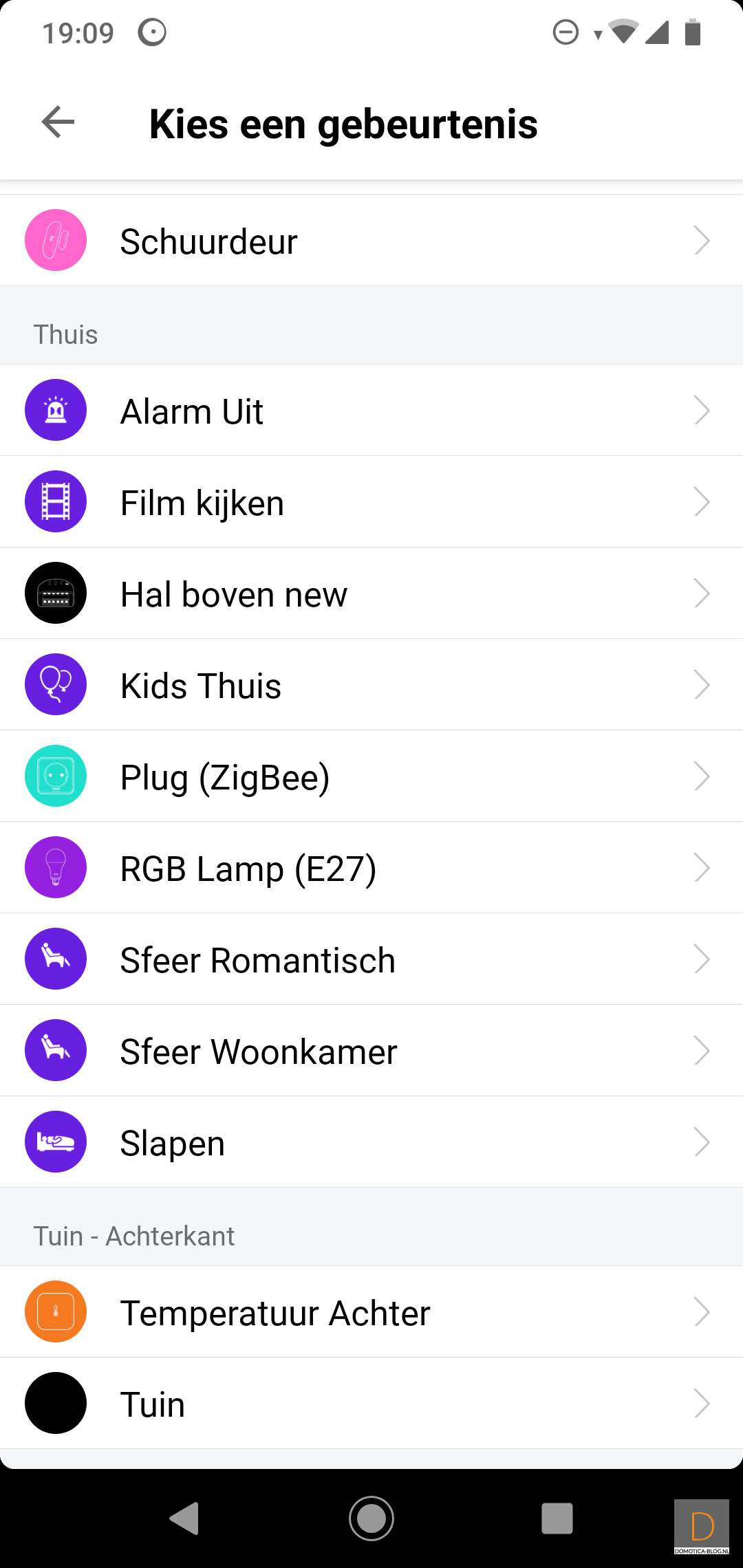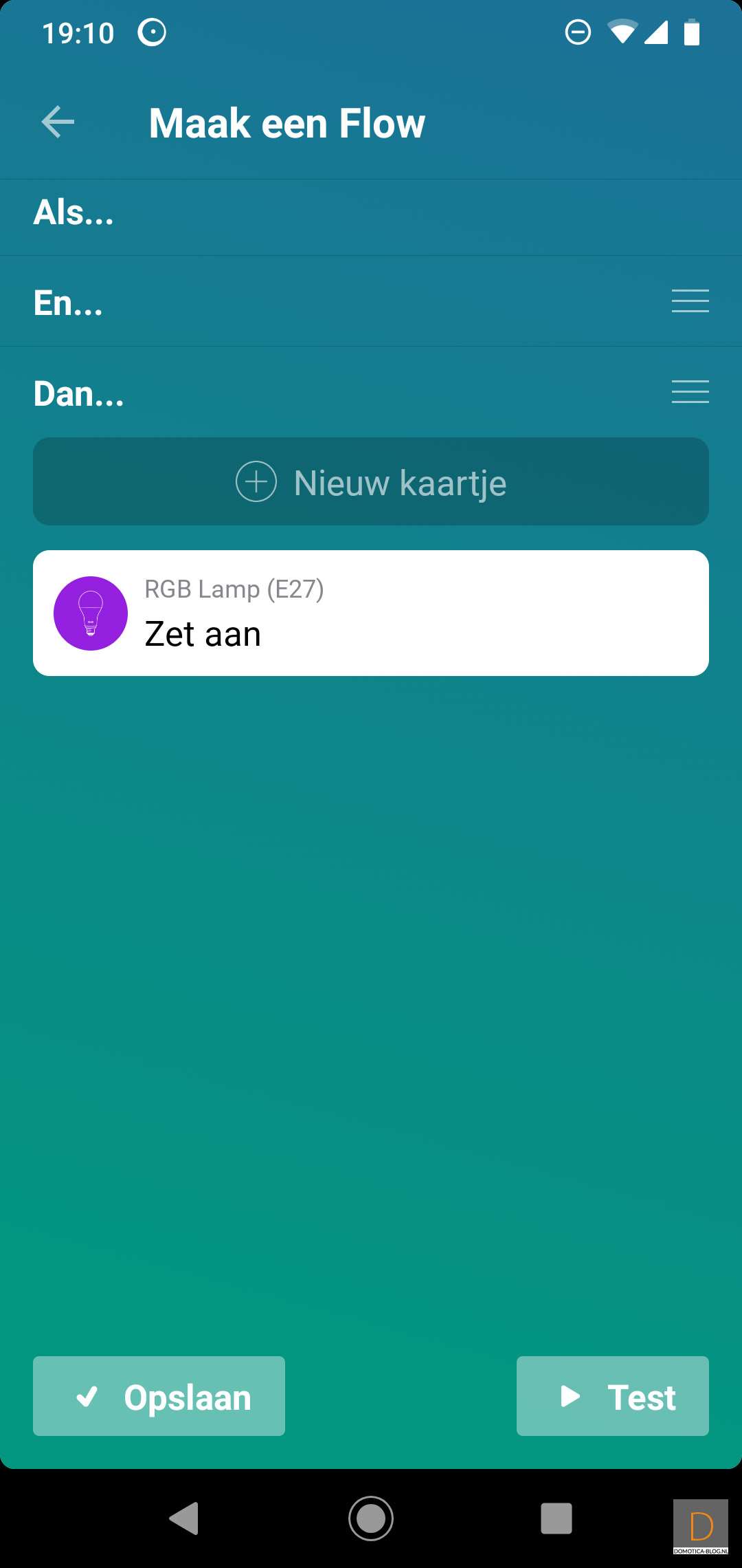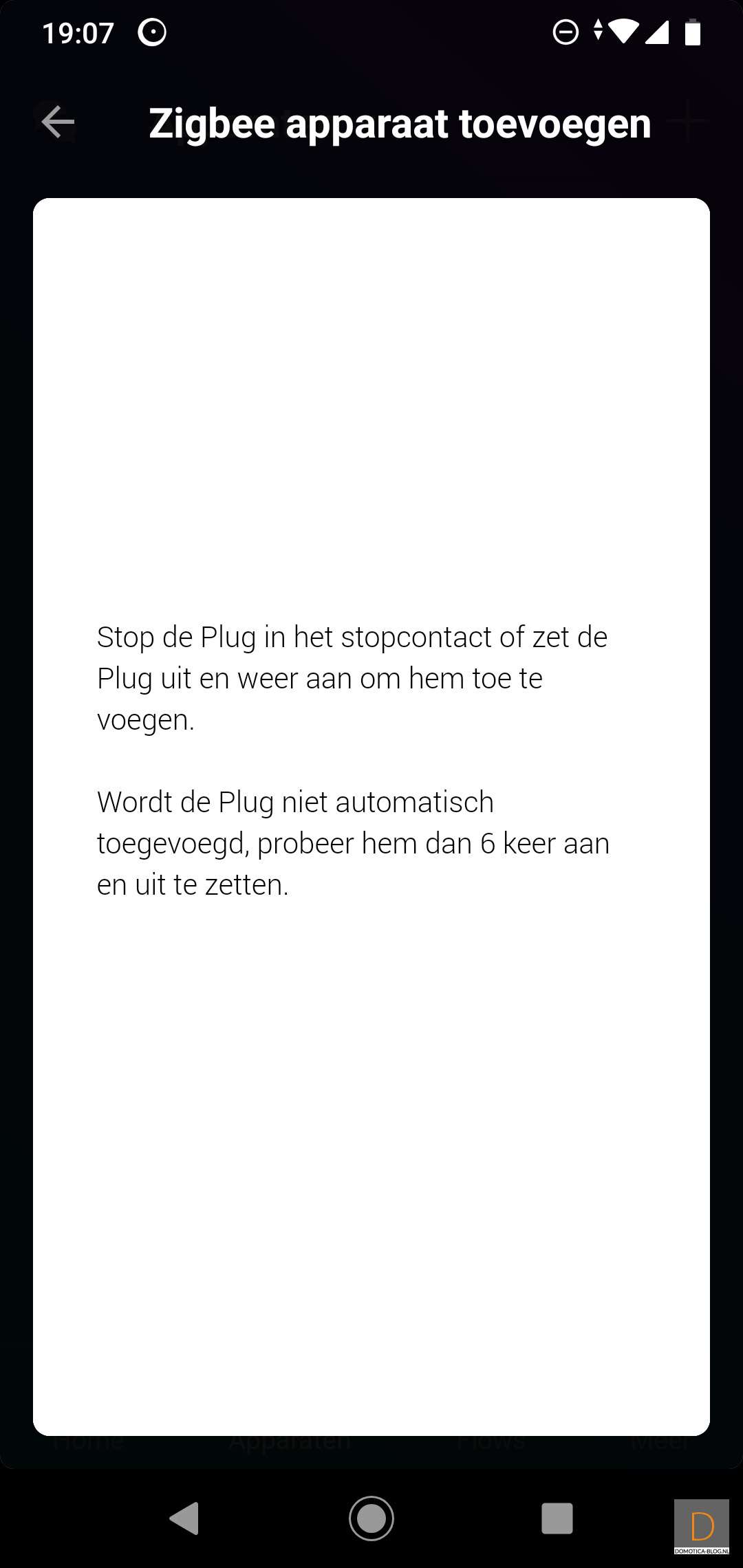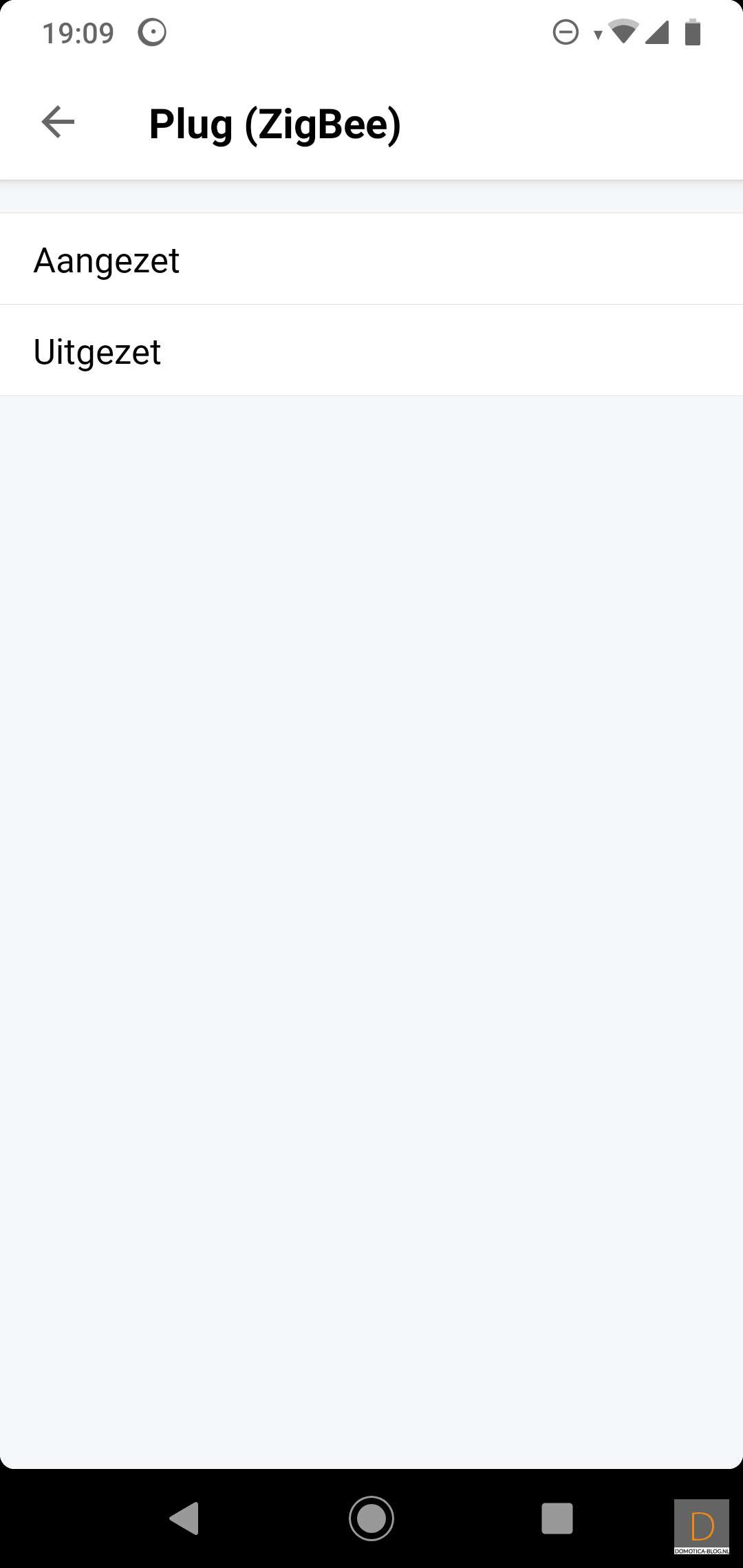 Hier werd hij netjes toegevoegd en kan ik hem aan- en uitzetten via de APP. Als ik hem via het knopje aan de bovenkant aan/uitzet dan reageert de APP ook hierop. Alles lijkt dus te werken zoals het hoort.