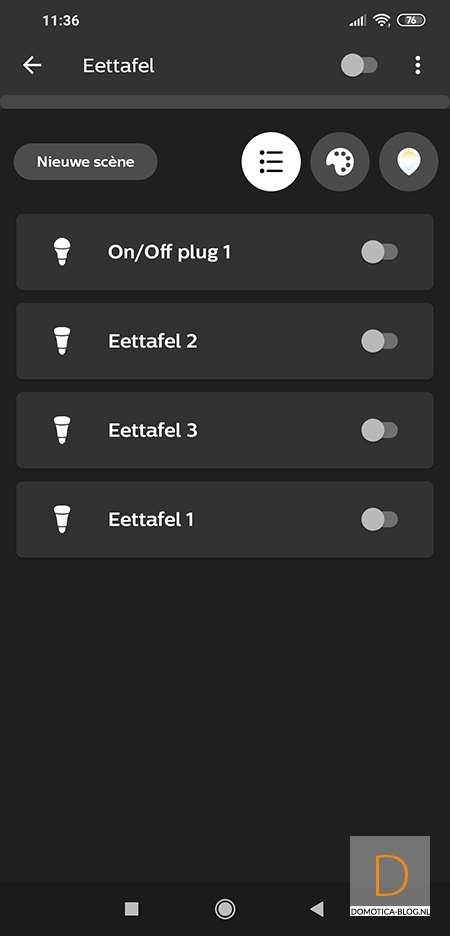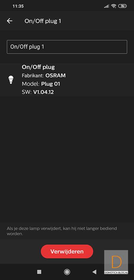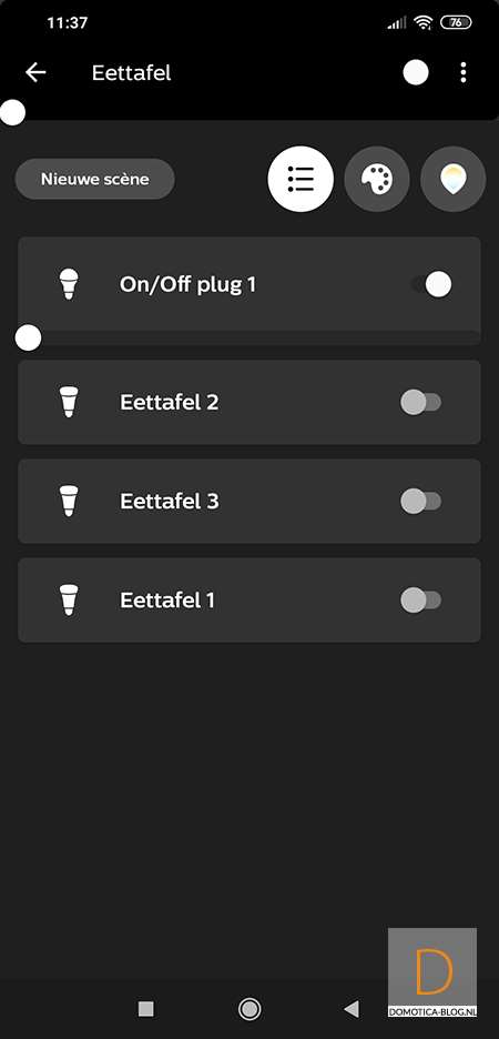 De plug reageerde goed op mijn commando's en ook de bediening via het knopje aan de bovenkant komt goed door. Wel vreemd is dat hij als een lichtbron word gezien. Hierdoor krijg ik ook een schuifbalk. Deze doet voor de rest niks, maar mooi is anders.