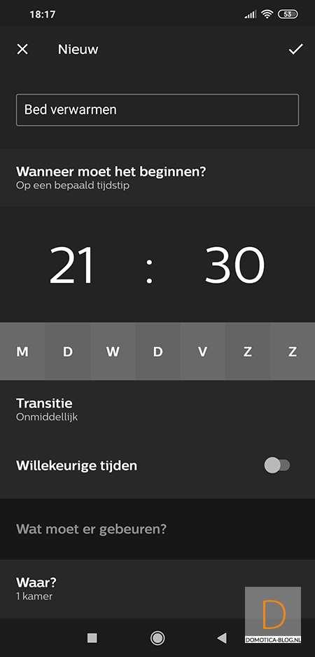 Als automatisering wil ik zorgen dat de plug om 21.30 automatisch word aangezet en om 22:30 weer uit. Dit is eenvoudig te regelen via een routine.