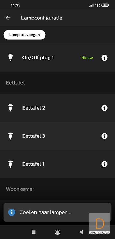 Je start als eerste de APP op je telefoon op. Ga vervolgens naar "zoeken naar een nieuwe lamp" (niet als accessoires) en de plug zal gevonden worden. Mocht dit niet het geval zijn dan moet je de plug even resetten door hem 6x achter elkaar aan- en uit te zetten of de knop aan de bovenkant 10 sec lang ingedrukt te houden. Zorg trouwens ook dat hij dicht bij de bridge is.