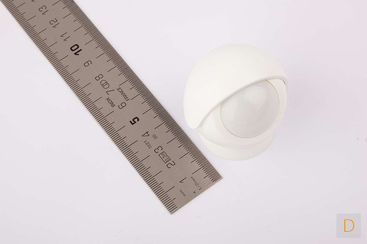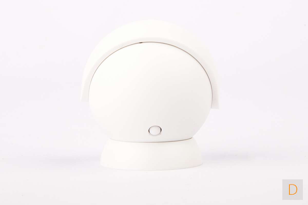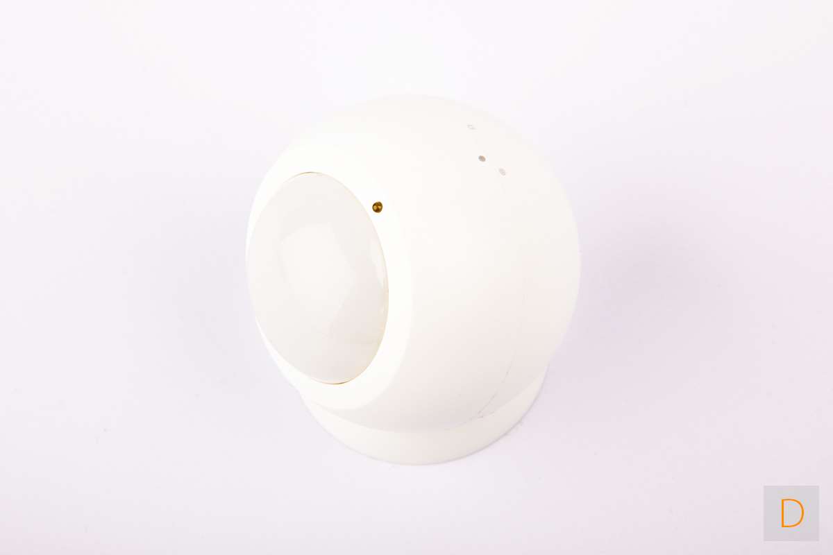 Hij is maar 45mm in diameter wat hem net zo compact maakt als de Fibaro Motion sensor. De afwerking is wit en het geheel voelt stevig aan. Het ophangen gaat door de bijgeleverde beugel welke magnetisch is, hierdoor kun je hem gemakkelijk in elke hoek draaien. De beugel bevestig je aan de muur, met een dubbelzijdige sticker. Hierdoor is het ophangen op oneffen oppervlaktes wel wat lastig omdat er geen schroef mogelijkheid is.