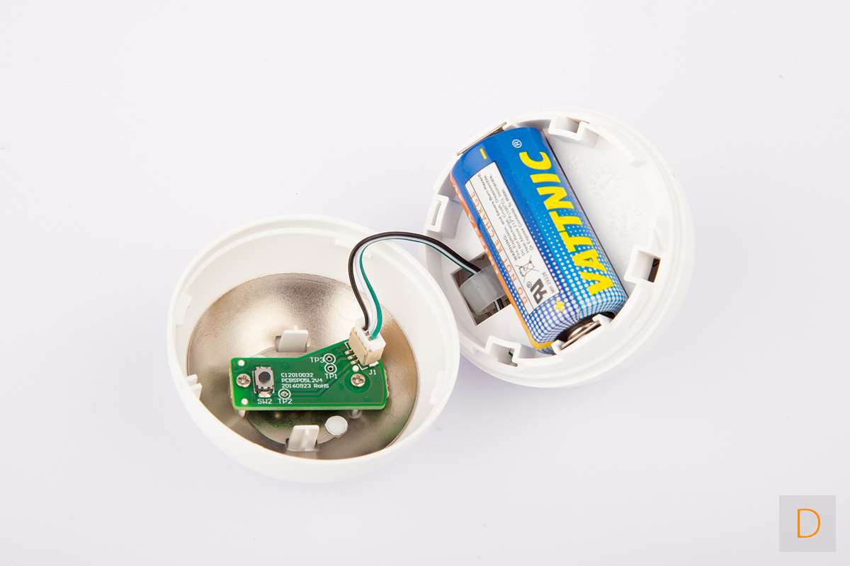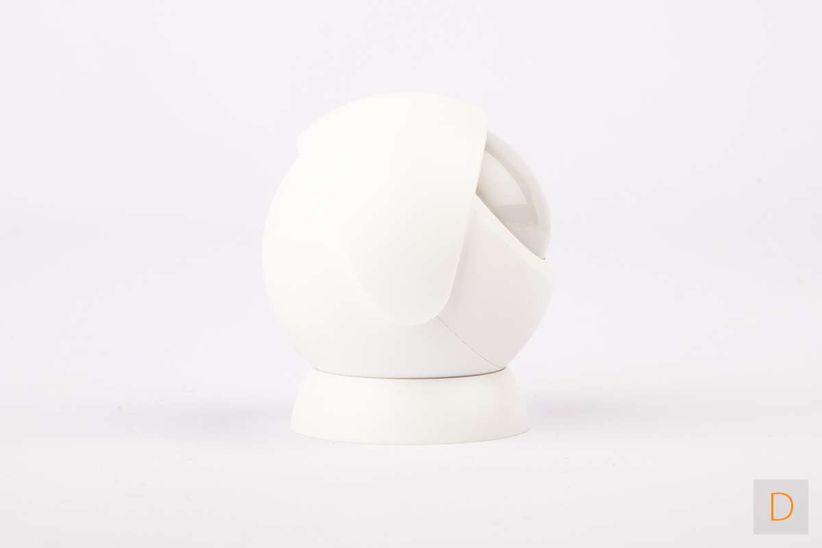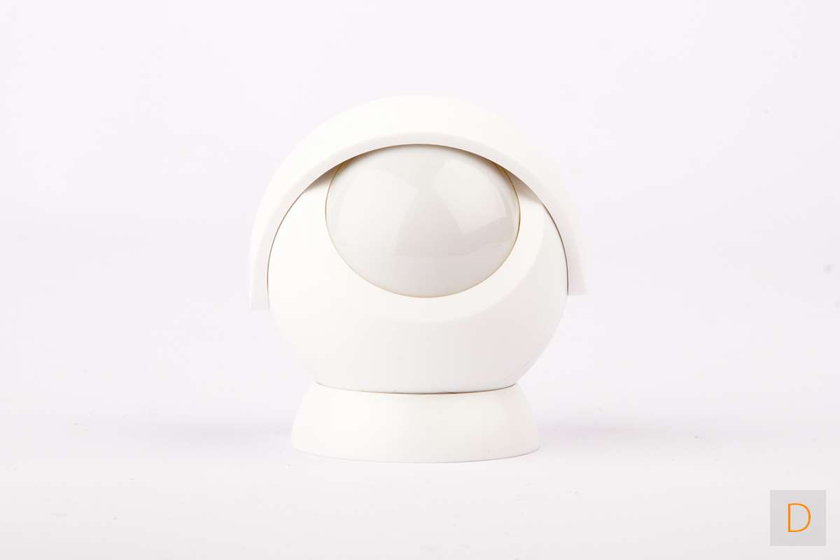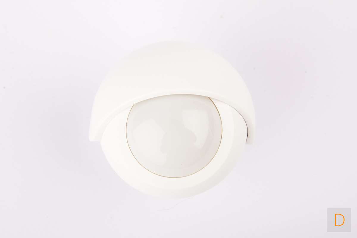 Hij is maar 45mm in diameter wat hem net zo compact maakt als de Fibaro Motion sensor. De afwerking is wit en het geheel voelt stevig aan. Het ophangen gaat door de bijgeleverde beugel welke magnetisch is, hierdoor kun je hem gemakkelijk in elke hoek draaien. De beugel bevestig je aan de muur, met een dubbelzijdige sticker. Hierdoor is het ophangen op oneffen oppervlaktes wel wat lastig omdat er geen schroef mogelijkheid is.
