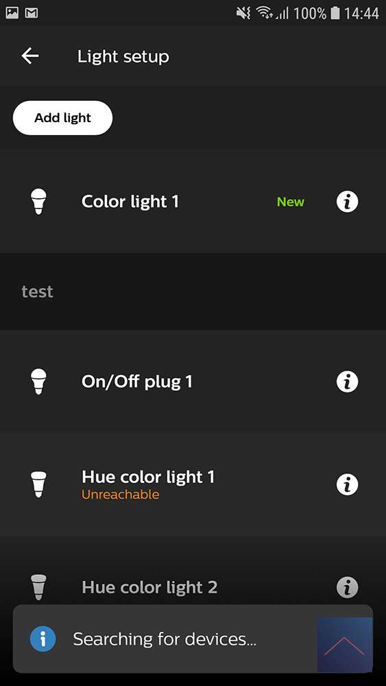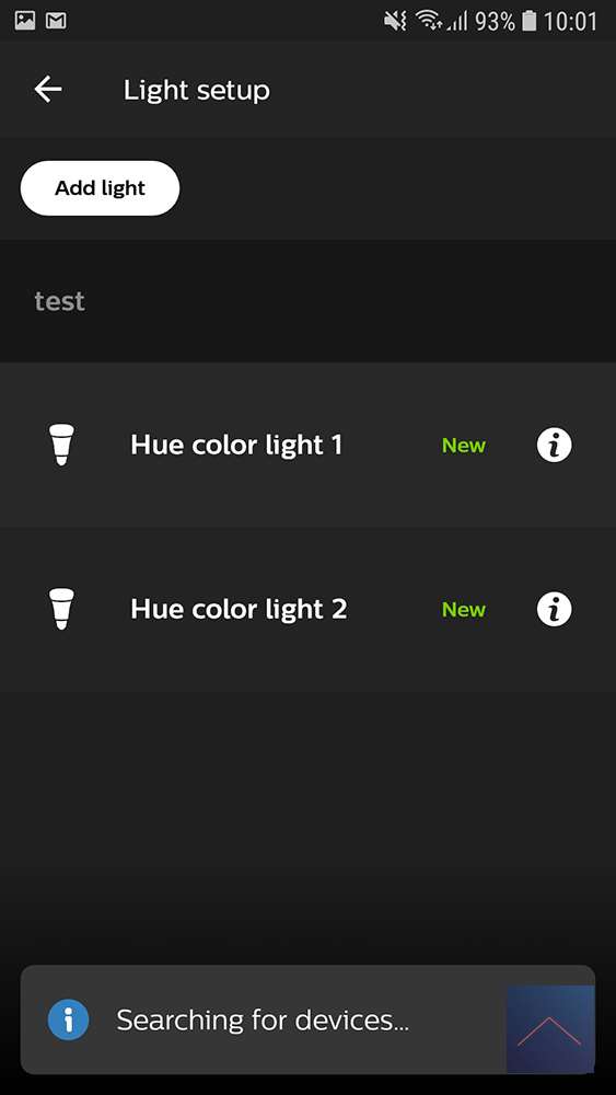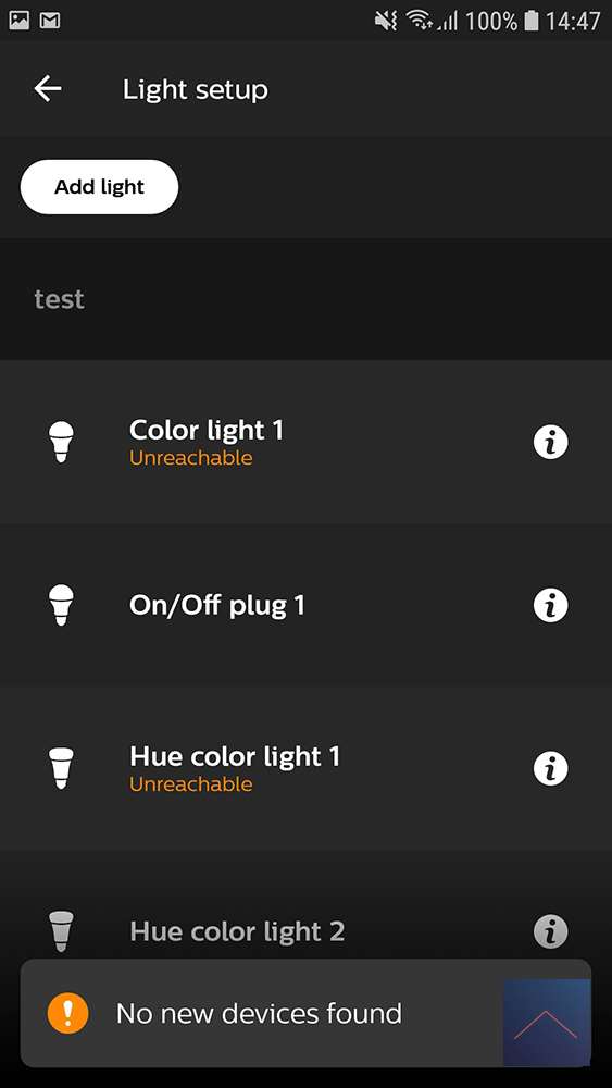 Wij hebben een ander probleem, want na het zoeken van de oude Hue lampen vind de Bridge niets. Wat ik ook probeer, een paar keer aan en uitzetten om te ontdekken zoals dat bij de Ikea lampen levert niets op. Dus we zoeken op internet hoe we deze lampen toch kunnen toevoegen.